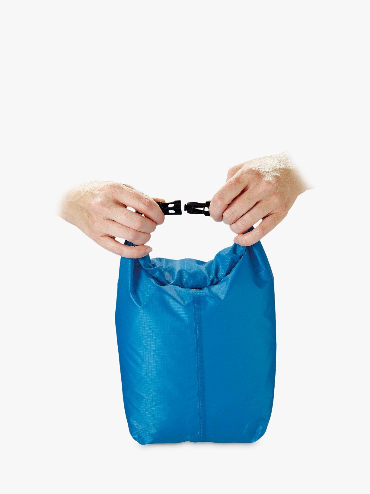 Whether you want to keep dry items safe in a downpour or wet items separate in your suitcase, this convenient 5L dry bag with a roll-top closure keeps contents water-tight on the move.