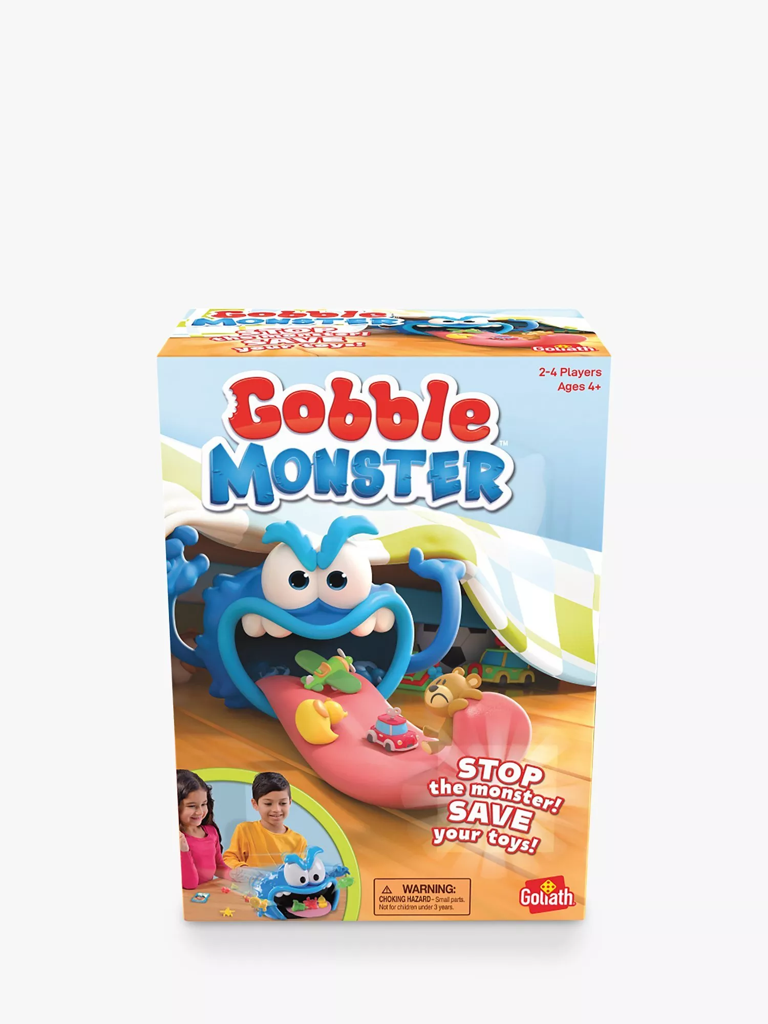 Oh no, what’s that creeping under your bed? It’s the hungry Gobble Monster! He likes to gobble up all your toys, so you better grab them off his tongue before he does! When he strikes, players have to hand over the toys they've taken. The player with the most toys at the end of the game wins!