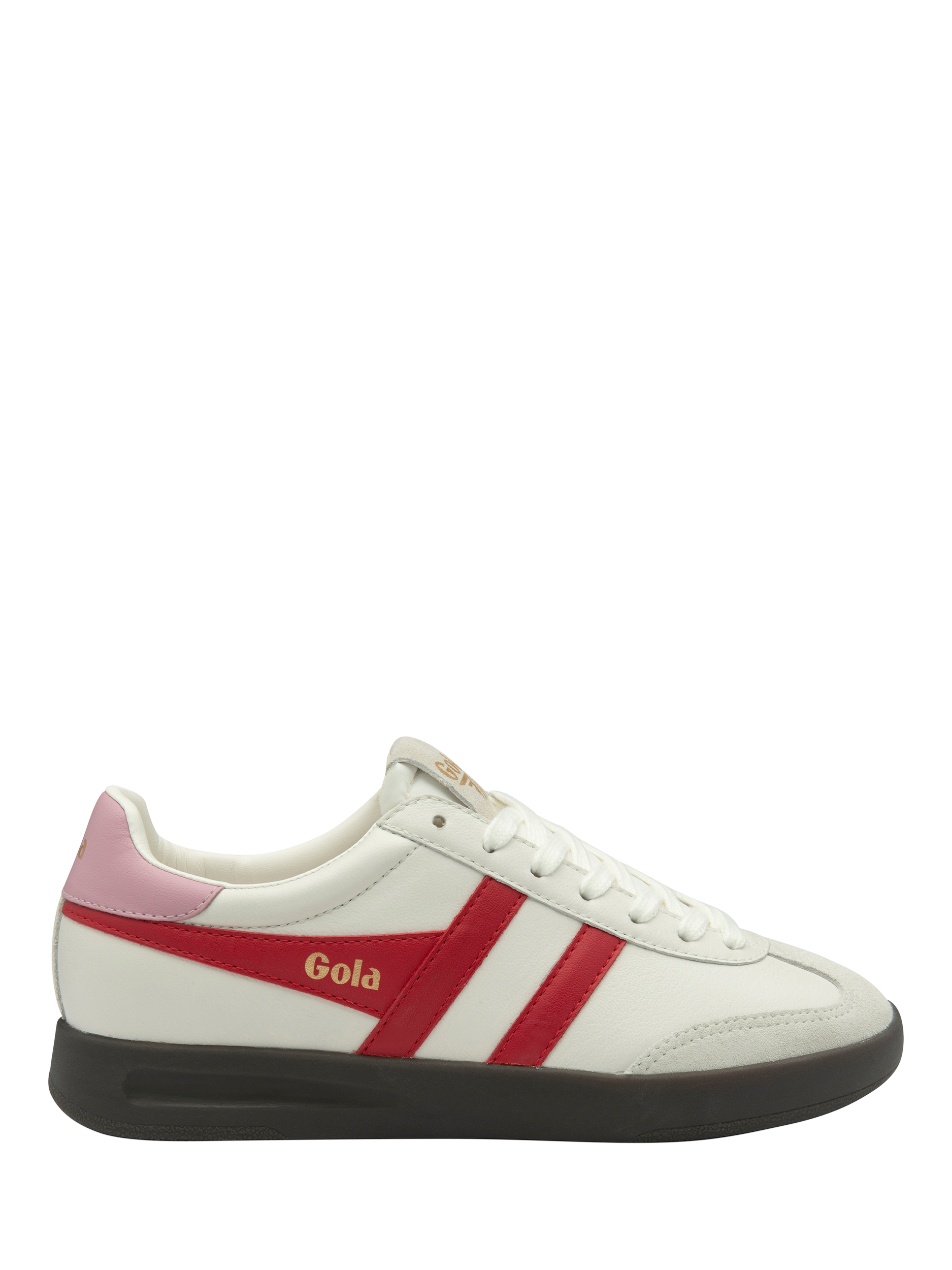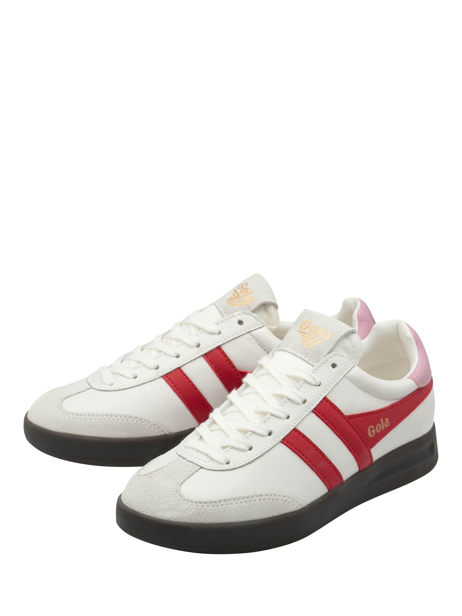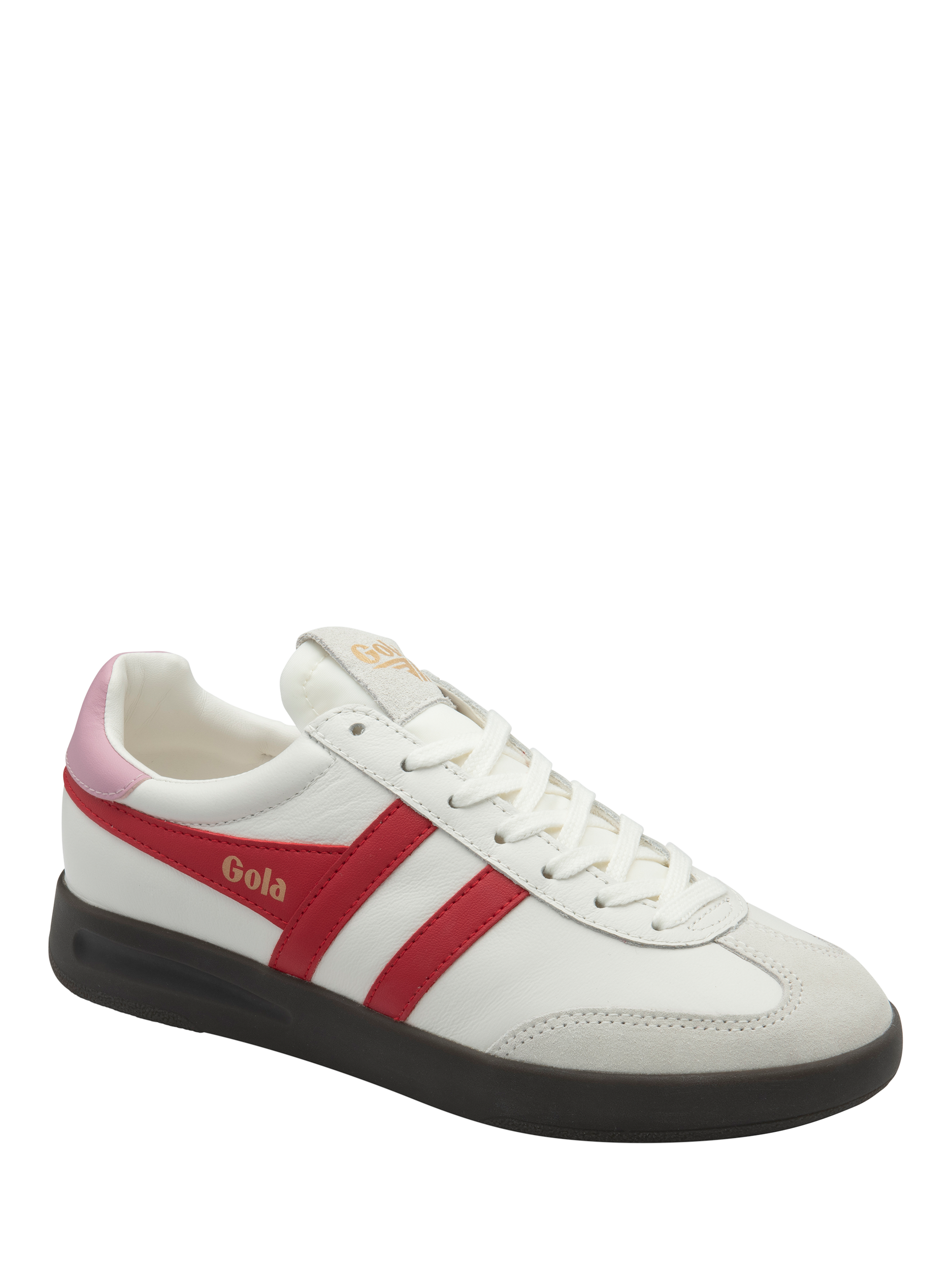 Gola's Cyclone trainer is the sister style to women's best seller Torpedo. Differentiated with its dark gum cup sole that's slightly deeper than Torpedo, this classic leather combo can be worn on repeat.