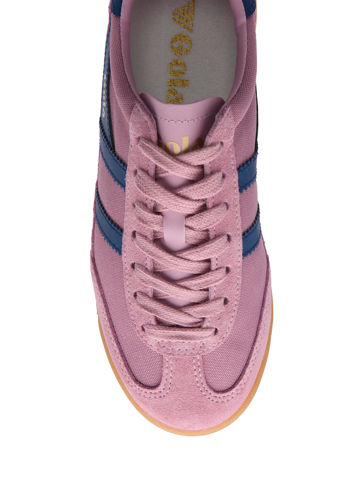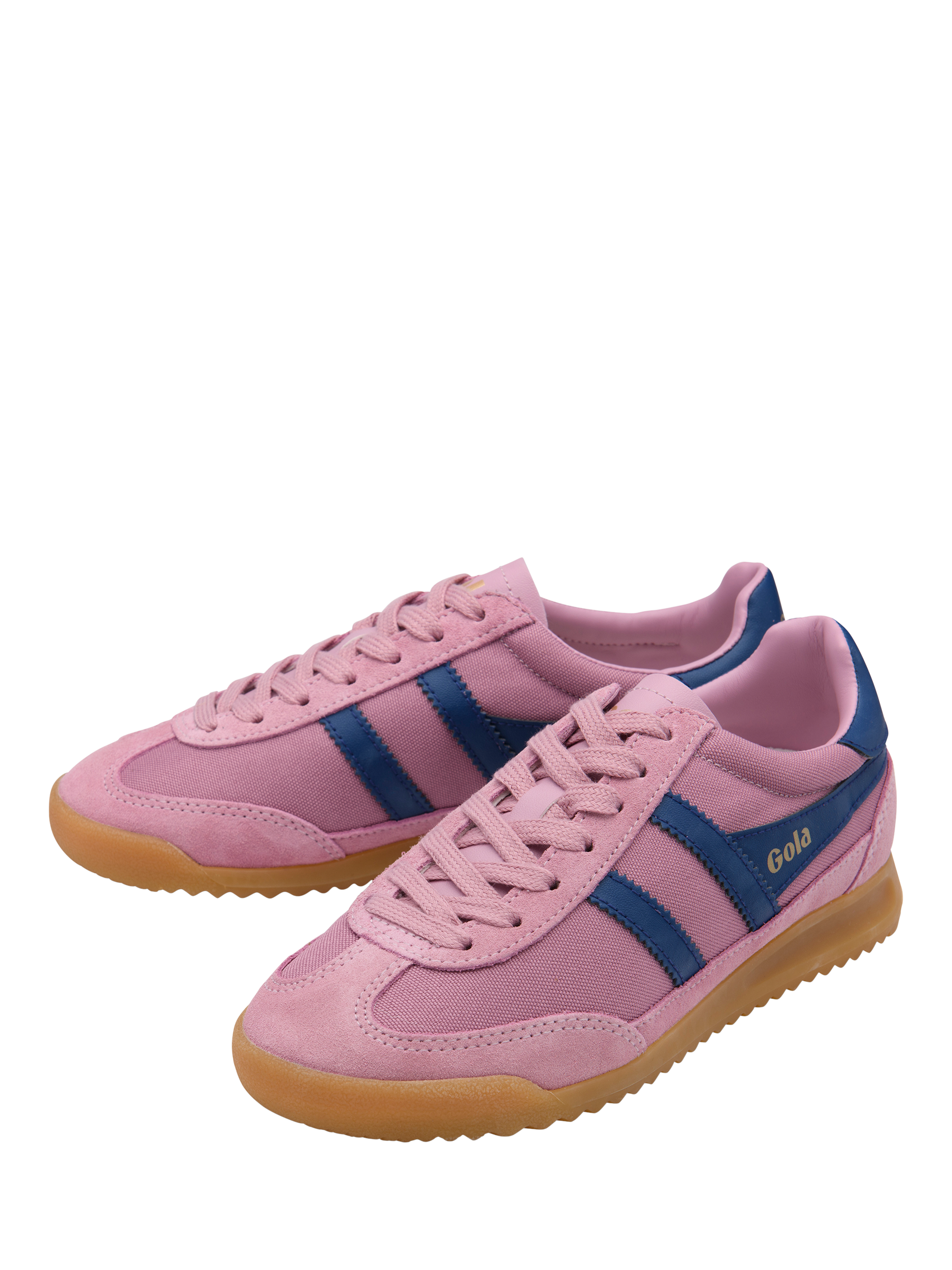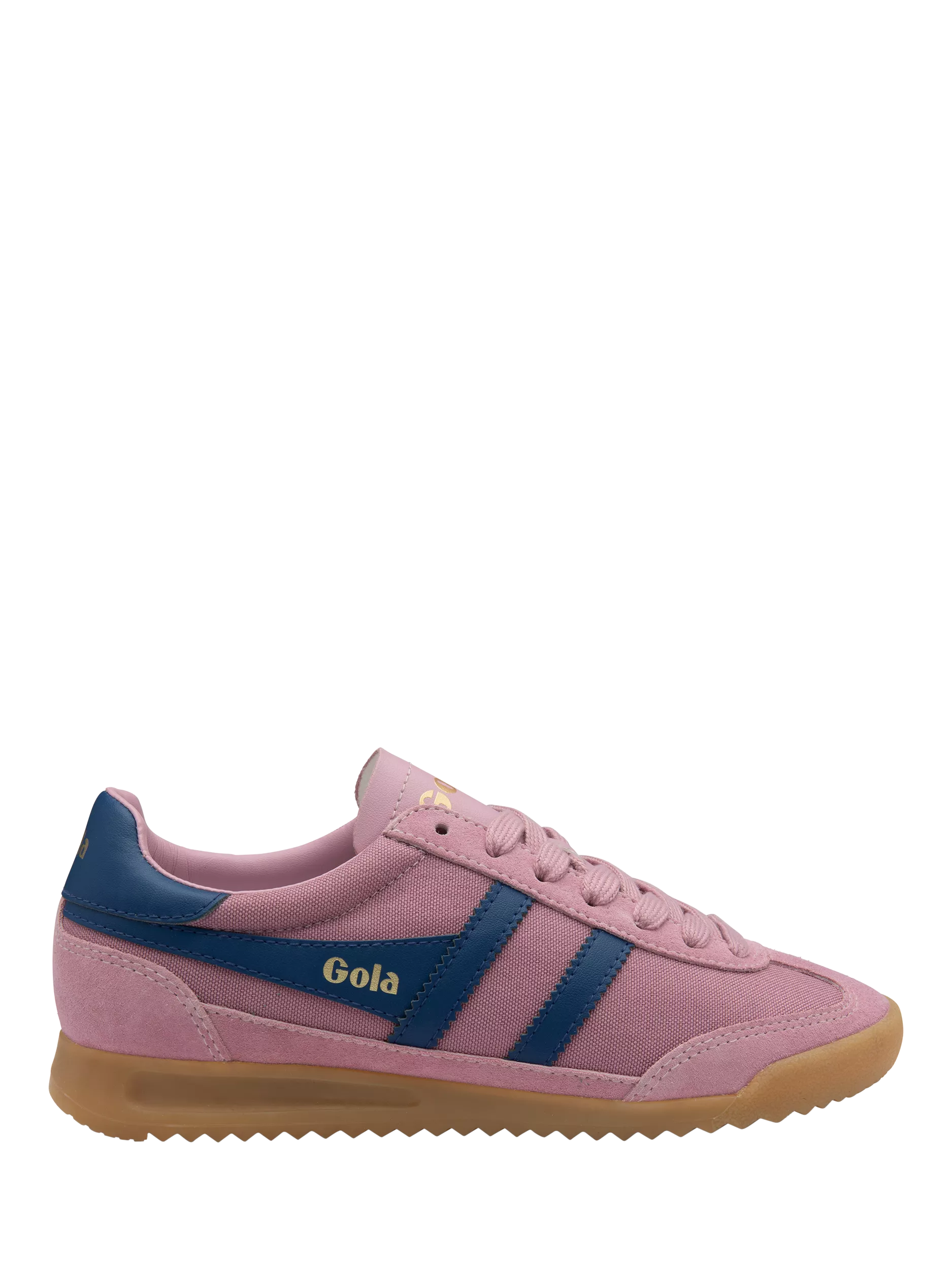 Gola Tornado for women features a heavy weave nylon upper complemented with matching suede trims to the toe, heel and lace facing and contrasted with Gola wingflash side trim with sawtooth edges.