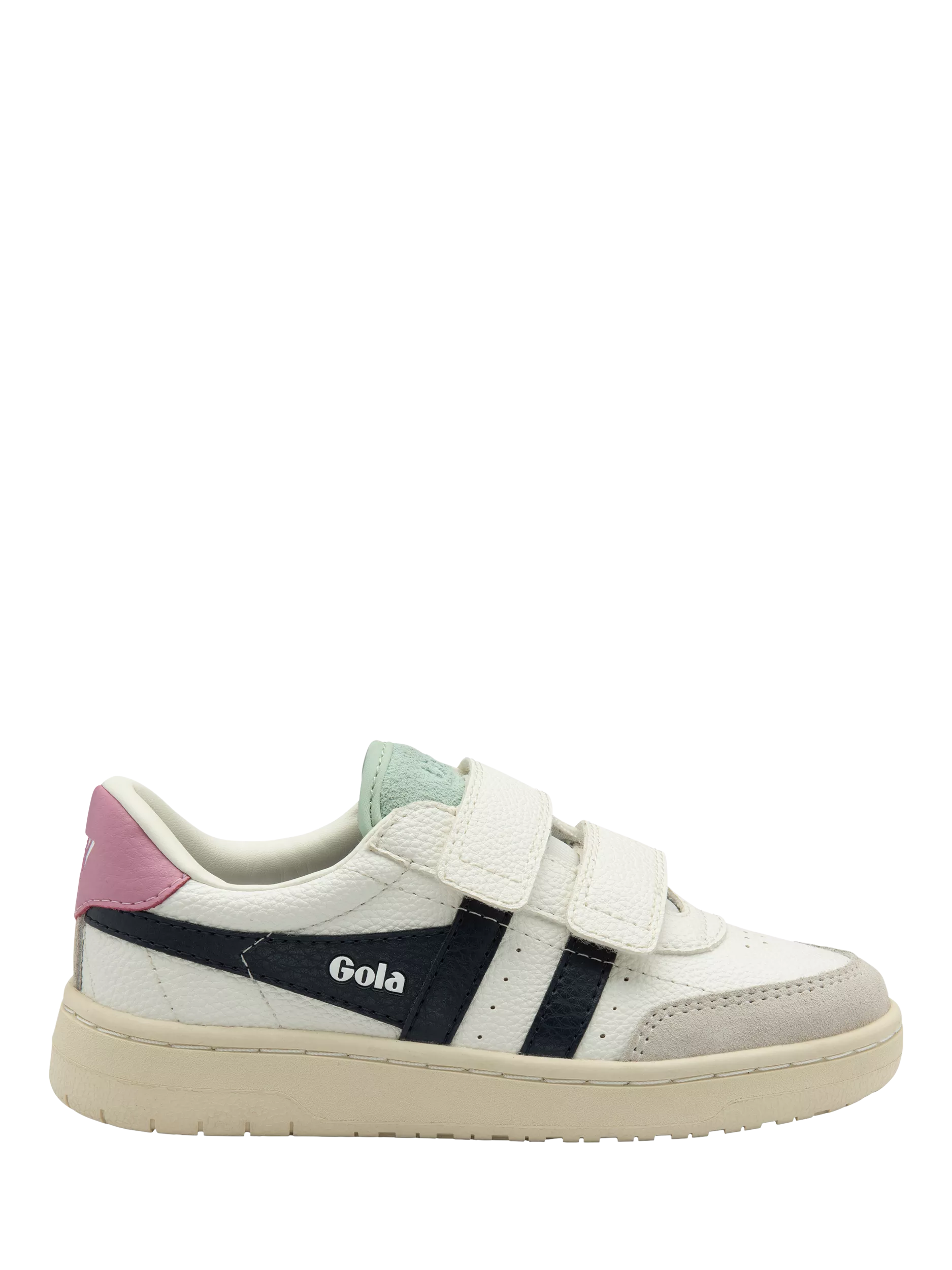 The Gola Falcon Strap trainer for kids draws on Gola’s 80s court sport roots, and is finished with hook and loop fastening.