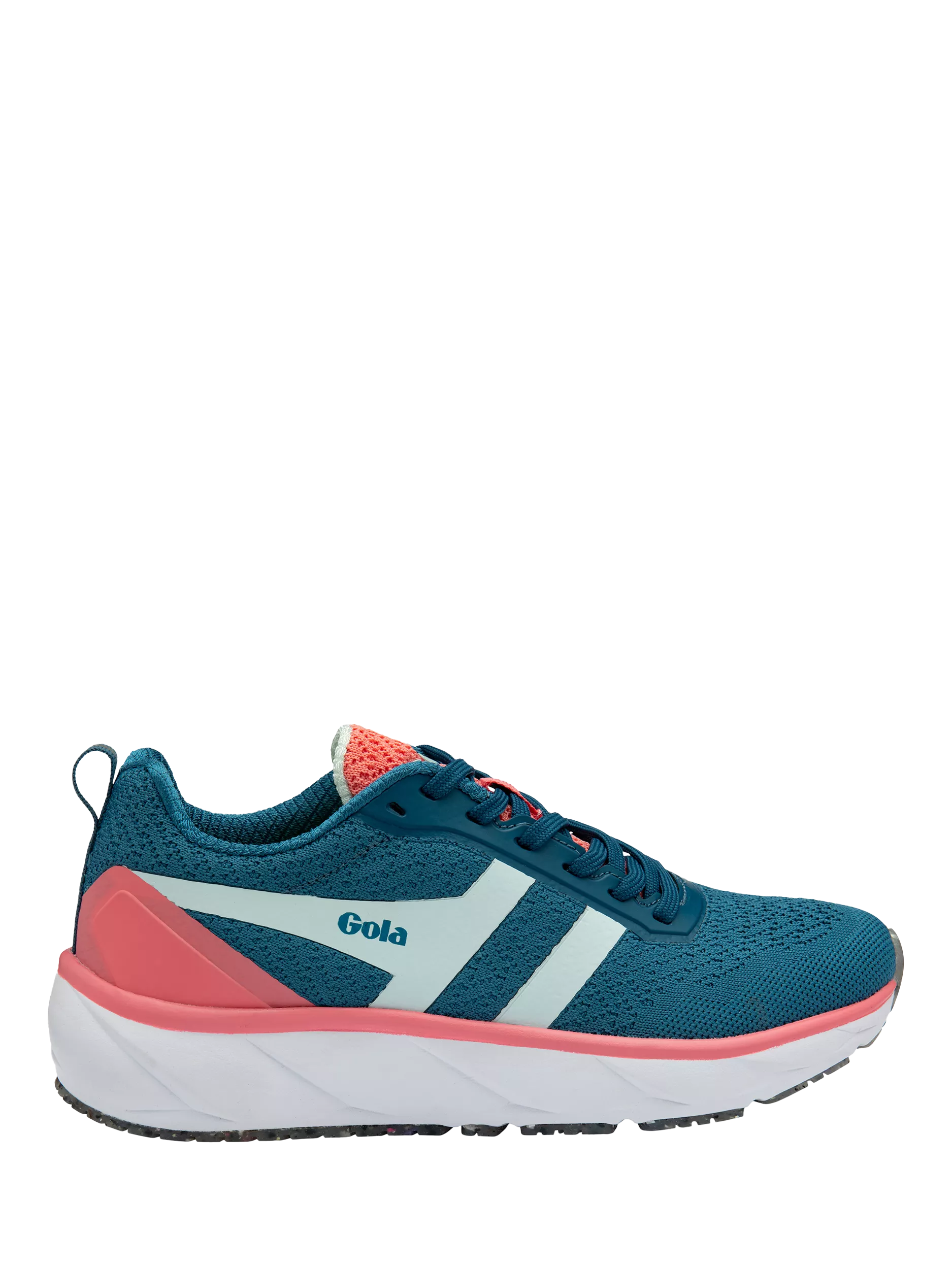 The Typhoon RMD trainer for women features Gola’s MotionFoam technology in the form of a high-energy return midsole and a breathable engineered mesh upper constructed from 100% recycled polyester yarn that helps keep feet cool.