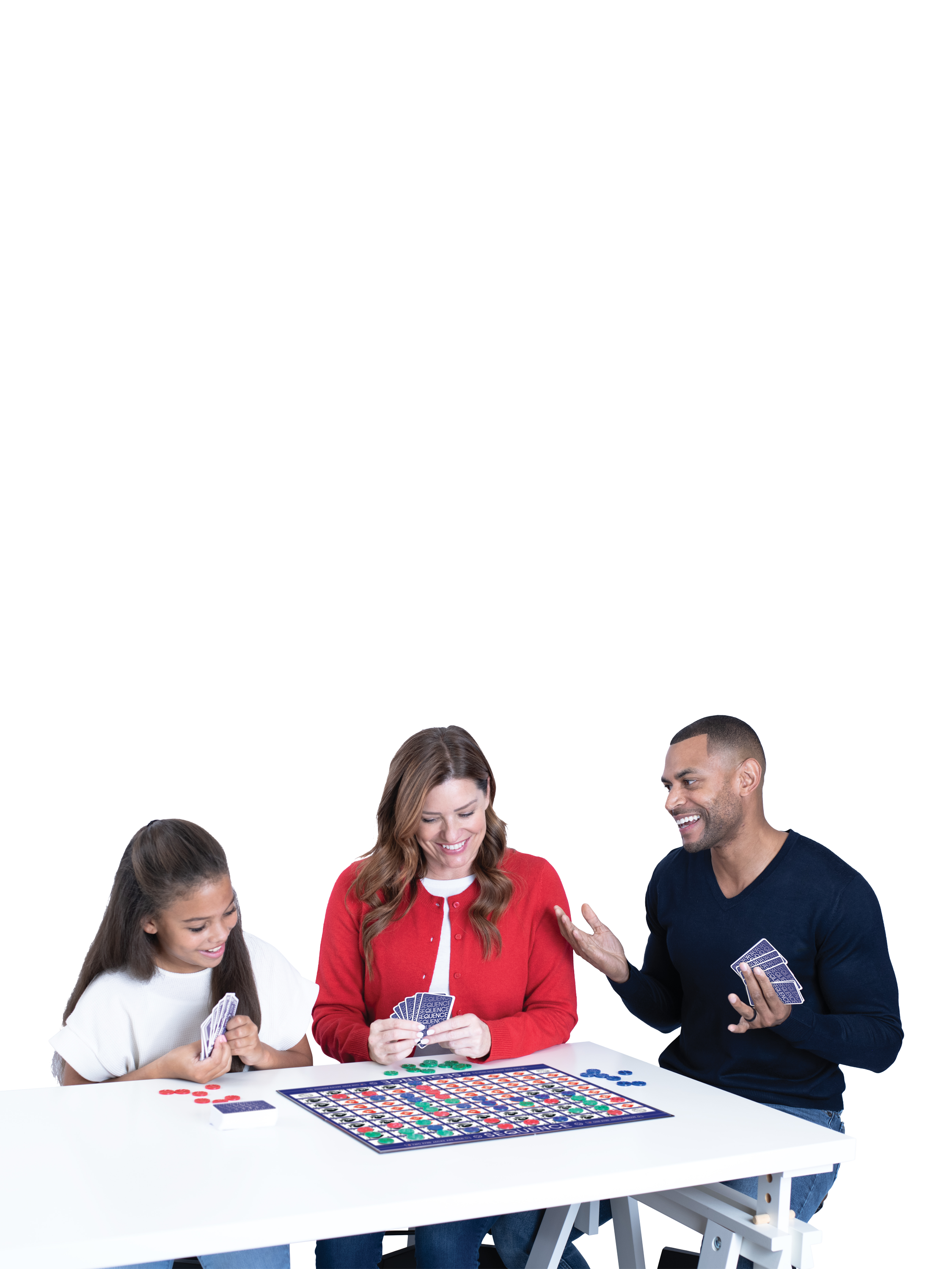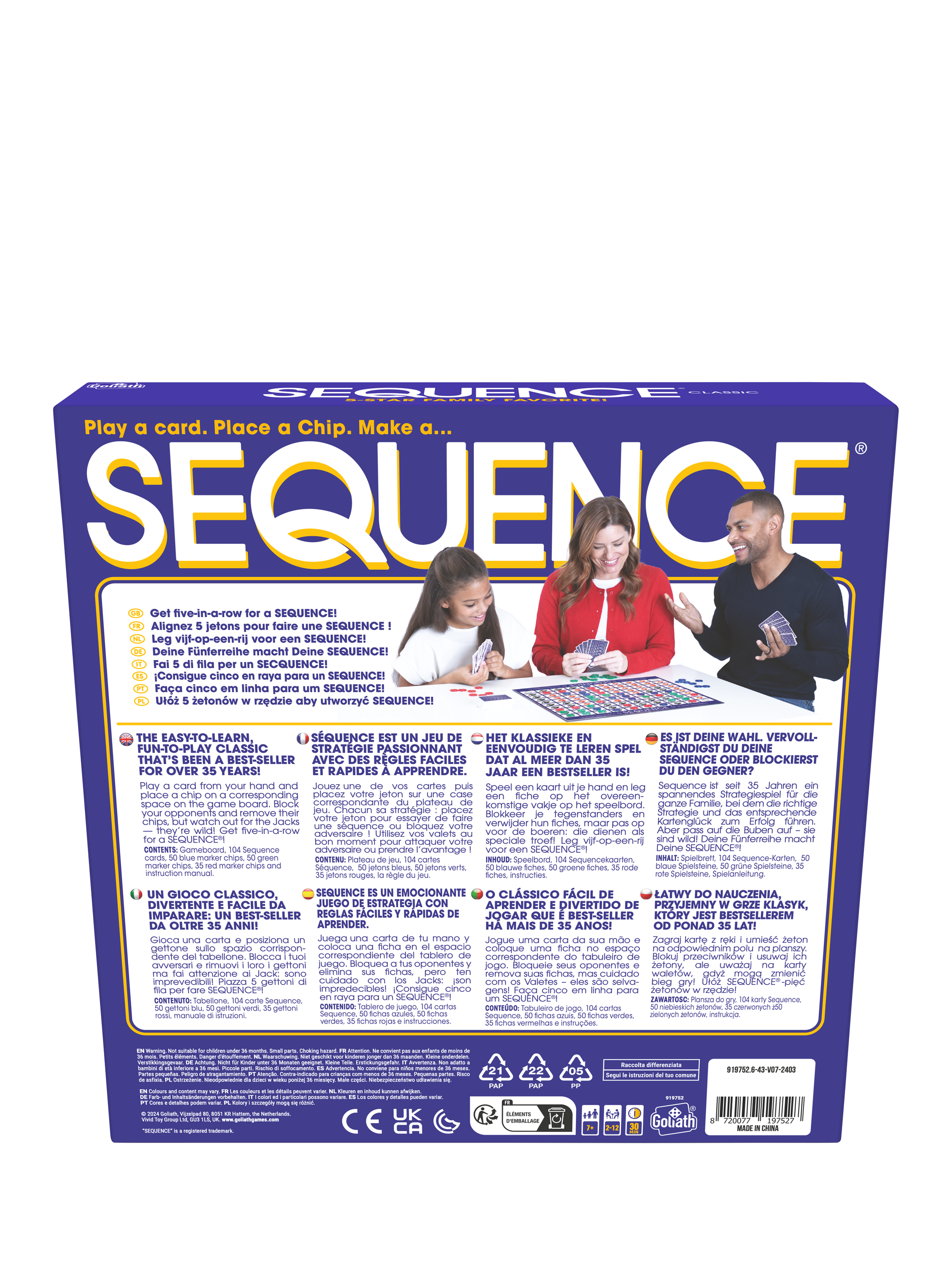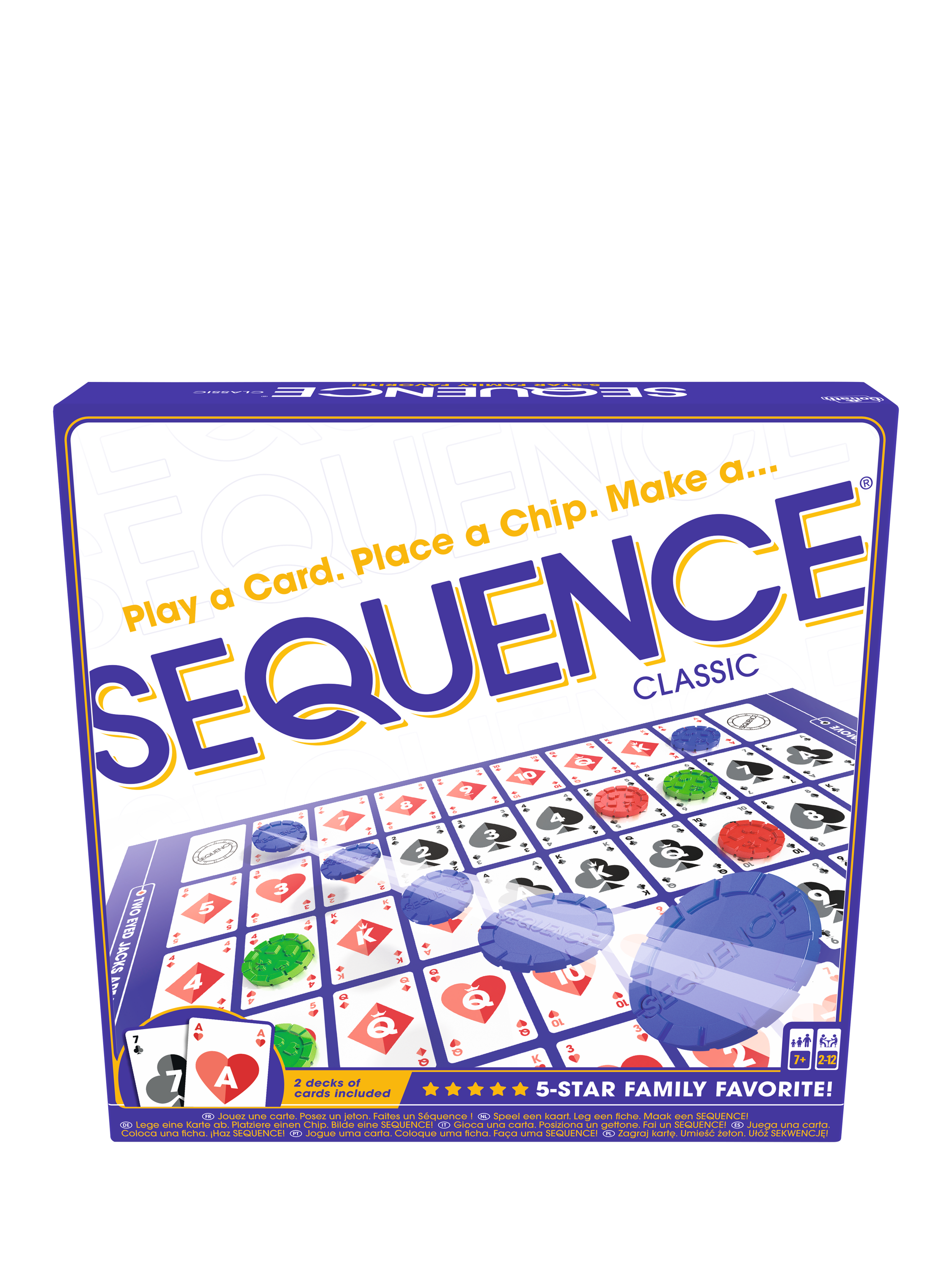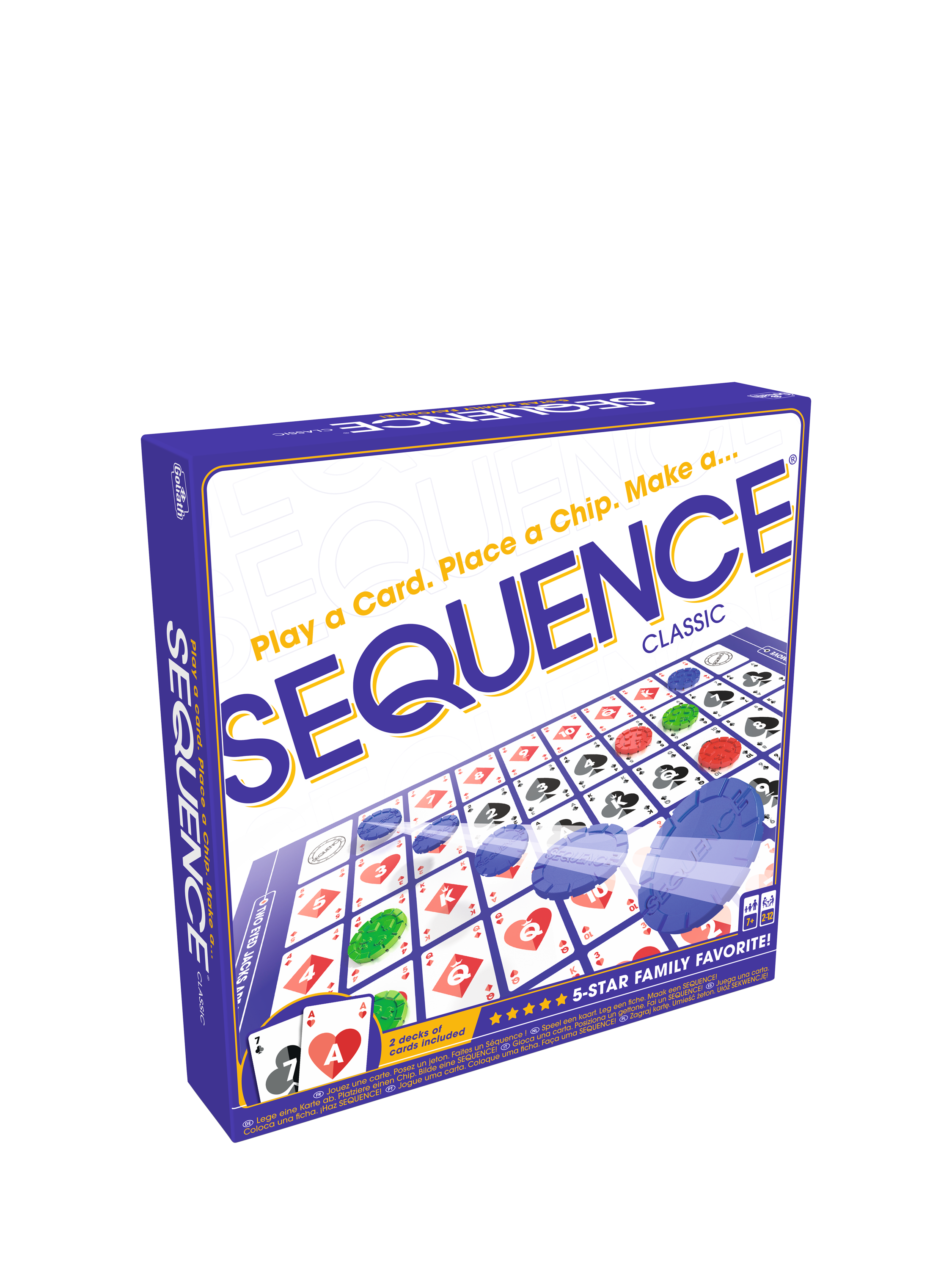 Choose a card from your hand, place a chip on one of the matching spaces and learn to block your opponents and remove their chips with Jacks. Once you have 5 in a row, that's a Sequence. Play individually with up to 3 players, or team up for Sequence games with up to 12 players.
