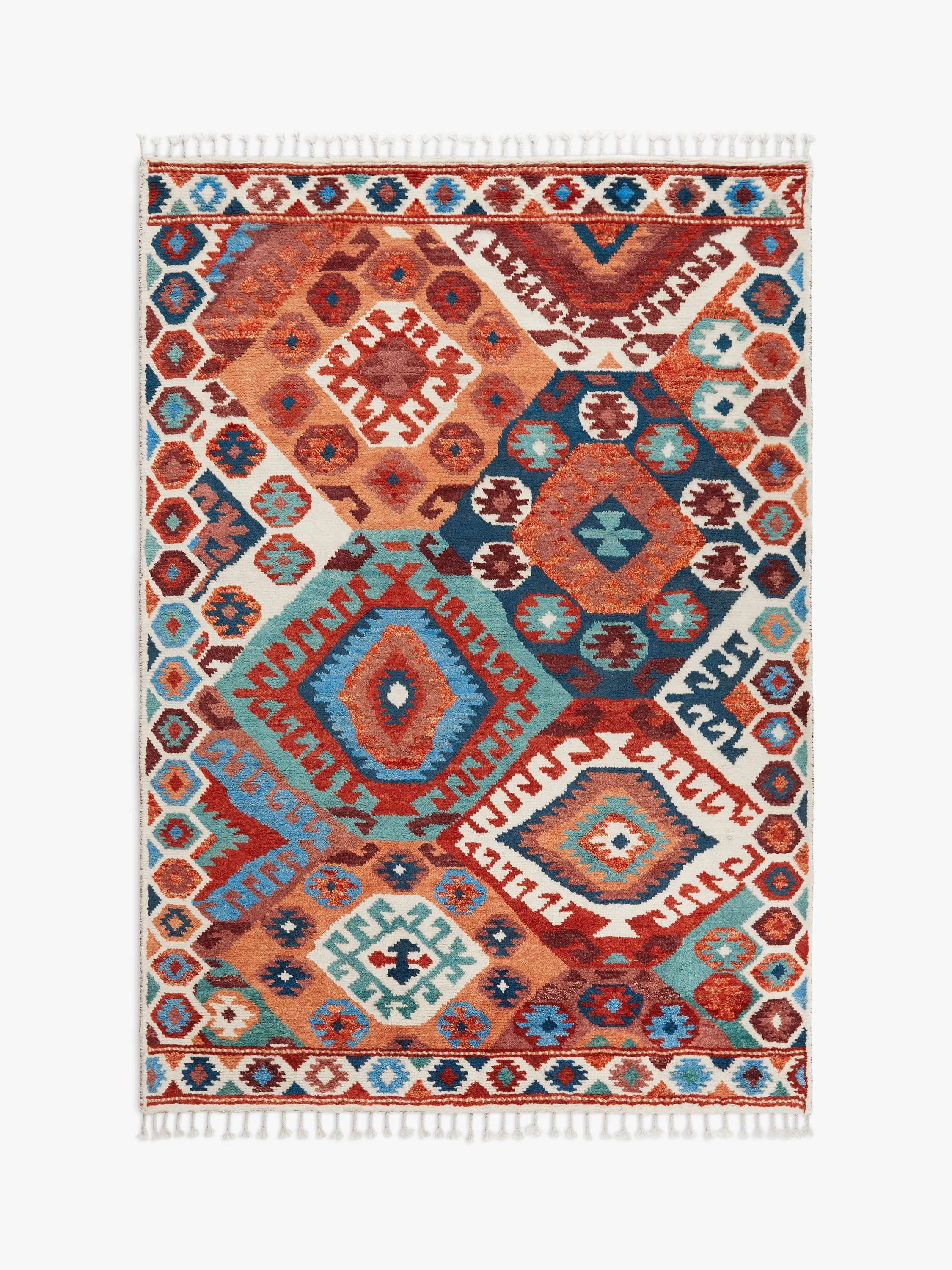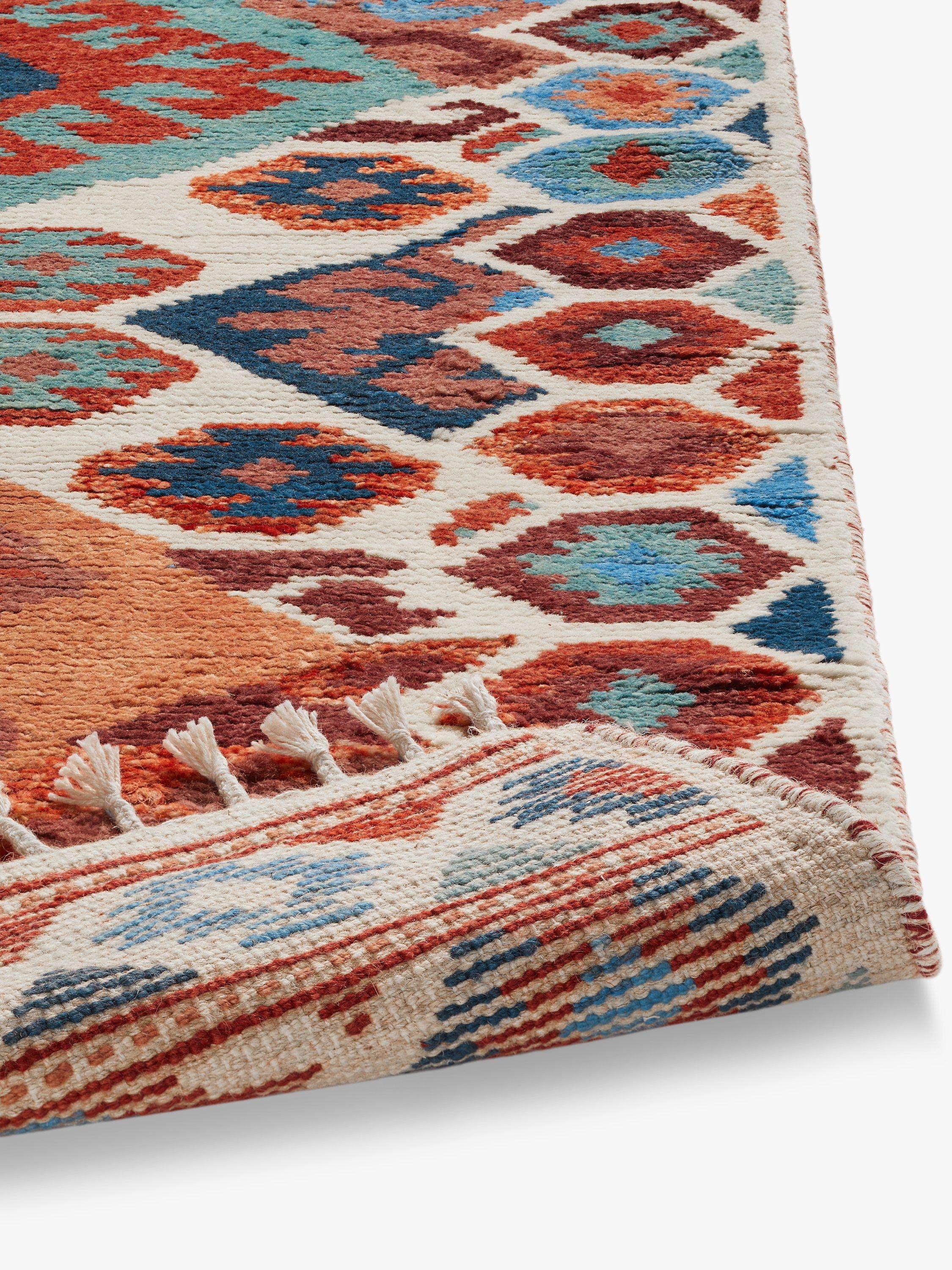 Boldly embracing centuries of traditional rug design, the Amazigh Berber Rug instantly draws the eye thanks to the earthy colour palette and unpredictable pattern. Knotted by hand from 100% wool, it has a distinctly soft feel throughout whilst the tassels at either end complement the boho-vibe.