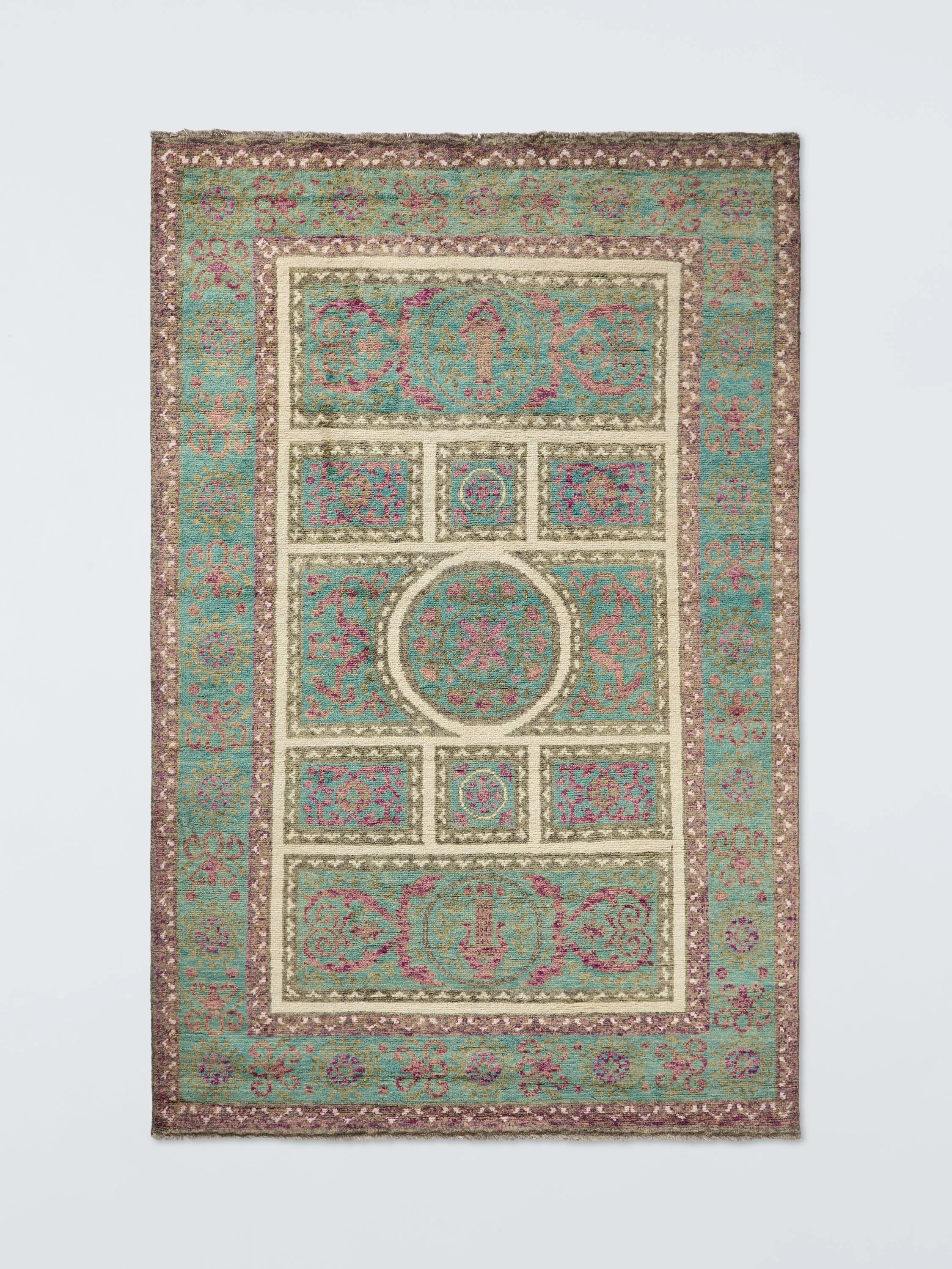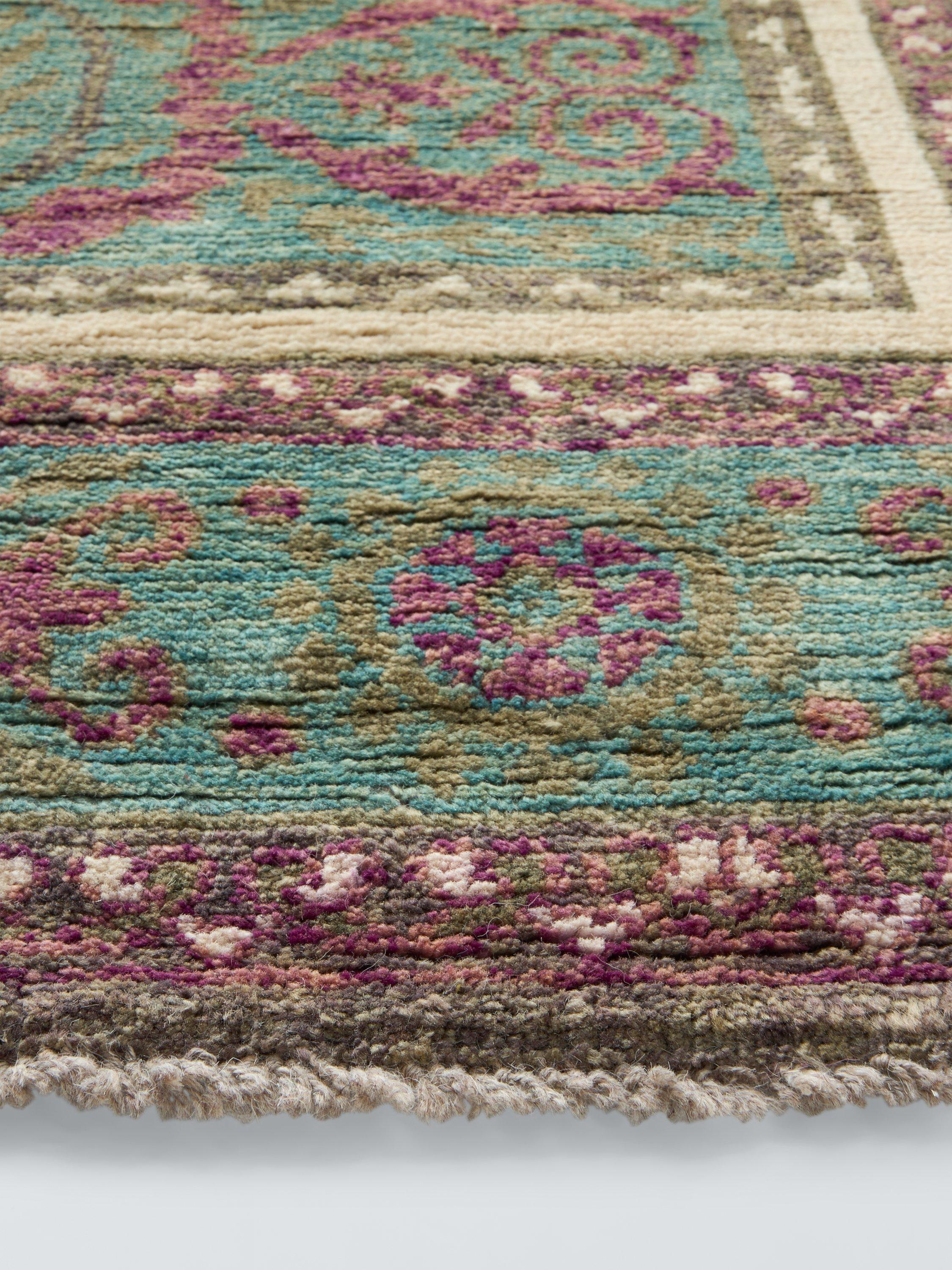 Indulgently knotted by hand with an inviting, pure wool pile, Khotan showcases a pattern inspired by centuries of traditional rug design. Fringed edges add an authentic, distressed feel.