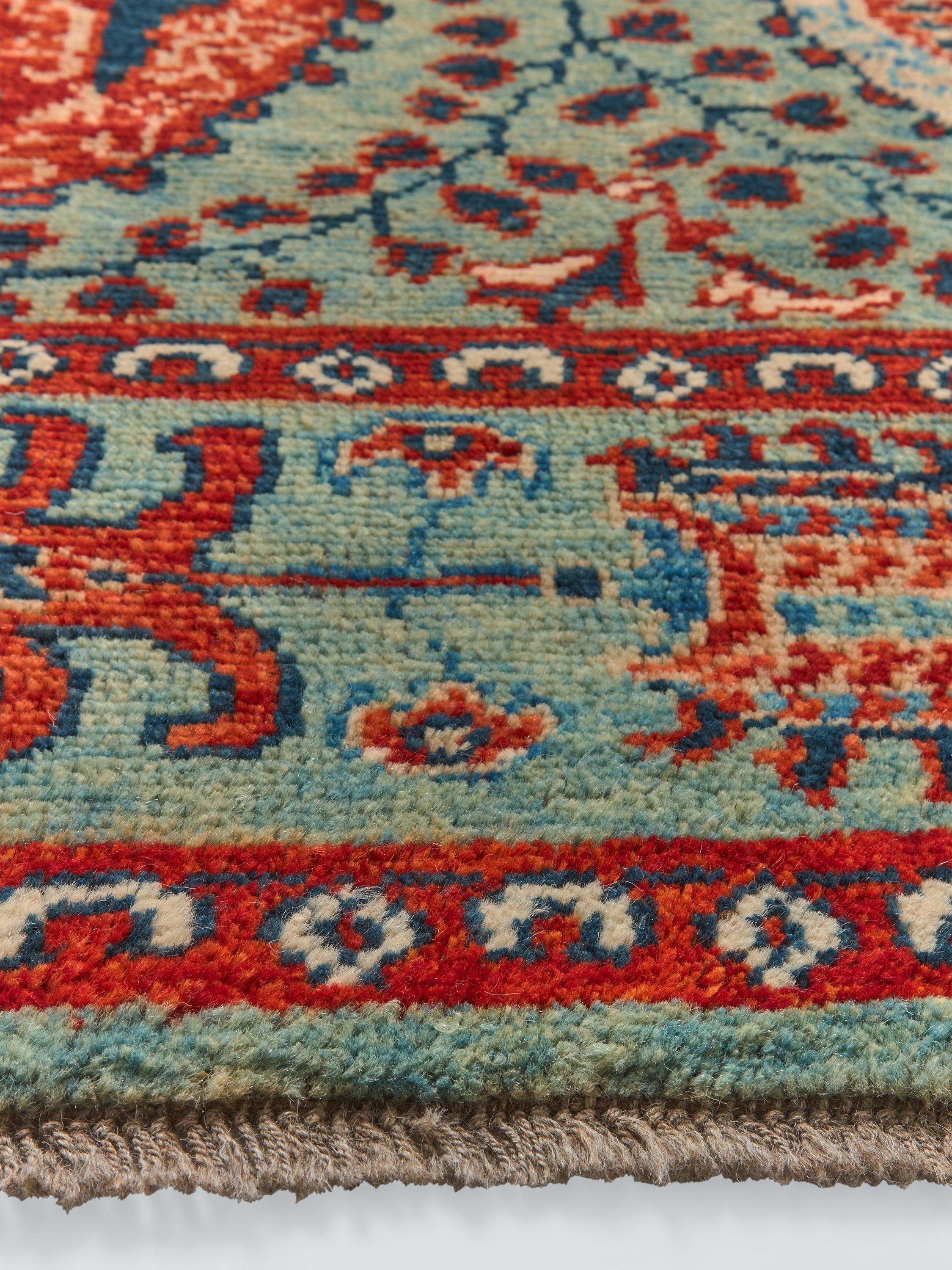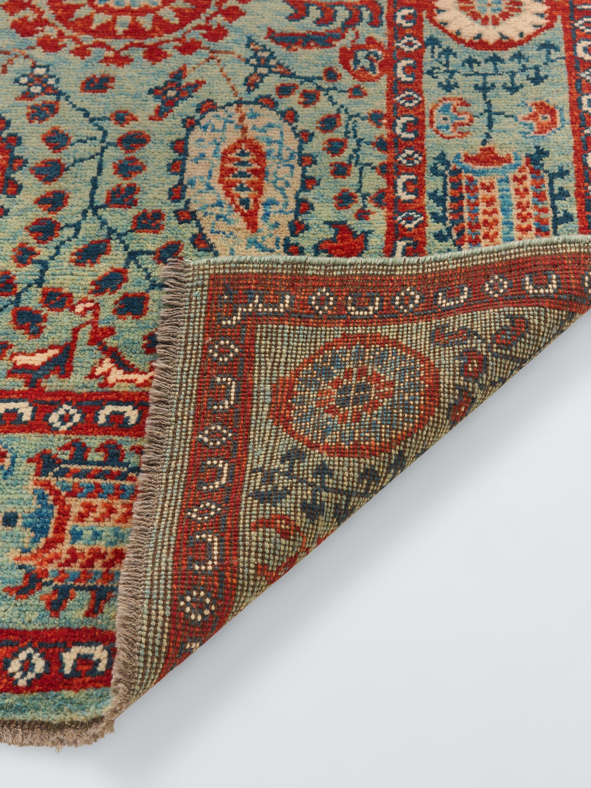 This rug has been knotted by hand, the oldest and most individual way a rug can be made. This involves an intricate process of weaving by hand on a loom where yarns are tied one at a time, giving the rug a durable construction.