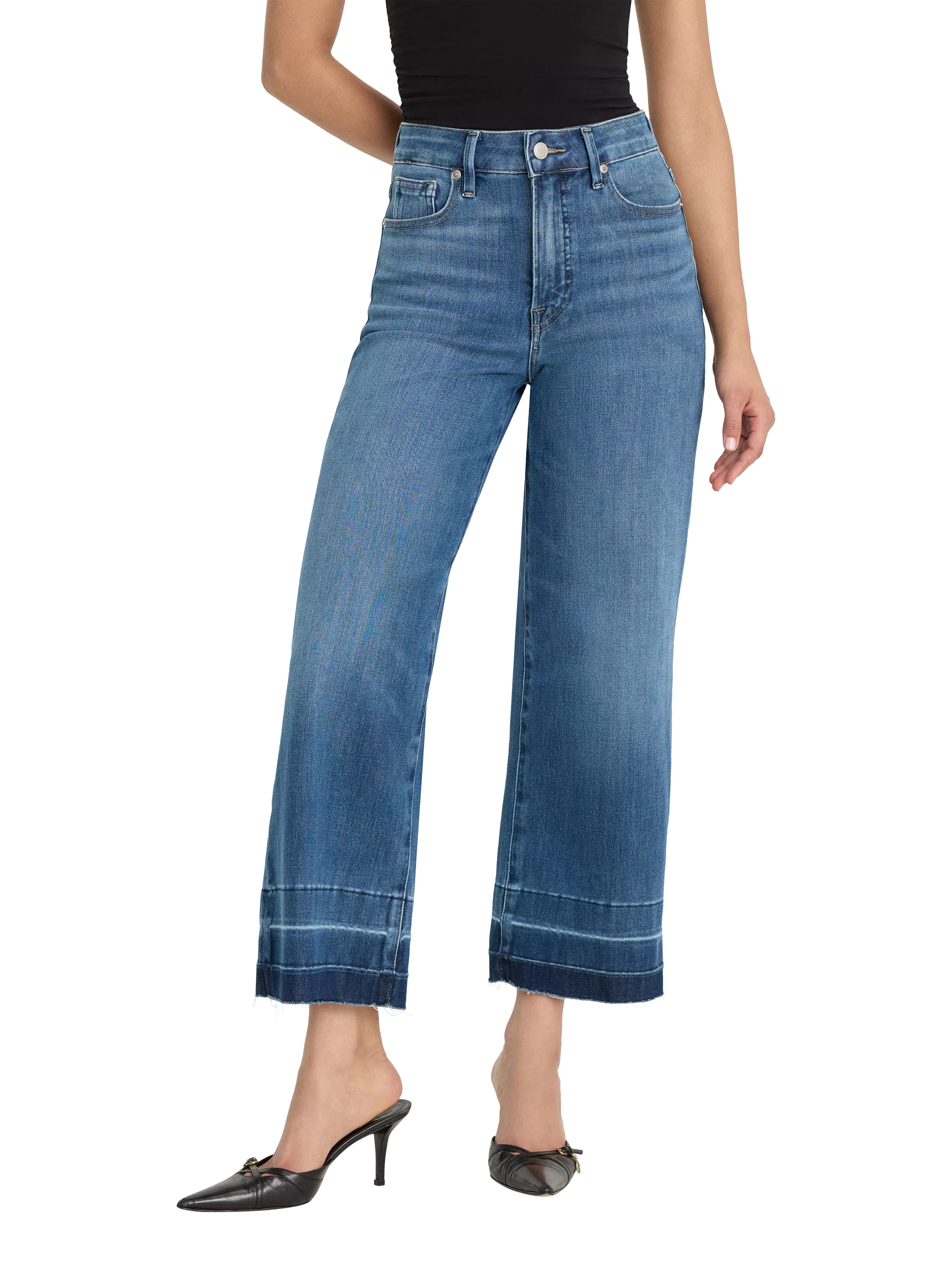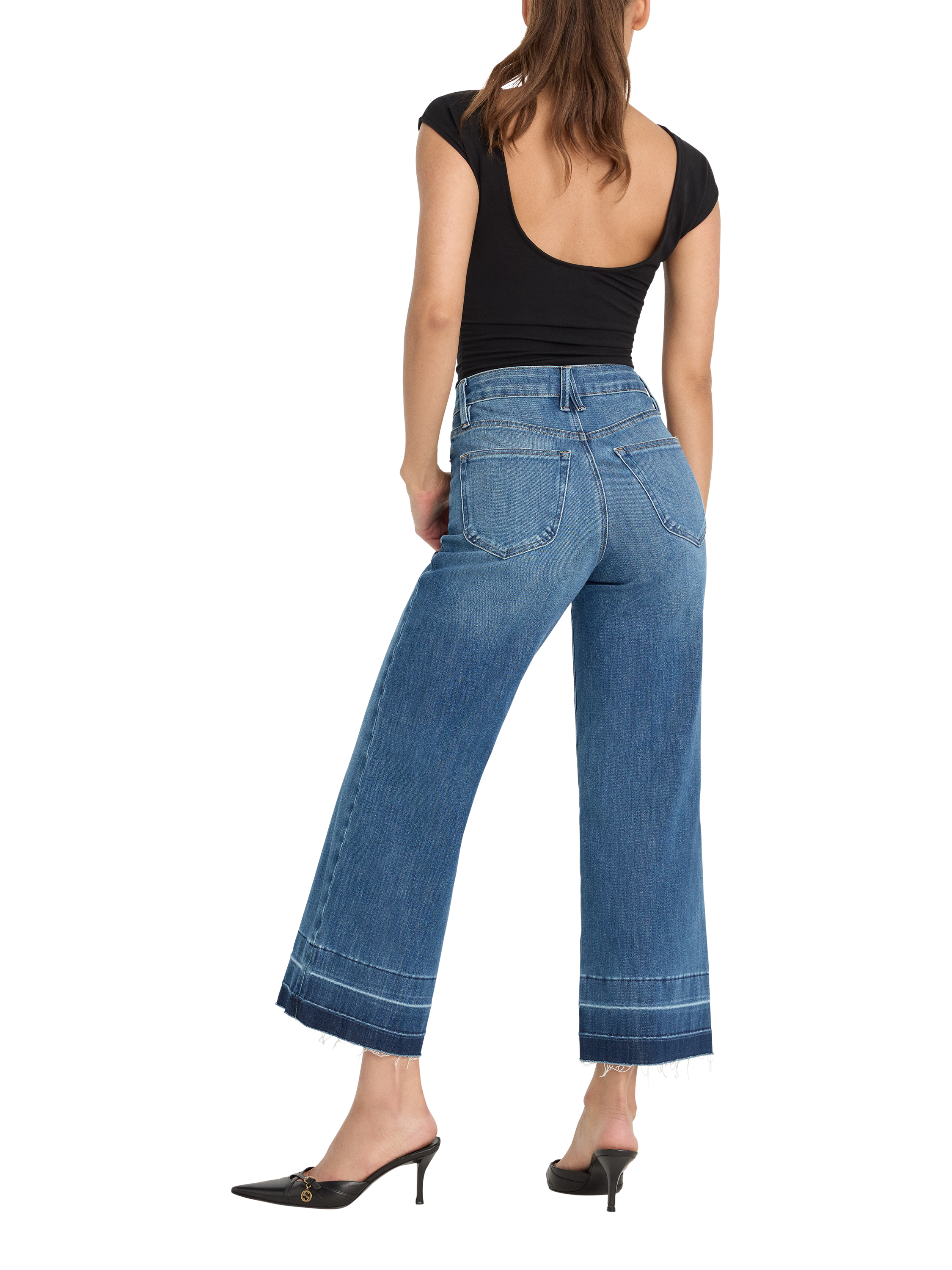 The ultimate waist-cinching style. A form-hugging fit with a wide leg, ankle-length silhouette, a flattering high-rise waist for a defined hourglass shape, and a lived-in released hem. Made from innovative and super-stretchy Soft Tech Denim, aka the world's softest, lightest jeans ever.