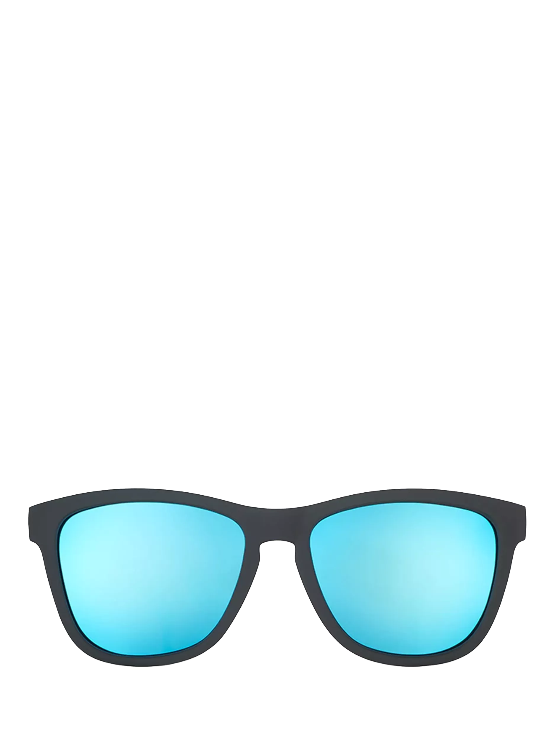 These black and blue sunglasses offer the best of both worlds: sleek black frames with a pop of colour. A special grip coating prevents slipping and bouncing, making them ideal for running, golfing, frolfing, cartwheeling and other sweaty activities. The ultimate duo: business in the frame, party in the lens.