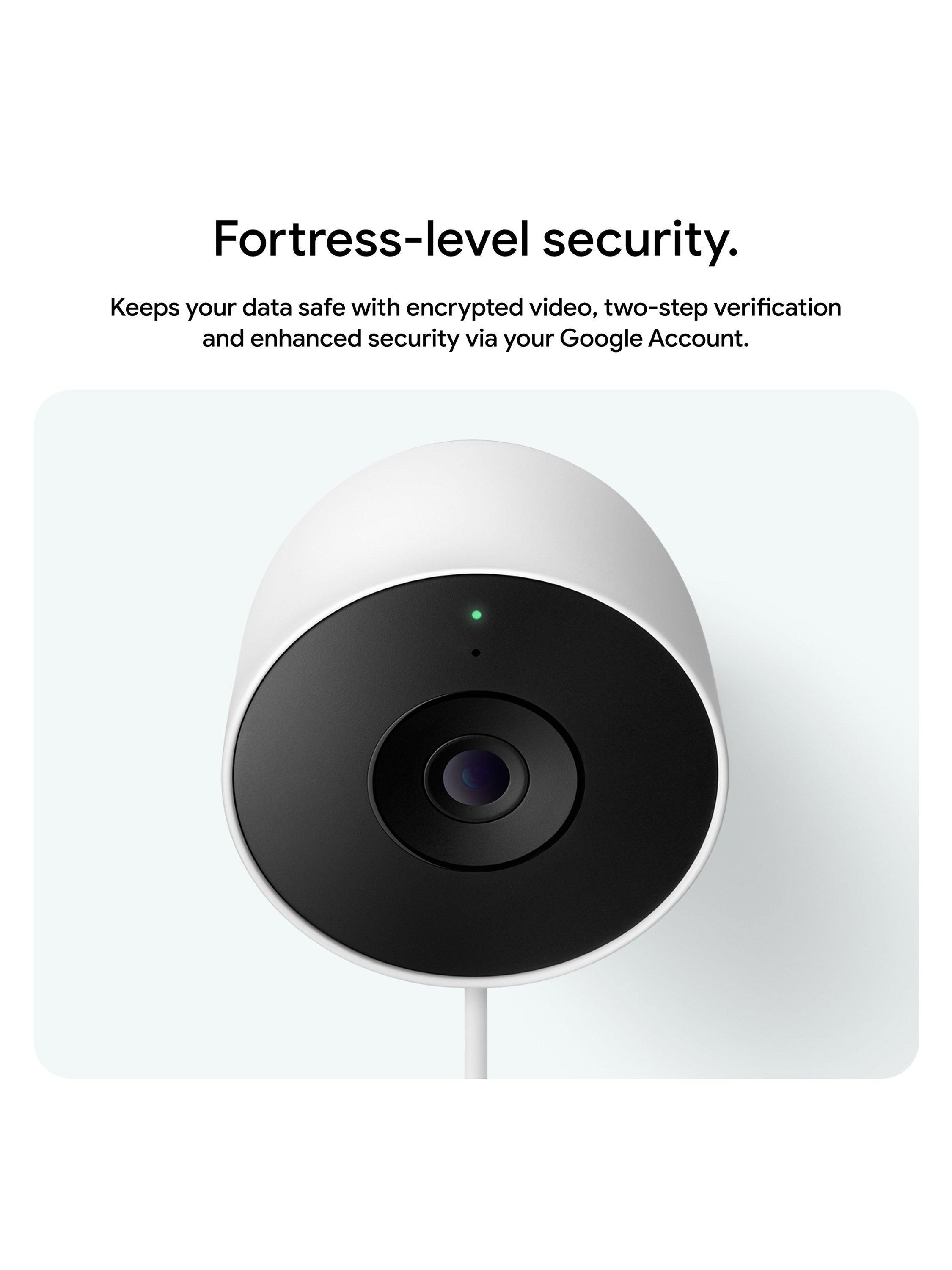 Nest Cam uses encrypted video, two-step verification and enhanced security through your Google Account to help protect your privacy. And a green LED lets you know when the camera is processing or streaming video.