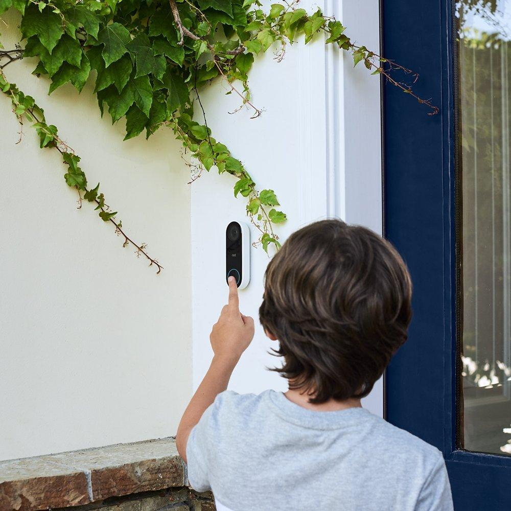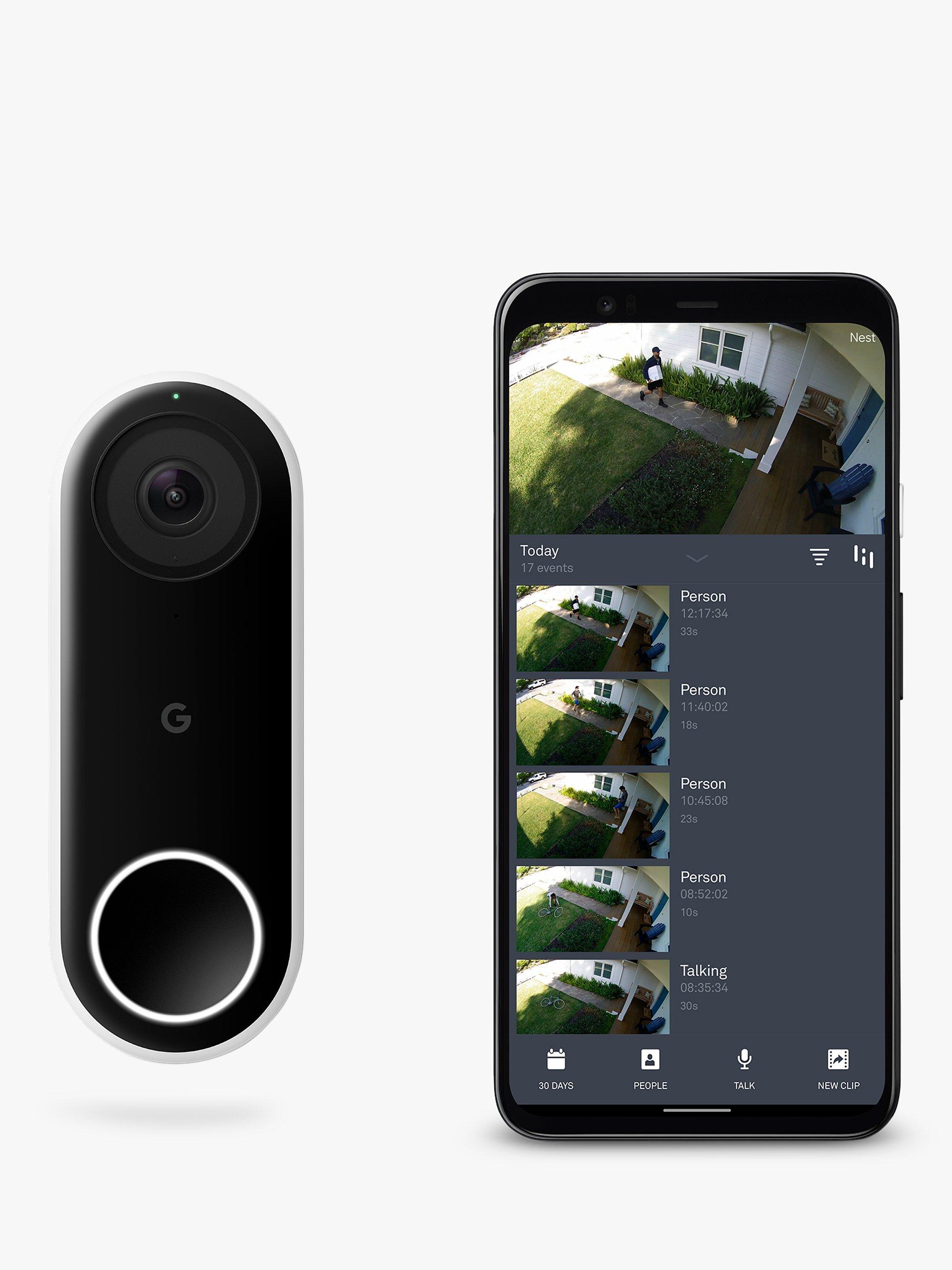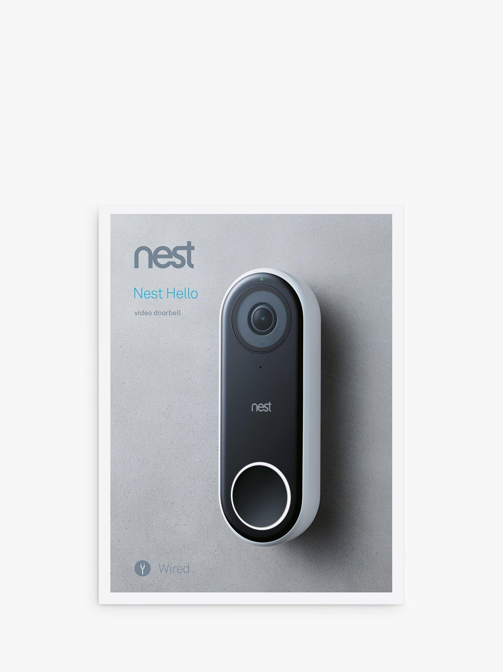 Nest Hello Video Doorbell lets you know who's at the door, so you won't miss a visitor or parcel delivery. It can send an alert to your smart device, and can tell the difference between a person and something else. It gives you the full view with crystal clarity so you can see the person from head to toe, right down to the doorstep so you can see parcels left for you too, and you can speak to your visitor via the Nest app (iOS & Android). With an optional Nest Aware subscription it can tell the difference between people you know and a stranger, and it live-streams 24/7 so you can always check what's happening at your door.