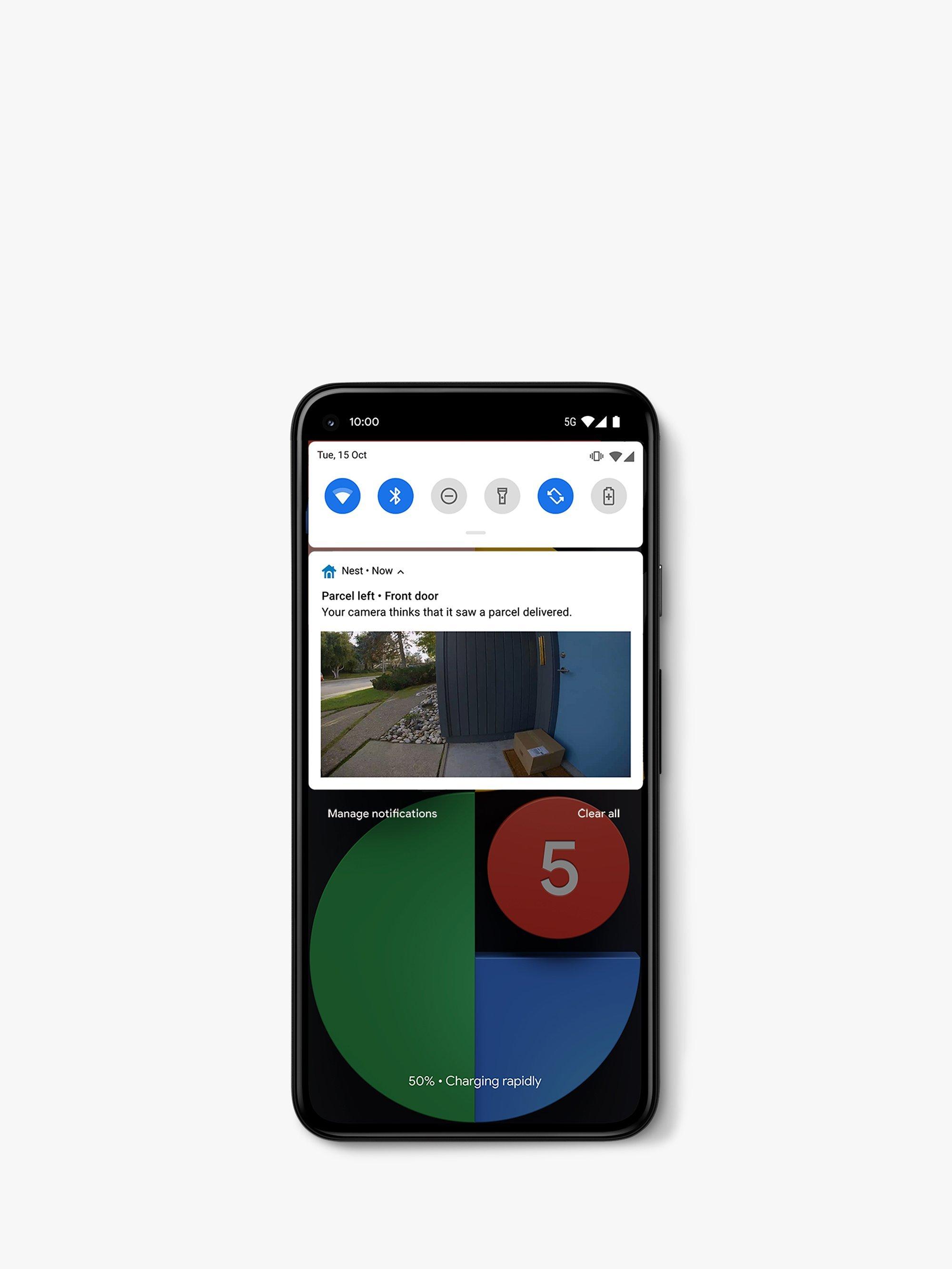 Nest Hello can send an alert to your smart device, either when someone presses the doorbell or when it detects a person, motion or sound. And it includes a picture so you can see who's there straight away. It's also compatible with Google Home smart speakers so they can announce when someone's at the door.