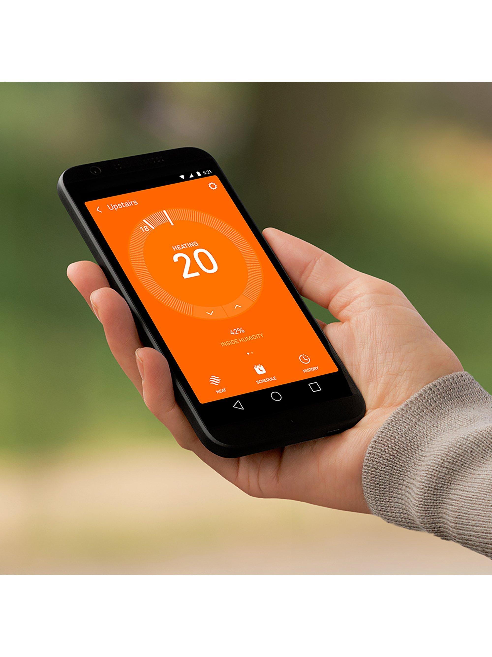 Download Nest’s app on to your laptop or mobile (iOS, Android) to change the temperature and hot water use from anywhere. Whether it from your sofa or from work, this remote control gives you absolute power over your home.