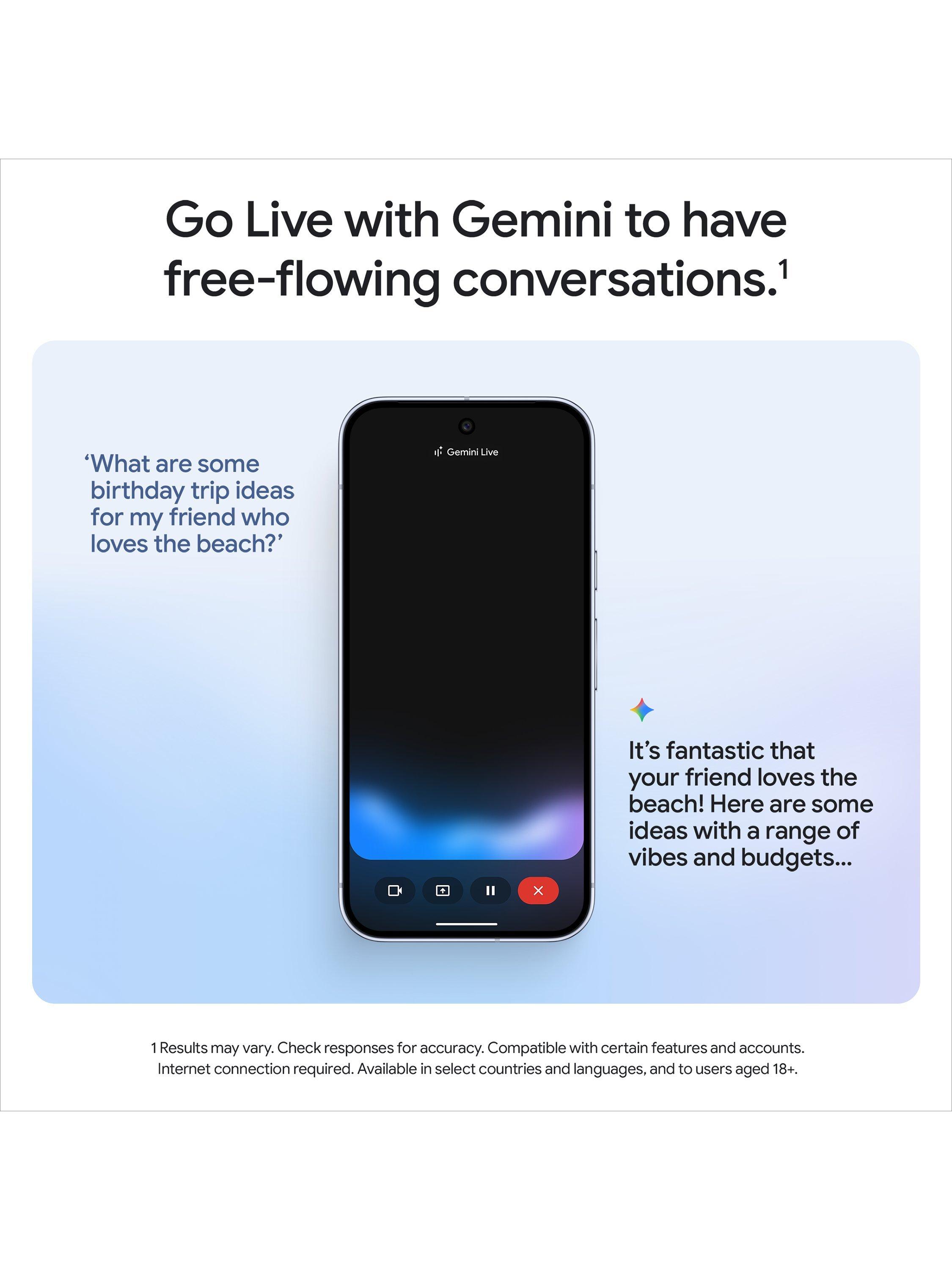 Google’s most capable AI built into Pixel’s most powerful phone yet. Talk through whatever’s on your screen with Gemini. Save time by asking Gemini to find info and get things done across your Google apps.(1)