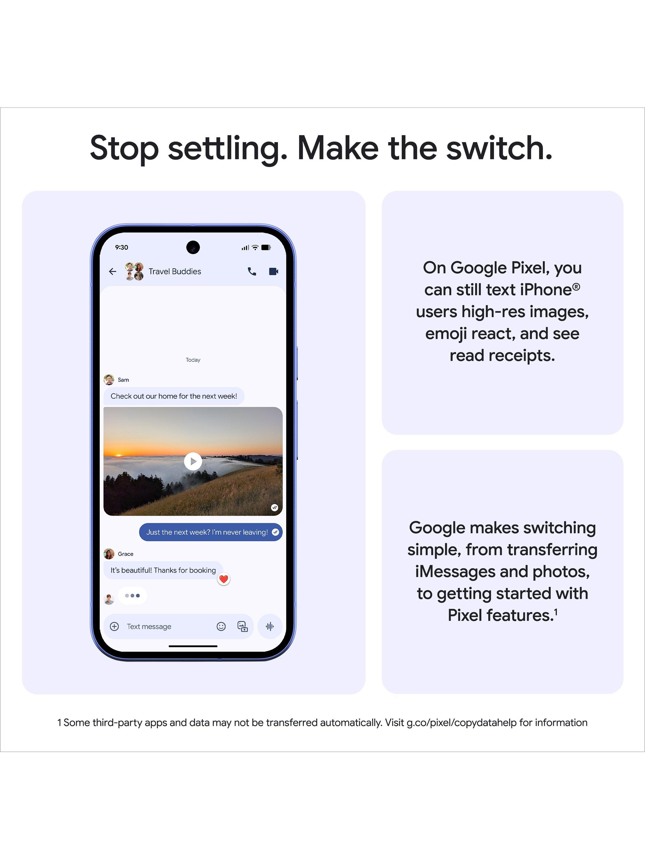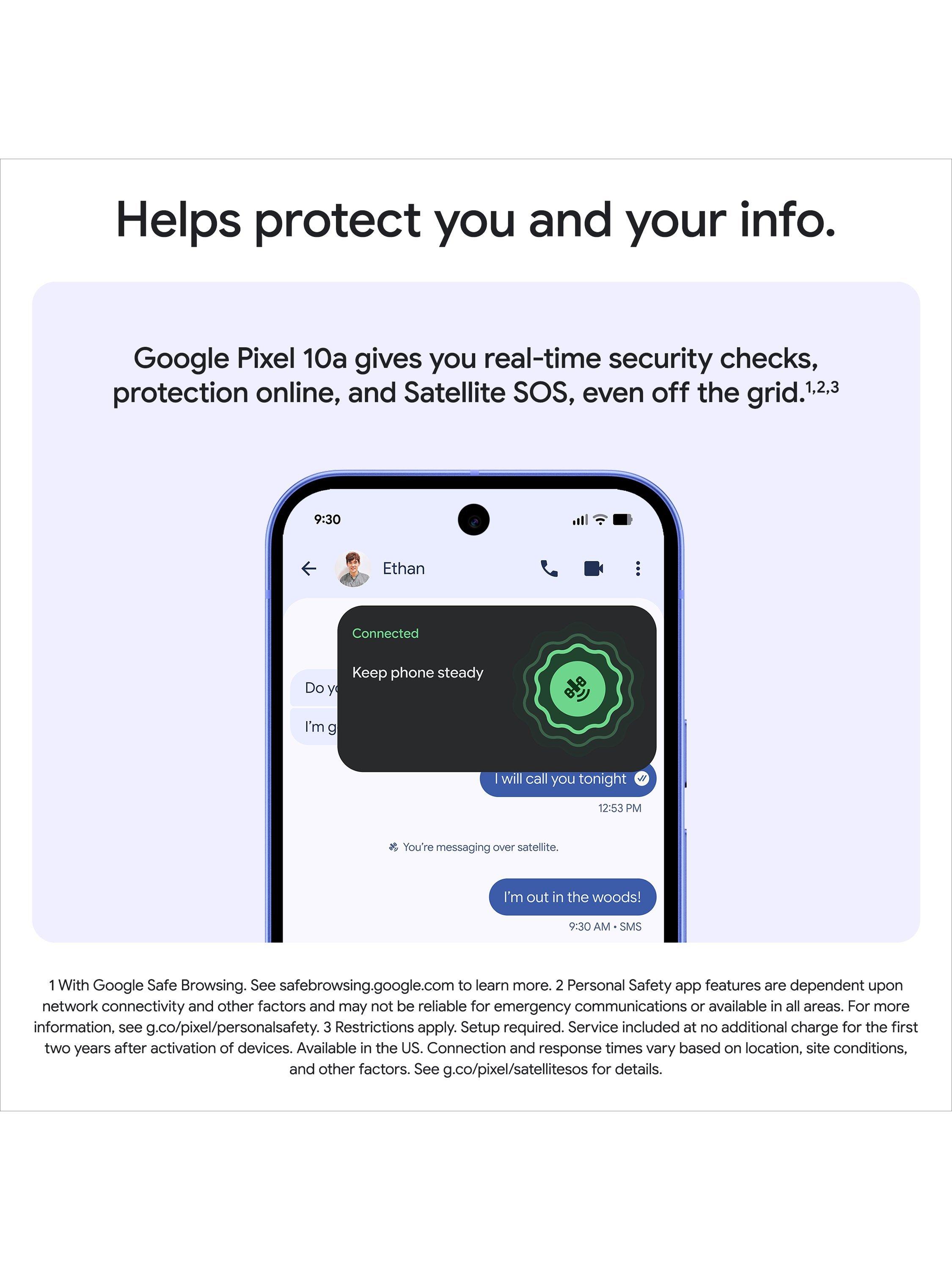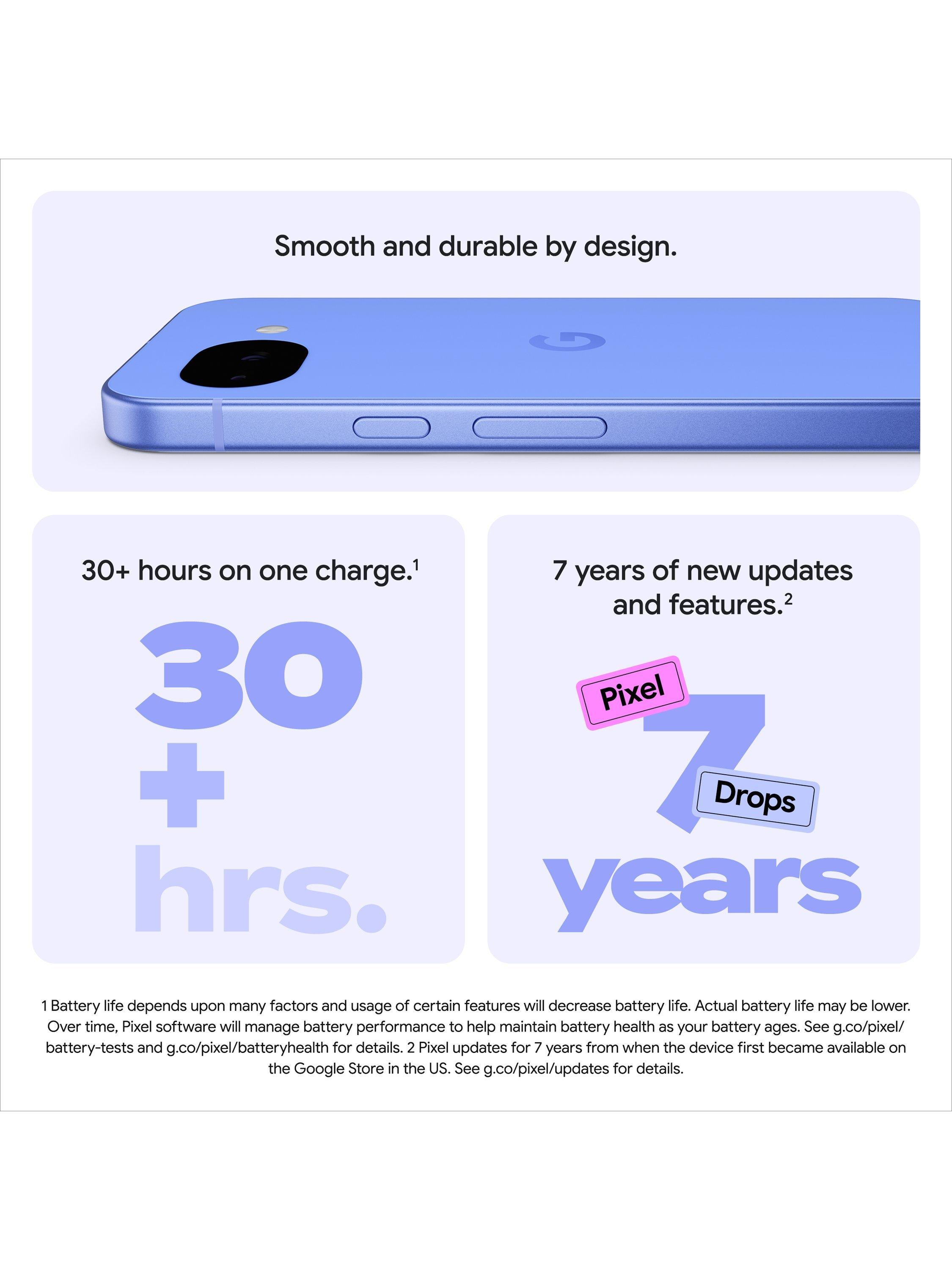 With a durable design, 30+ hours of battery life(2) and seven years of updates,(3) Google Pixel 10a is a smart choice for the long run.(4)
