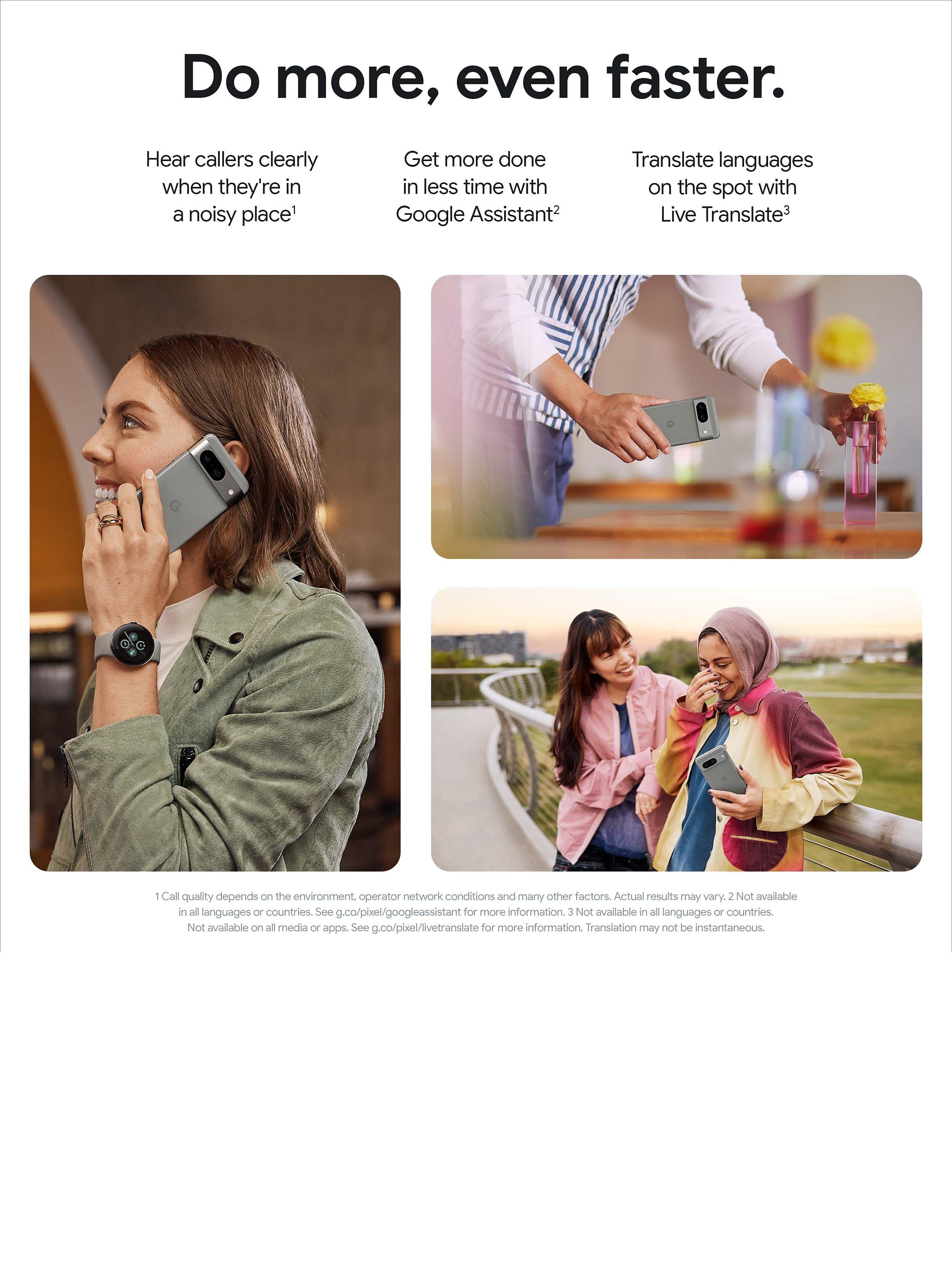 Google Tensor G3 is Pixel’s most powerful chip yet. It’s custom-designed with Google AI for cutting-edge photo and video features and smarter ways to help throughout the day (compared to earlier Pixel phones). And it makes Pixel 8 super fast and efficient.