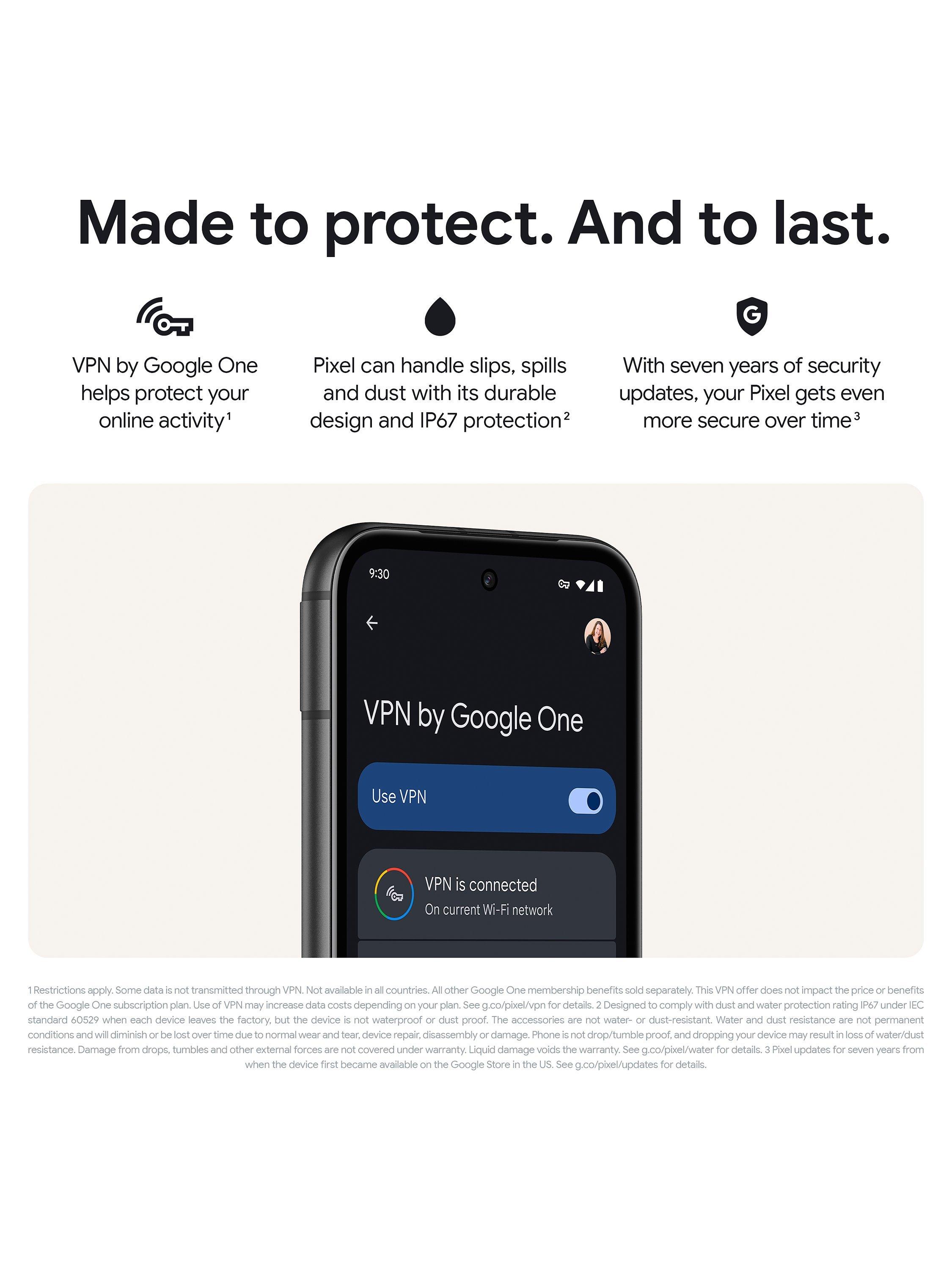 With its durable design and IP67 protection, Pixel 8a can handle slips, spills, dust and even fingerprints. And it's scratch-resistant, with Corning Gorilla Glass 3.