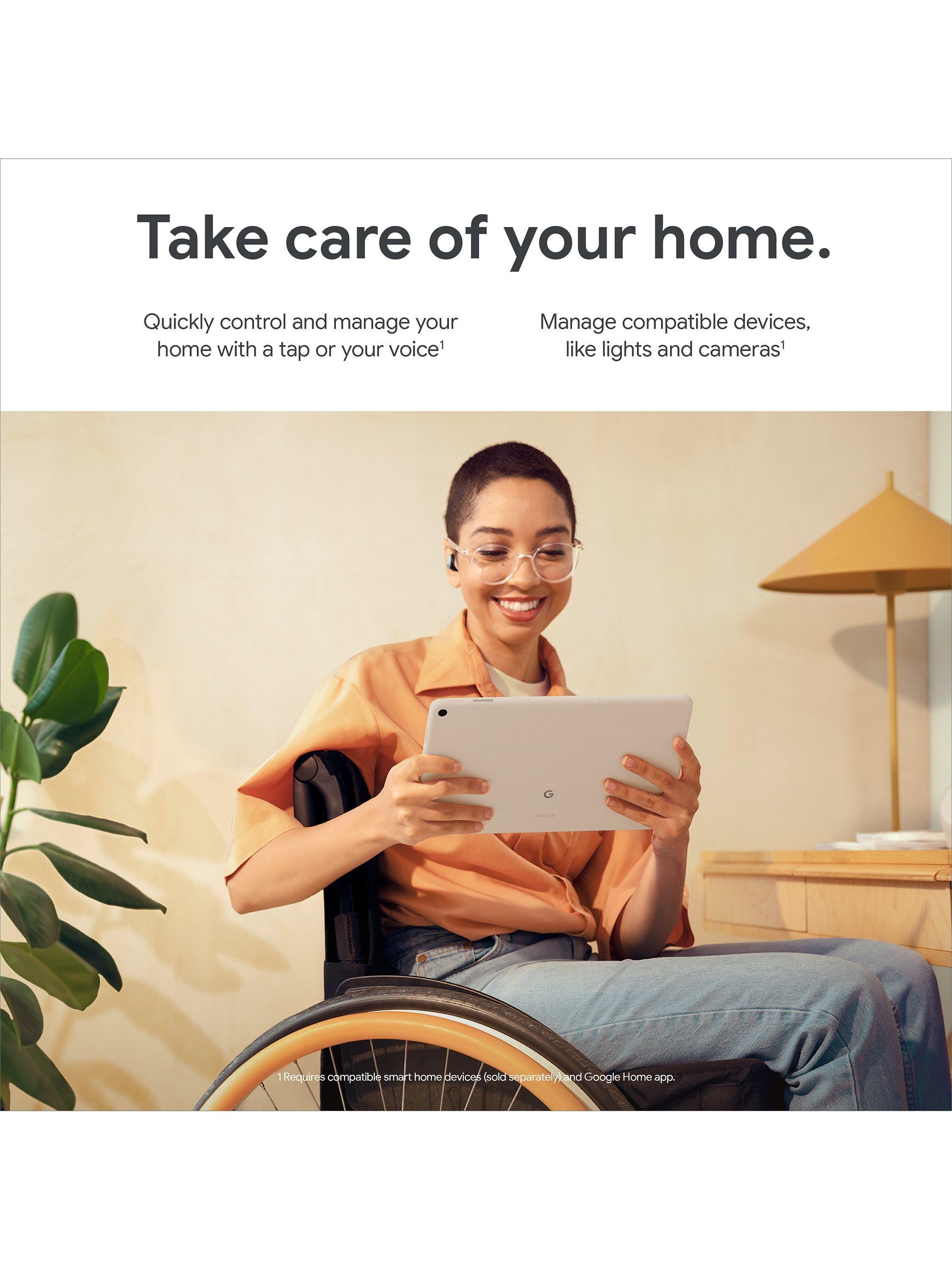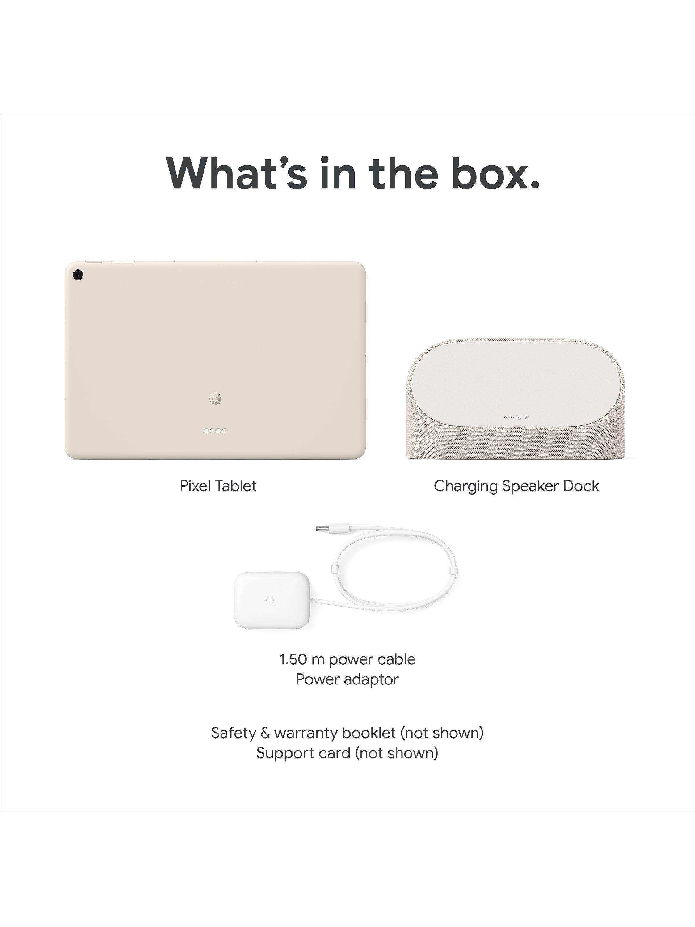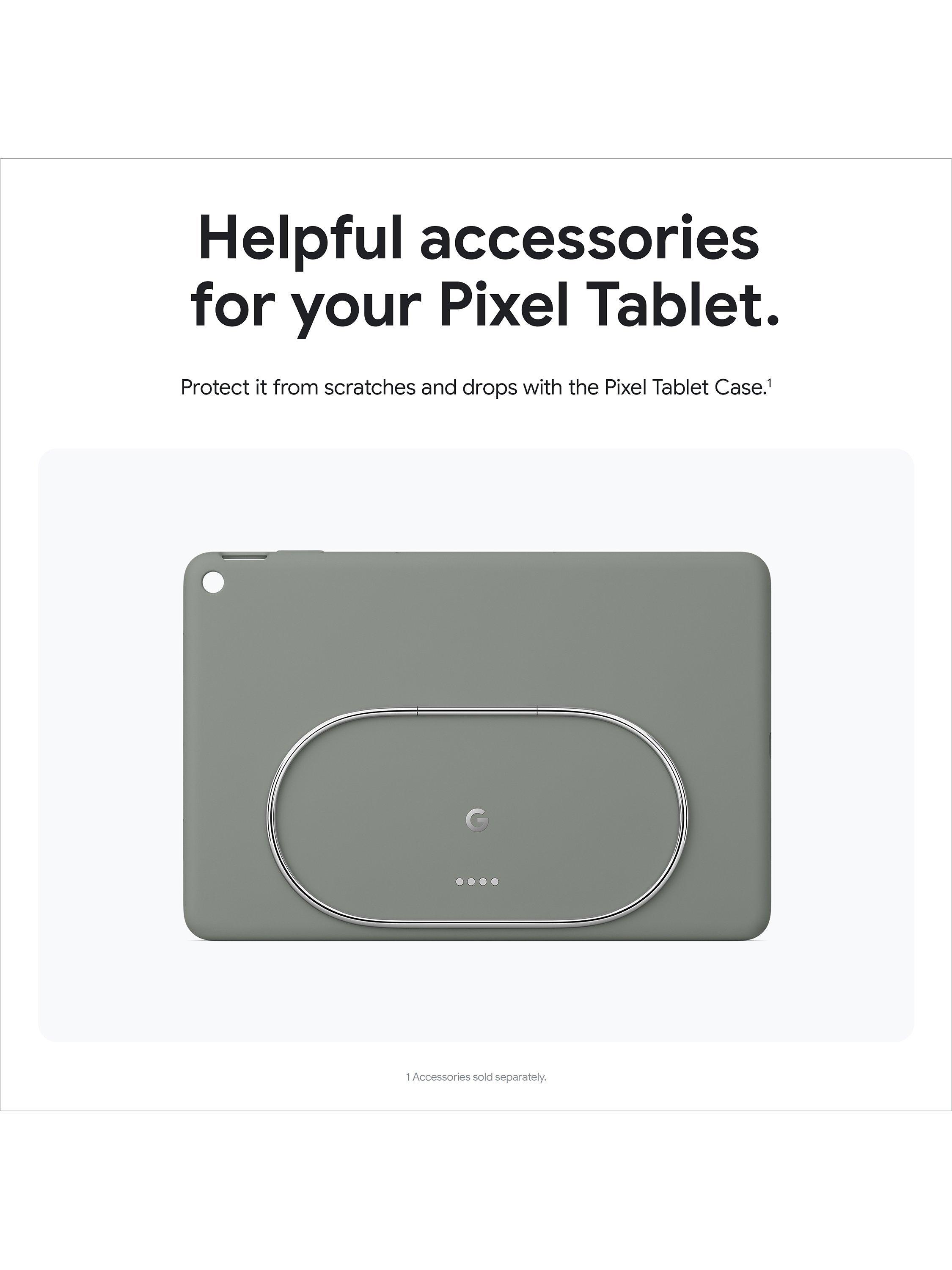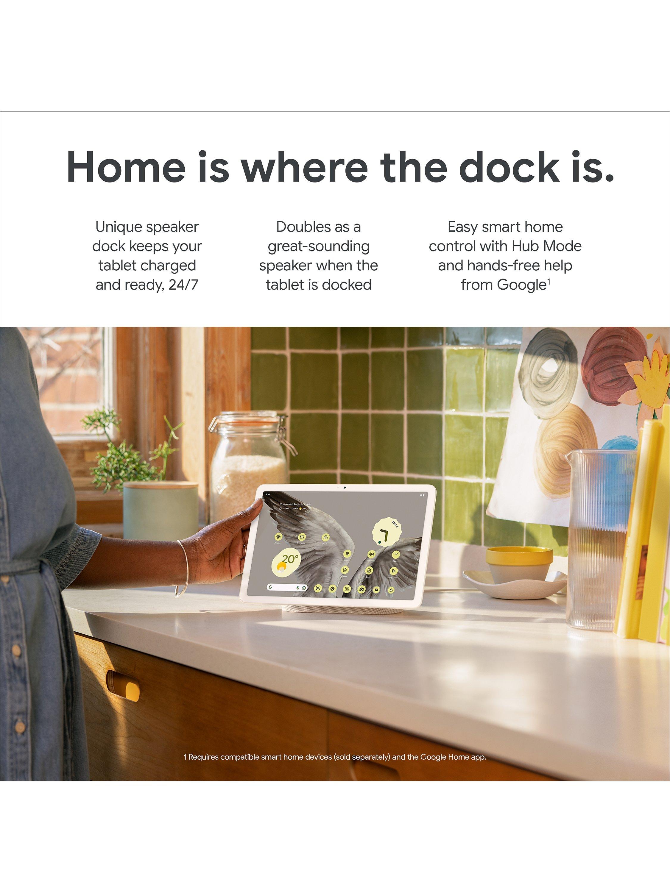 It allows you to work the way you want. Get some of the best features of a smart display when your tablet is locked and docked, like smart home controls and hands-free help from Google (compatible smart home devices are sold separately). The Pixel Tablet also comes with Google Meet for HD video calling and its unique speaker dock keeps it charged and ready, 24/7.
