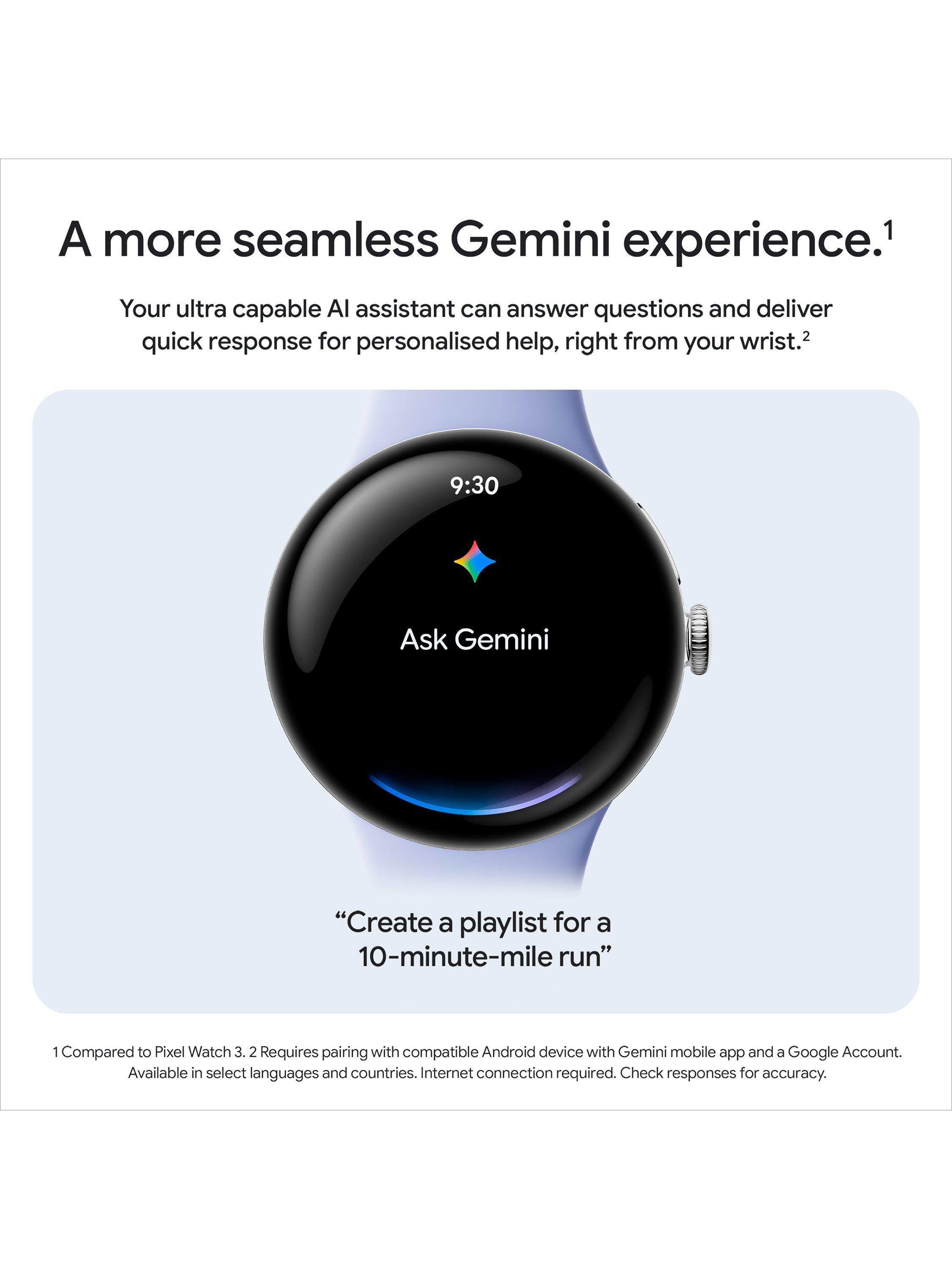 (1) Requires pairing with compatible Android device with Gemini mobile app and a Google Account. Available in select languages and countries. Internet connection required. Check responses for accuracy.
