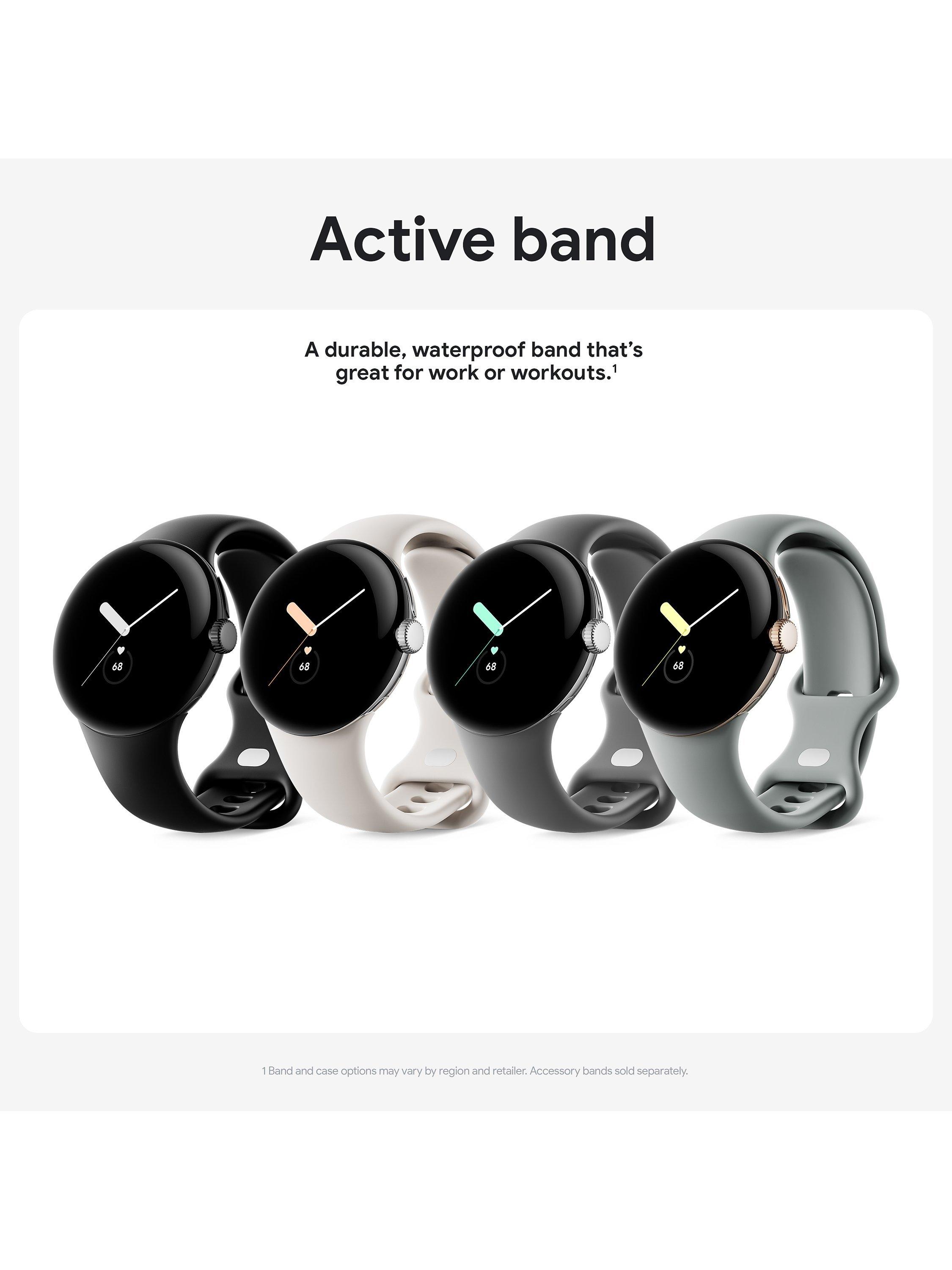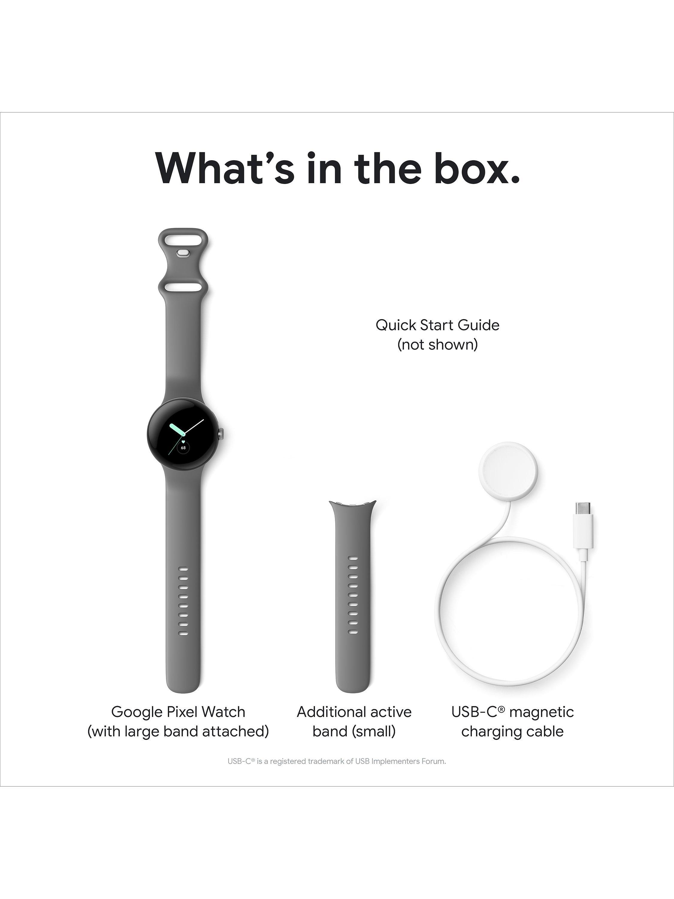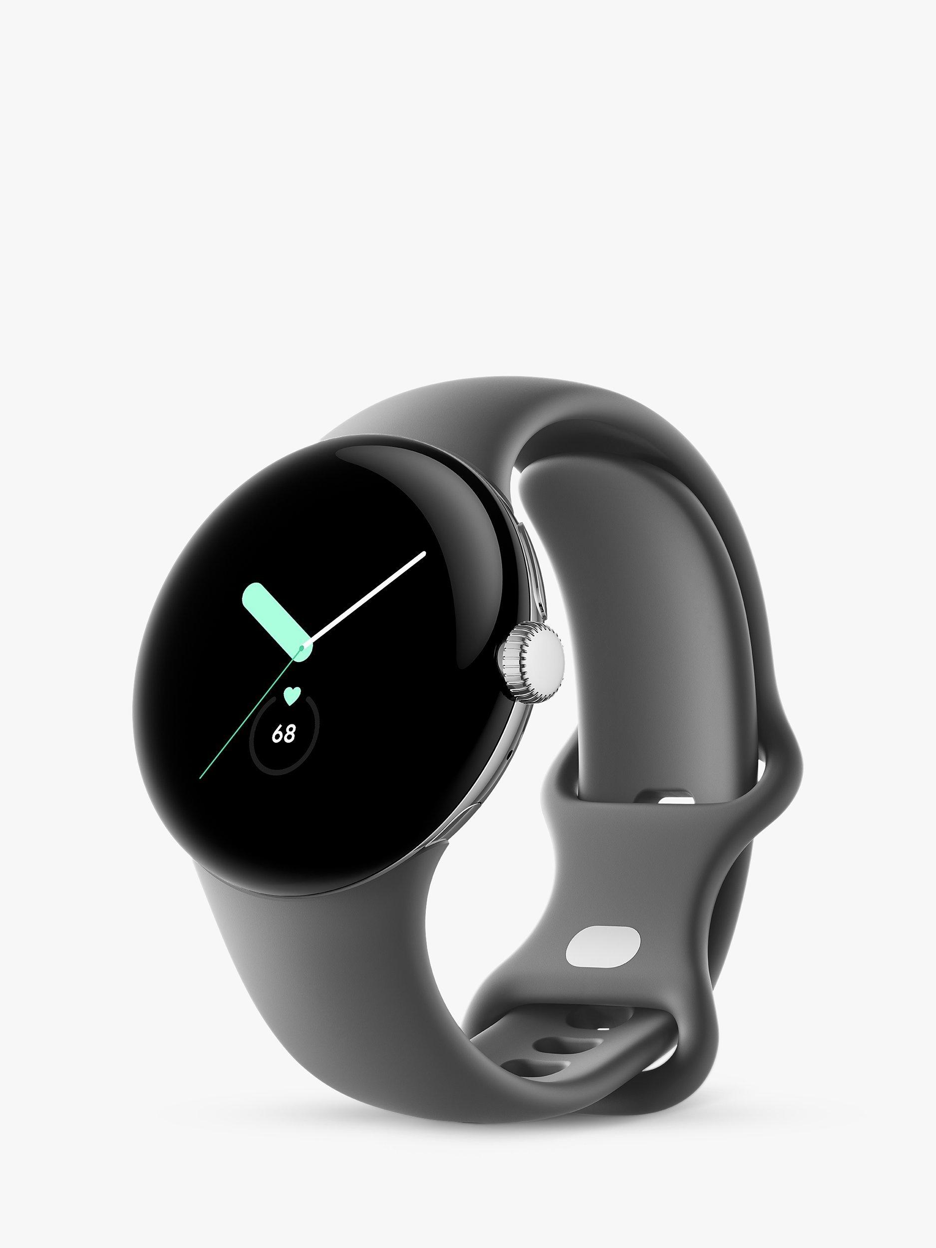 GooglePixel Watch GPS 41mm, Polished Silver Stainless Steel Case with Active Band in Charcoal