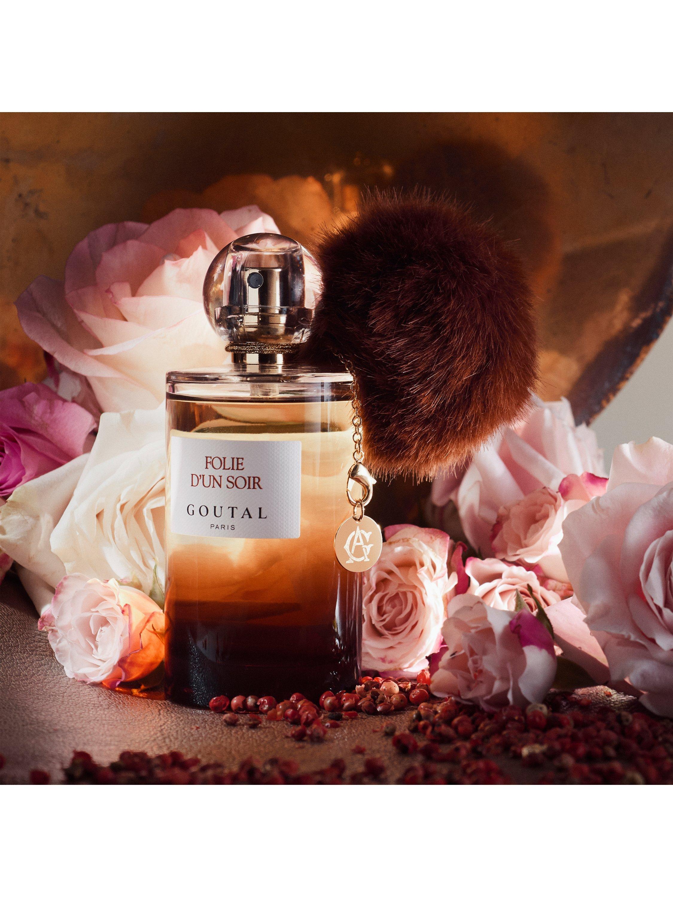 Goutal Folie d’une Soir is a woody and spicy fragrance with notes of Turkish Rose and Leather, awakened by surprising notes of Cocoa.