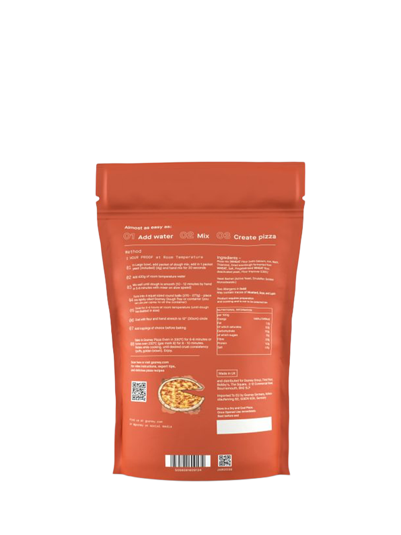 Everyone loves pizza but not everyone is a pizza pro maker, yet. Enter Gozney Pizza Dough Mix, an easy and simple way to make next-level pizza dough at home. Crafted from premium ingredients, it's almost as easy as: add water, mix and create crowd-pleasing pizza. Developed and tested in the Gozney kitchen to work perfectly with your outdoor pizza oven.