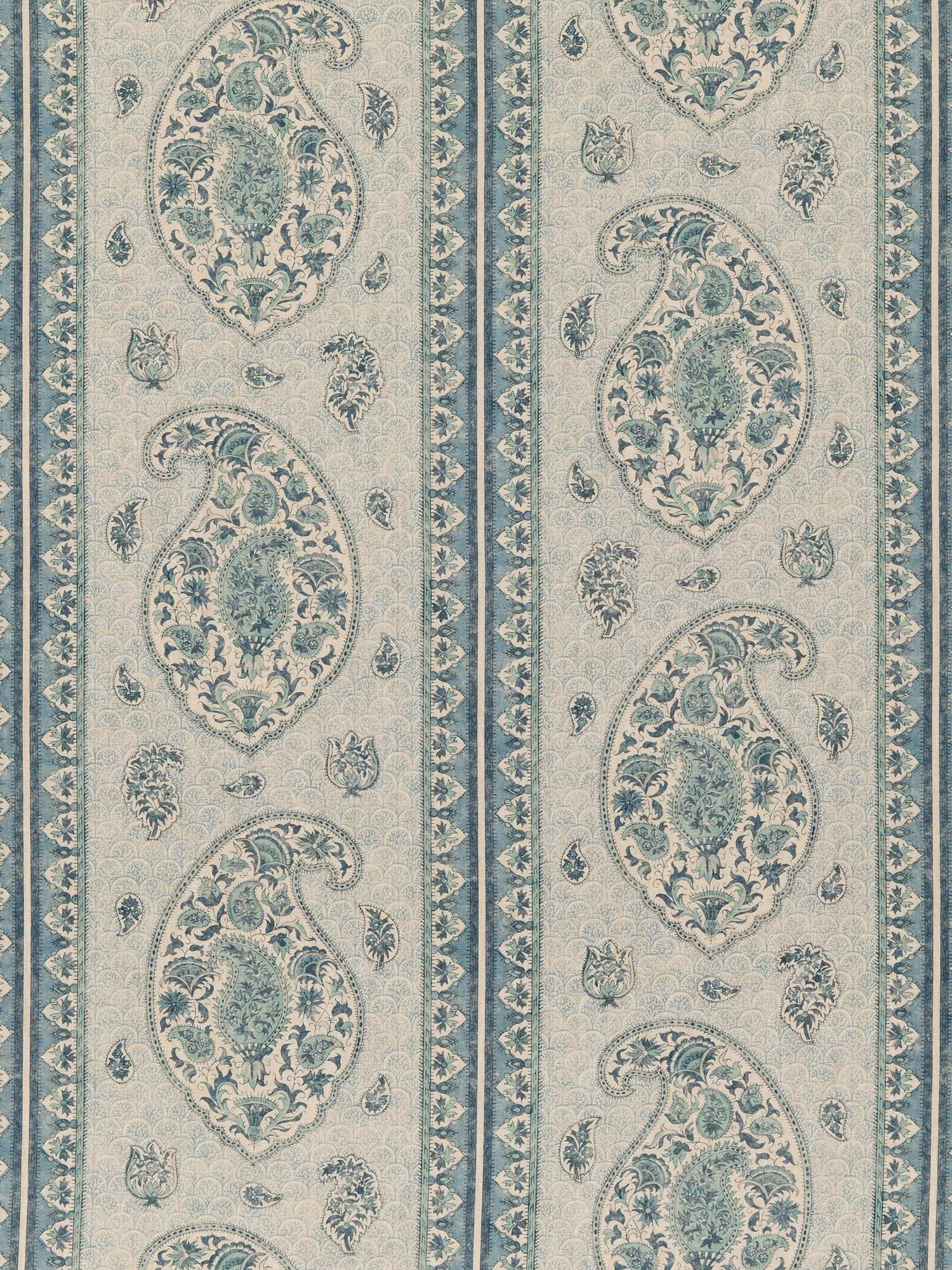Thought to have hidden messages and enigmatic symbols the paisley design is set to have been an allegory of life. On this fabric, the paisley motif is bordered with decorative bands.
