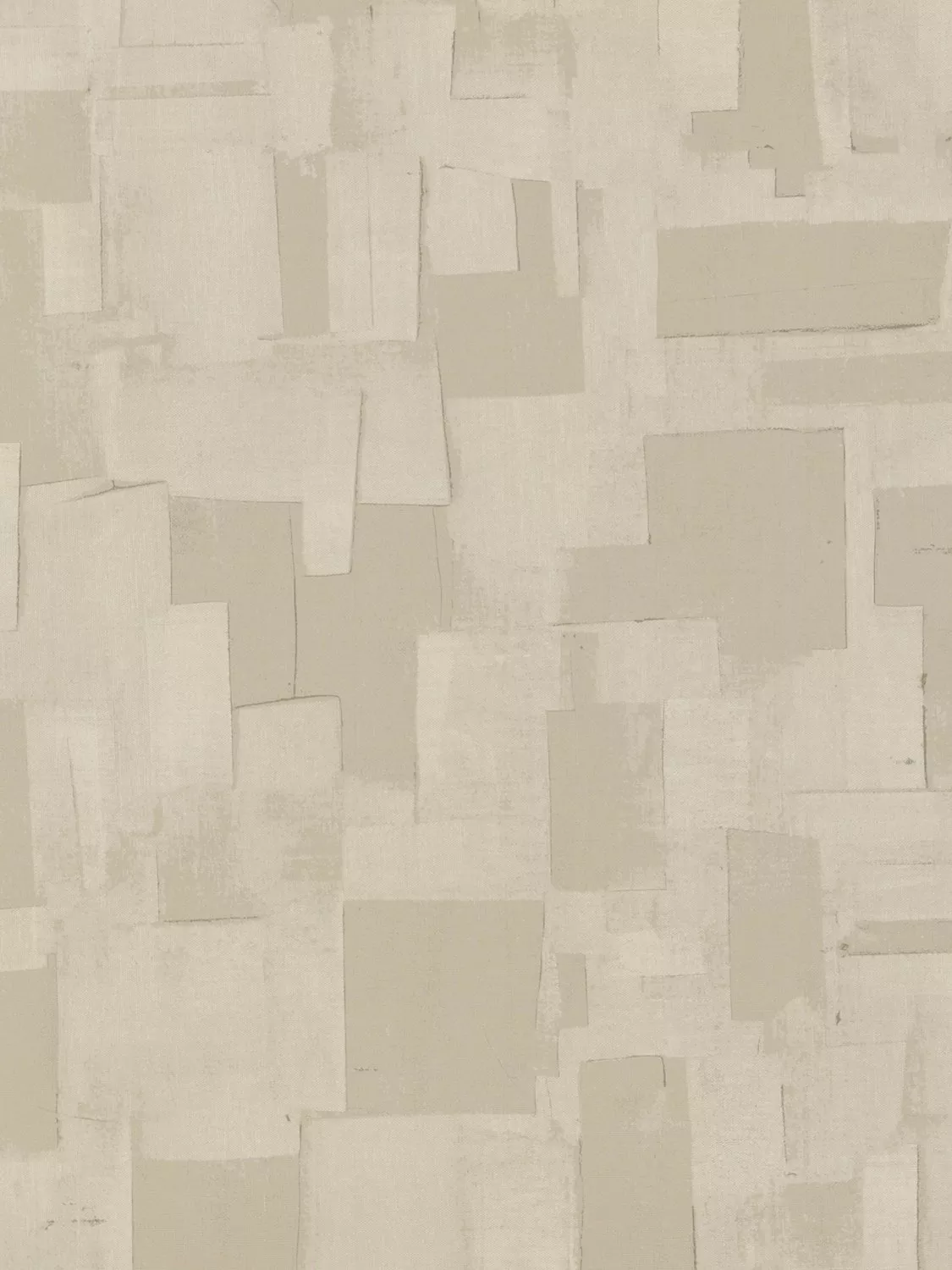 A tonal and textural arrangement of geometric blocks, bordered with gilded or contrasting highlights.
