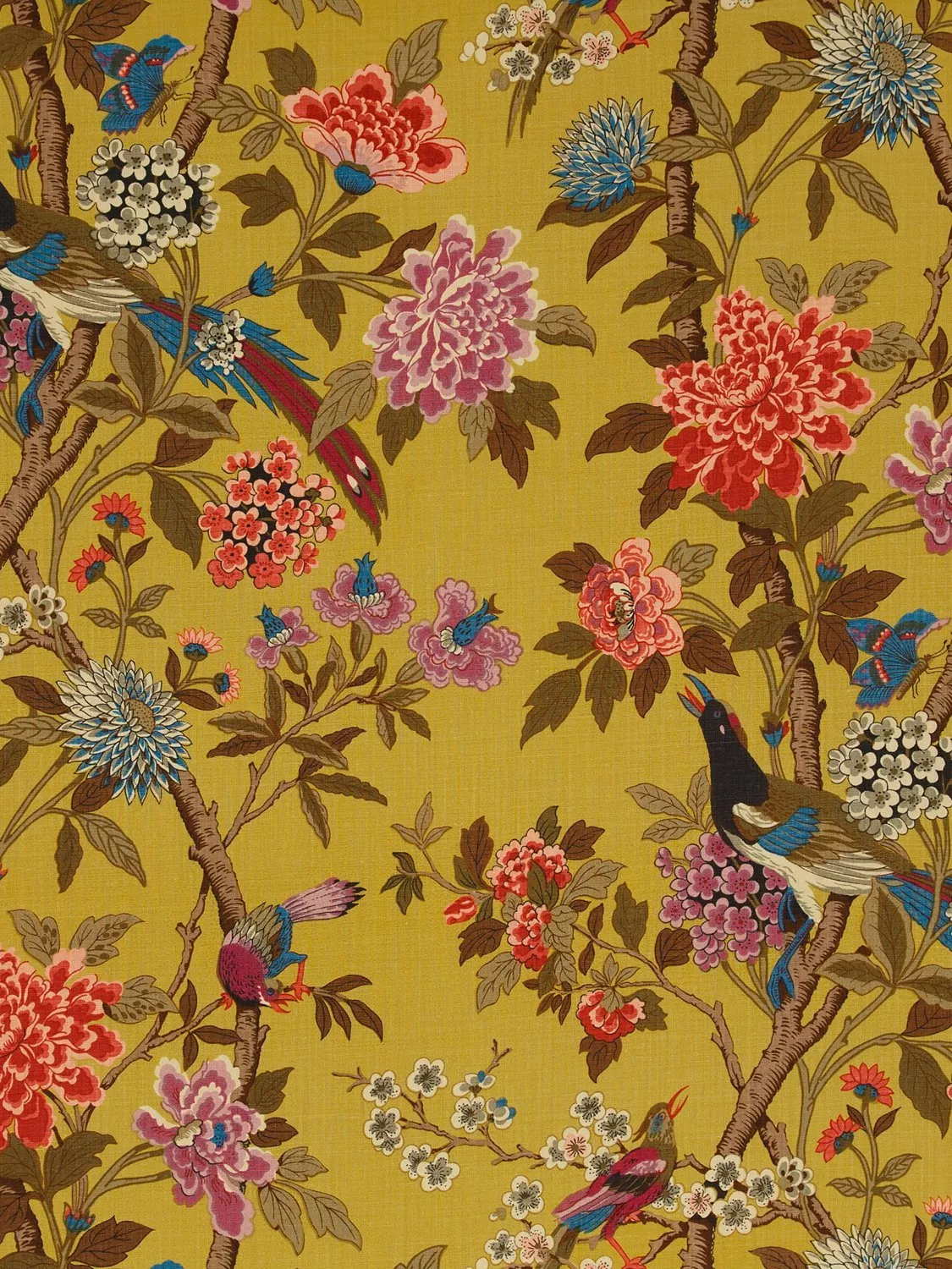 GP & J BakerHydrangea Bird Furnishing Fabric, Ochre