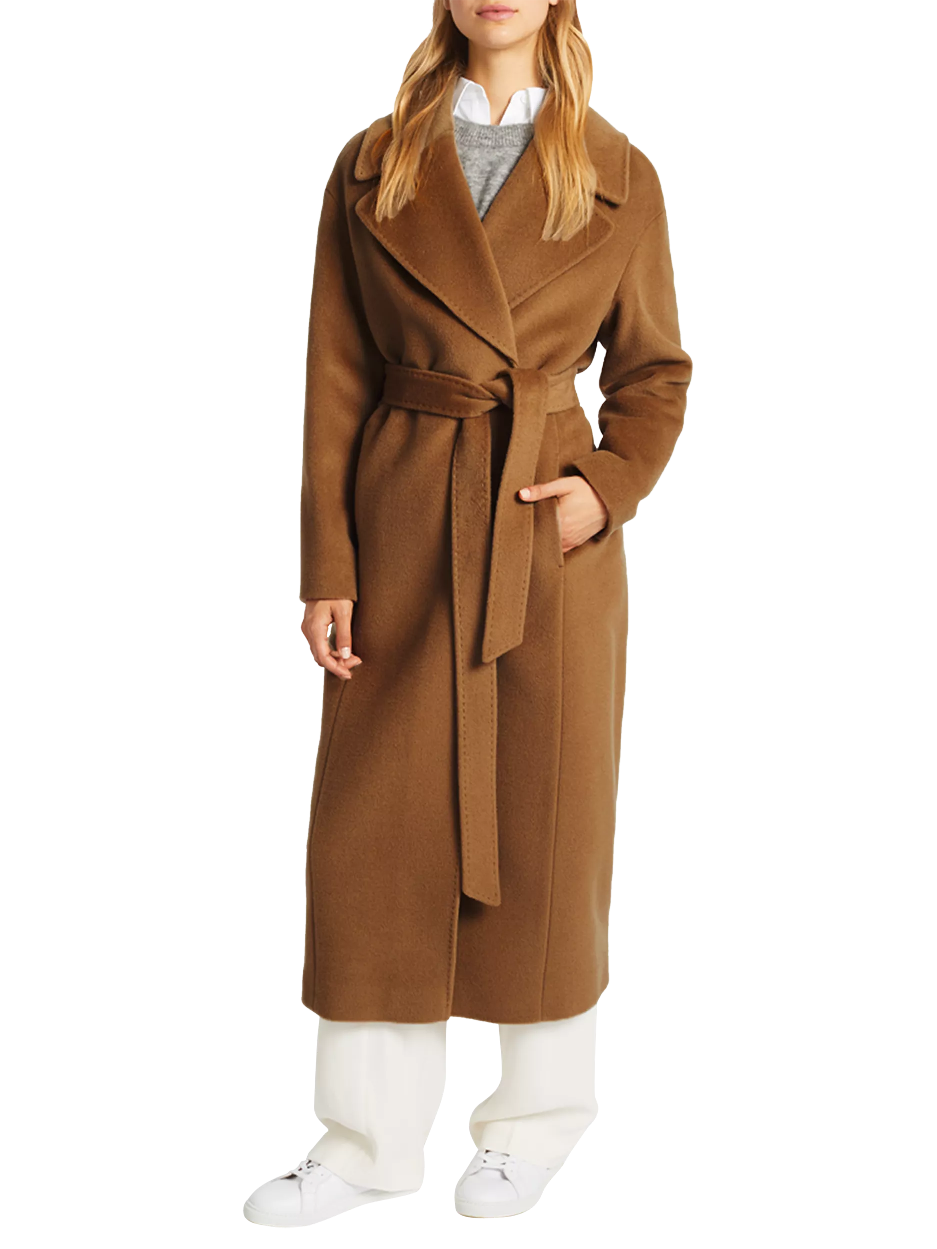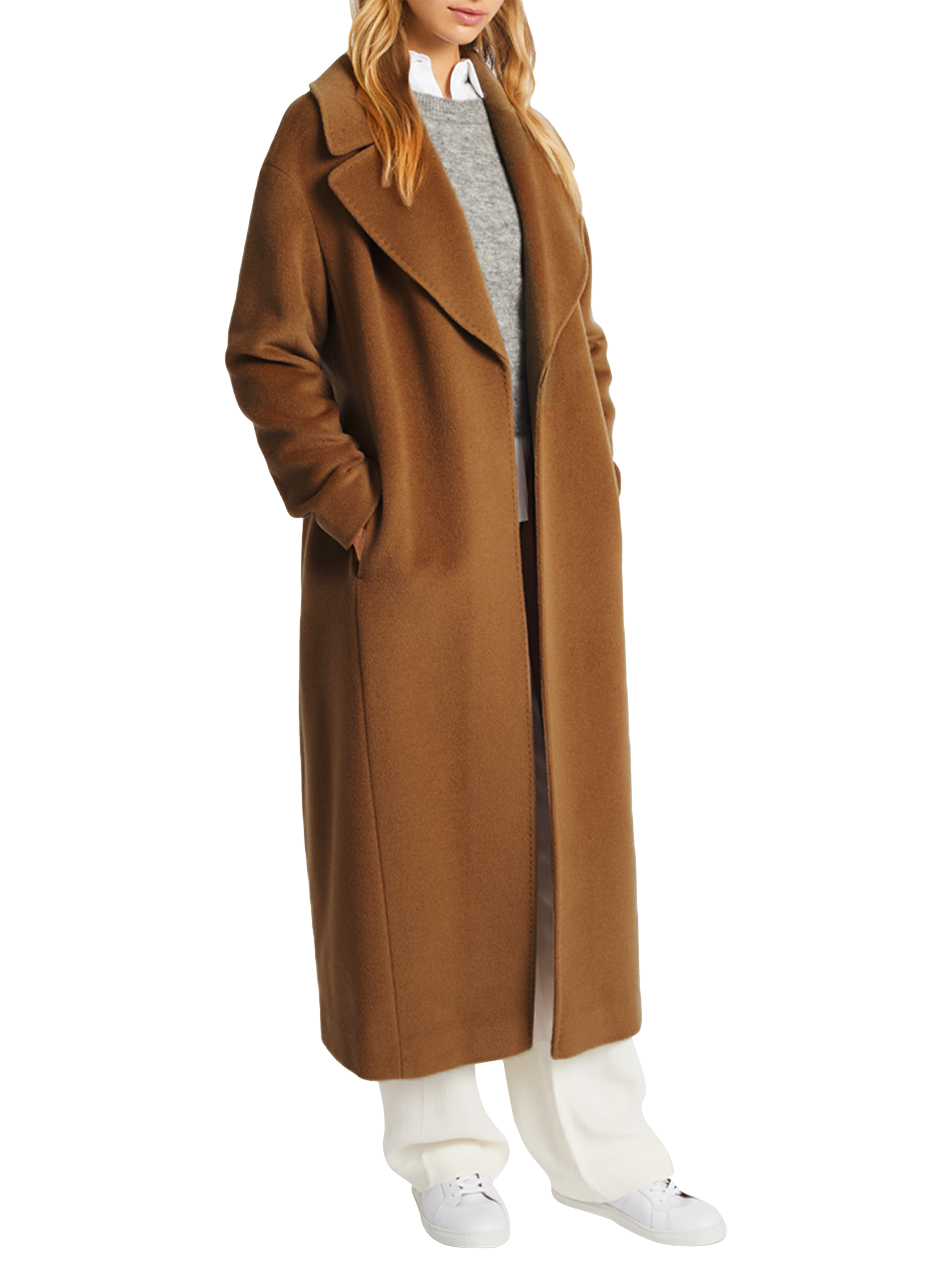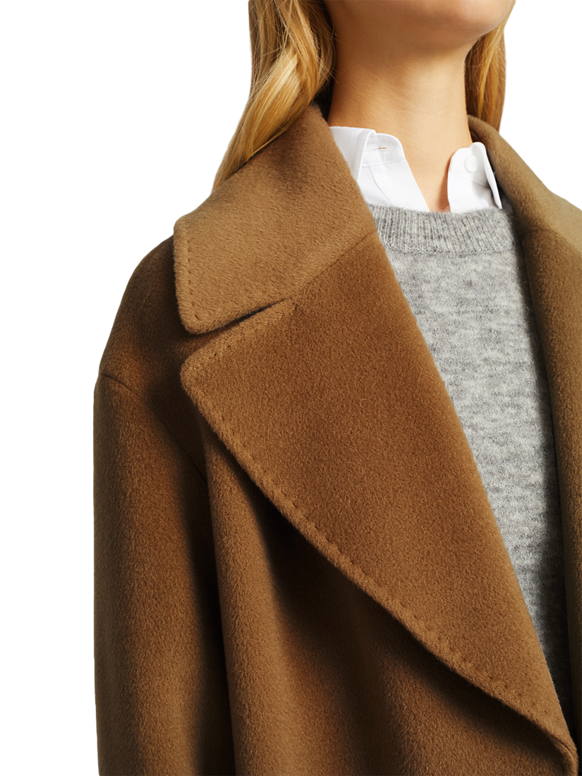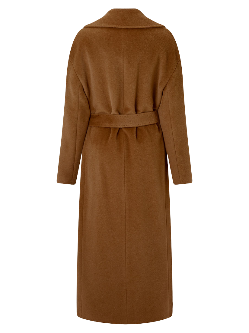 Meticulously crafted form pure Italian virgin wool, it boasts a relaxed, cocoon silhouette that falls to a long length below the knees. Boasting a smart design, with wide notch lapels and convenient welt pockets to the front, it offers versatile wear with the detachable waist tie. Cinch the waist with the coordinated wool belt for sleek and flattering shaping.