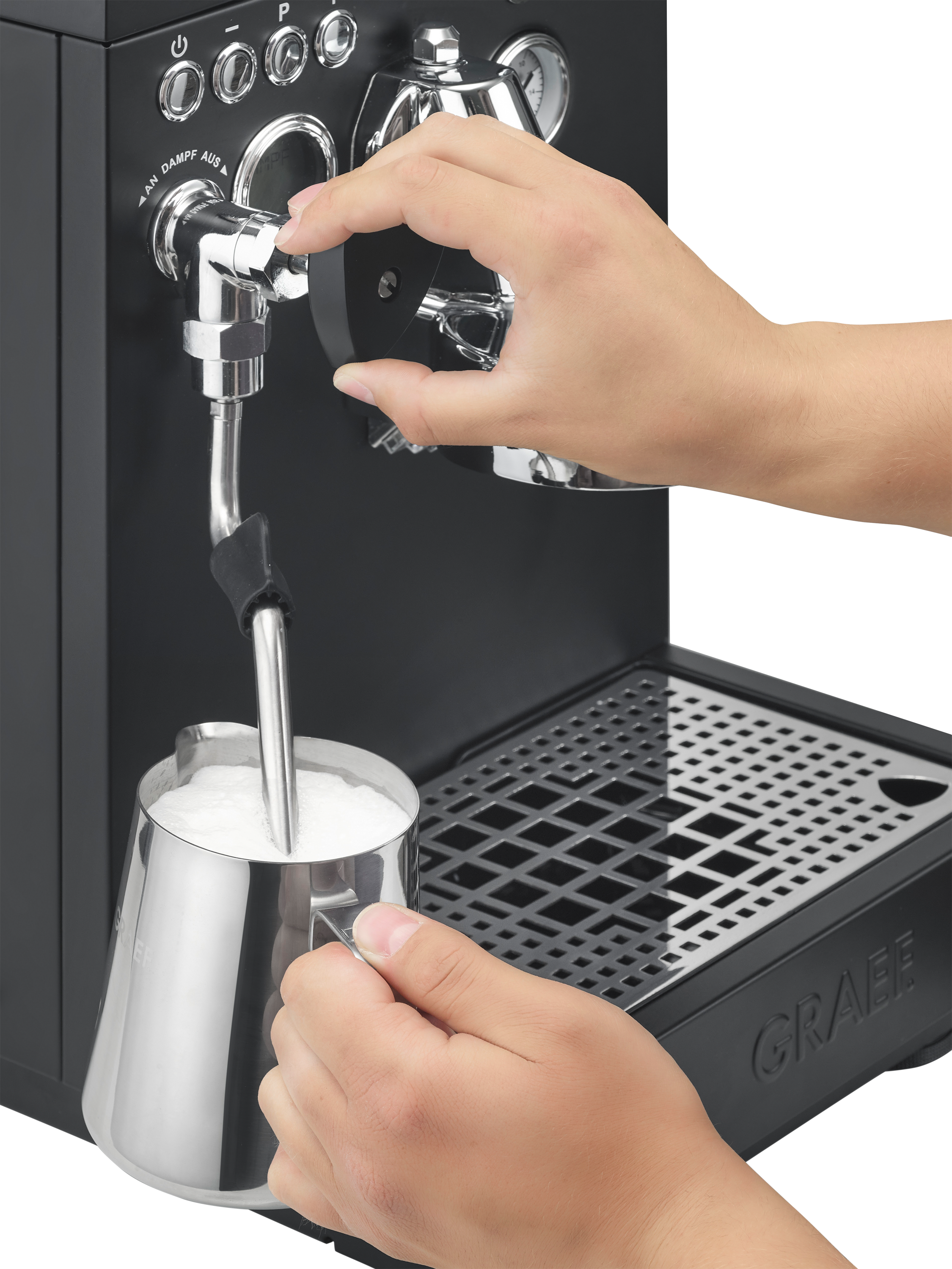 he stainless steel steam lance is equipped with an internal hose so that the milk no longer sticks to the lance when frothing and can therefore be cleaned very easily. The steam lance has a 2-hole milk foam nozzle and can be descaled. It can be swivelled through 360° and ensures the perfect milk foam.