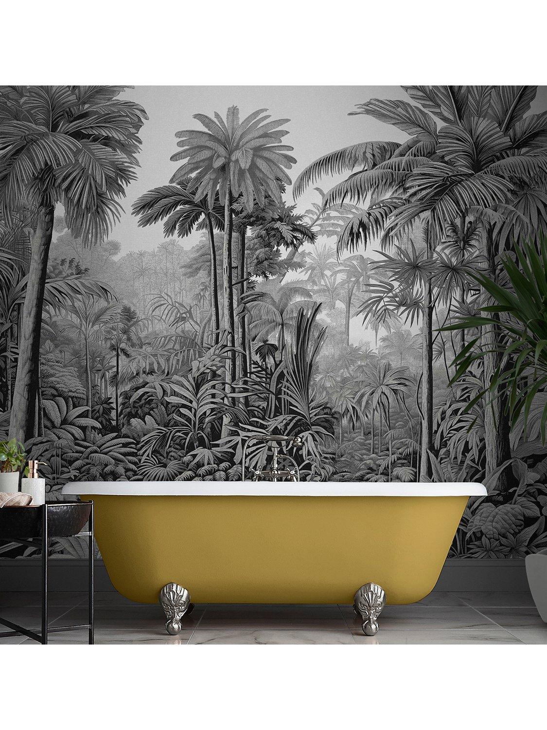This captivating wallpaper mural depicts a scene filled with towering palm trees, exotic plants, and a sense of untamed wilderness. The intricate details and masterful shading bring the jungle to life, making it feel as though you could almost step into the scene and feel the humidity in the air.