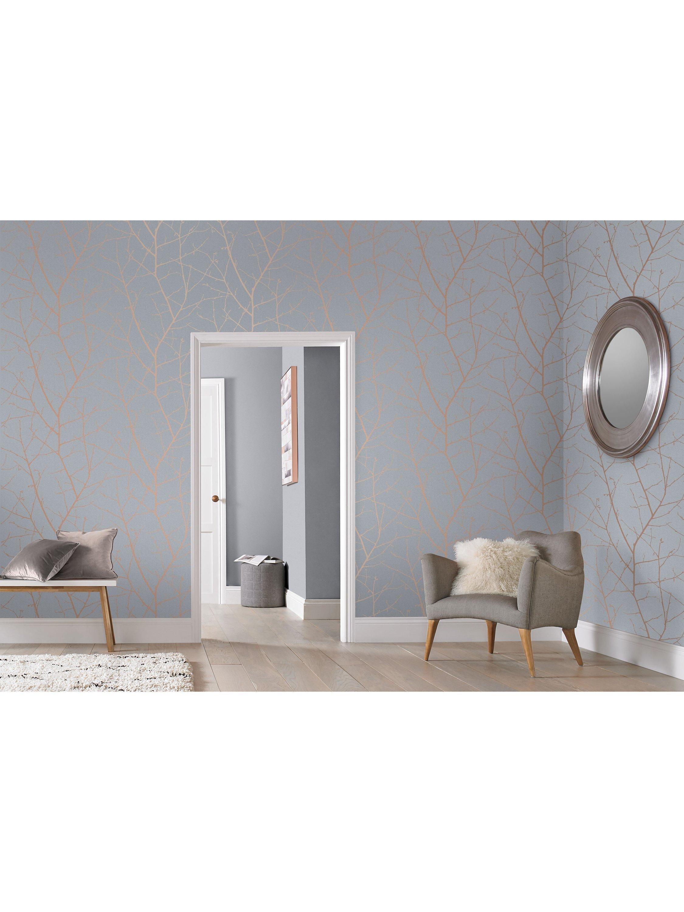 Graham & Brown have reimagined their classic Boreas design with a colour palette inspired by their colour of 2022. Metallic sprigs trail up the frosty backdrop, creating a winter wonderland.