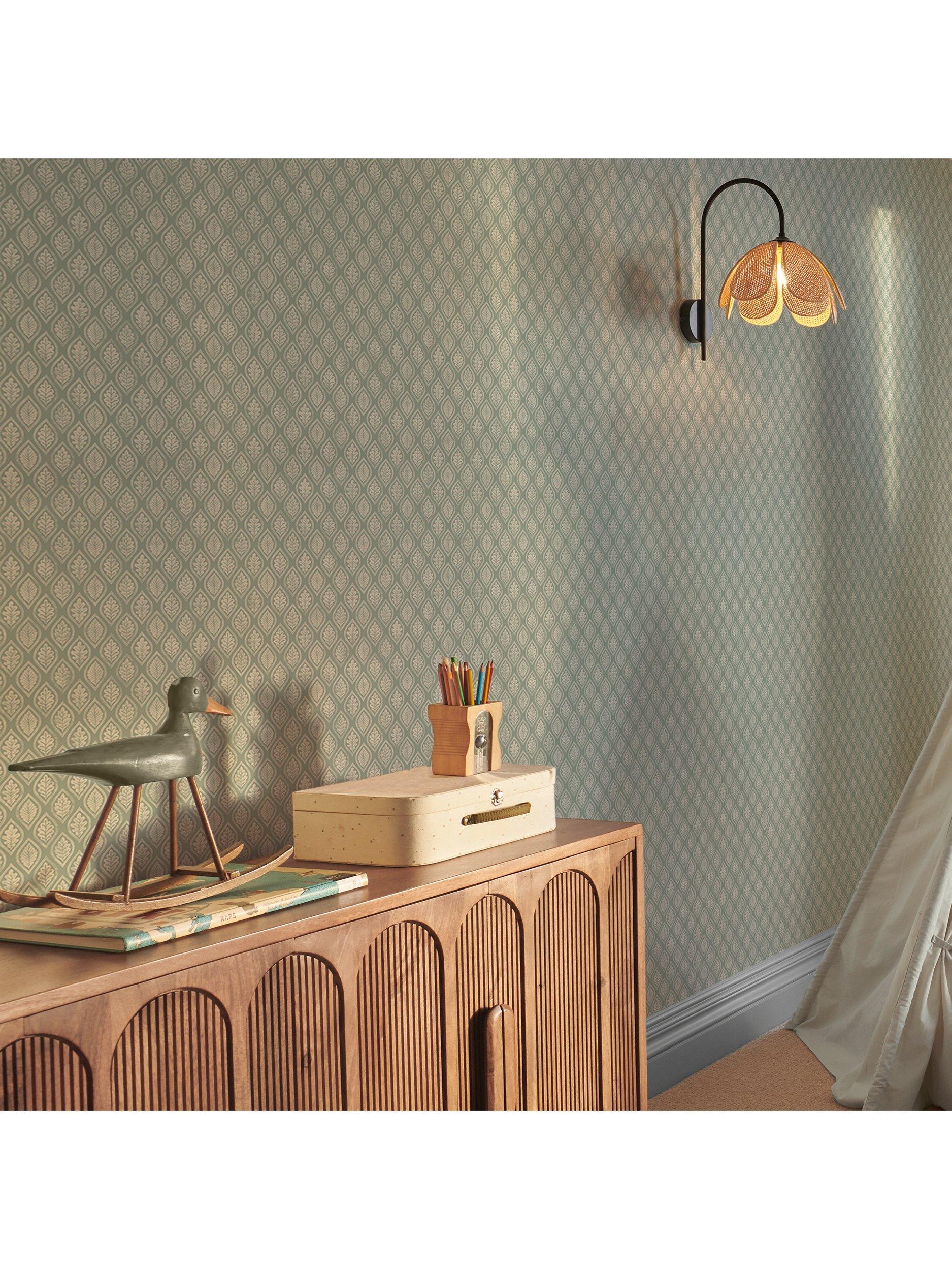 Infuse your space with warmth and timeless charm using Edo wallpaper, a soft and inviting take on a classic botanical motif. Delicately printed in a warm tone, this design features a repeating leaf pattern framed within teardrop-shaped outlines, evoking the look of hand-printed textiles and traditional block printing.