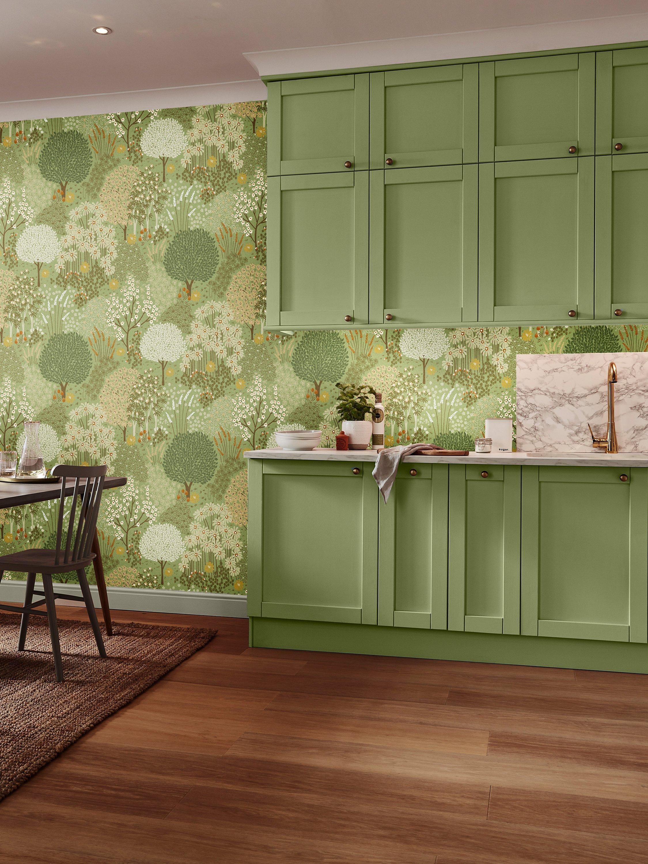 Fable is a unique yet liveable design sure to set your décor apart from the rest. Featuring a plethora of pale yellow and green wild trees and plants, this quirky tree design is plucked straight from a fairy tale and will transport you to the depths of an enchanted forest.