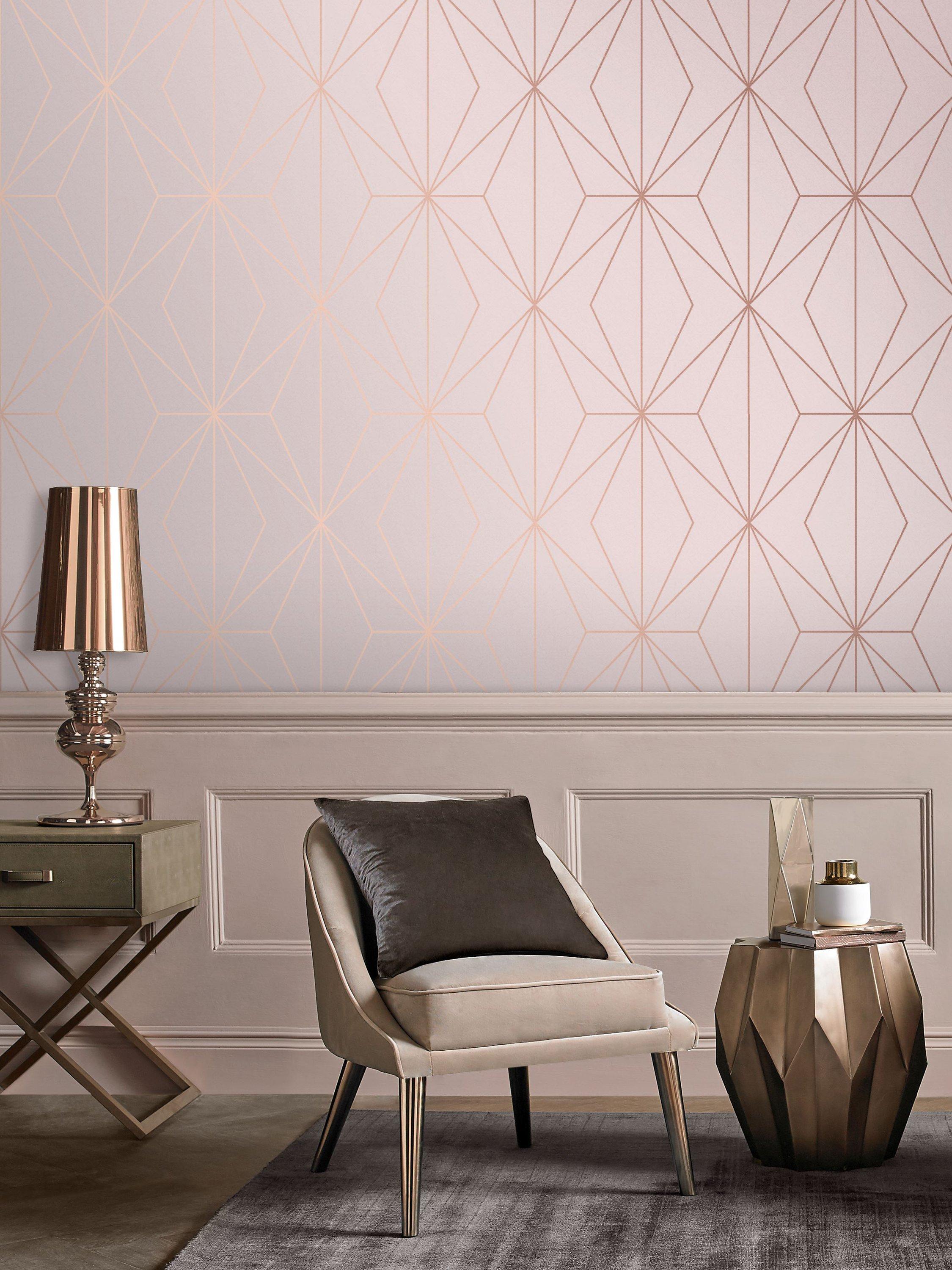 Effortlessly modern, Harmony in blush is the perfect geometric design to bring a balanced and orderly feel to the wall. A soft, delicate blush backdrop perfectly showcases a full rose gold metallic print on a luxurious textured paper.