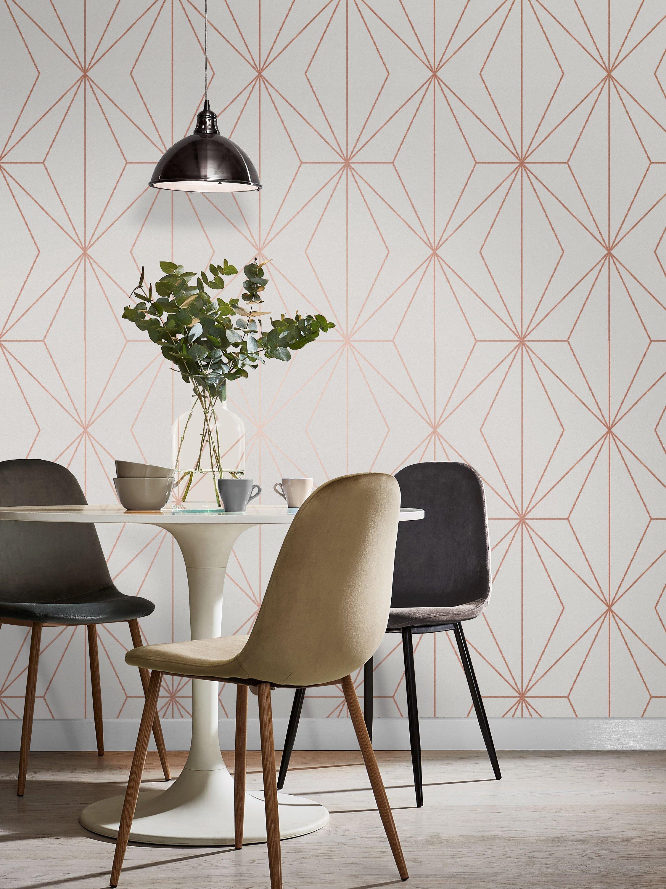 Harmony is a beautifully balanced geometric with a rich and moody colour palette. Elegant and sophisticated, this design features crisp copper lines on a rich green textured paper.