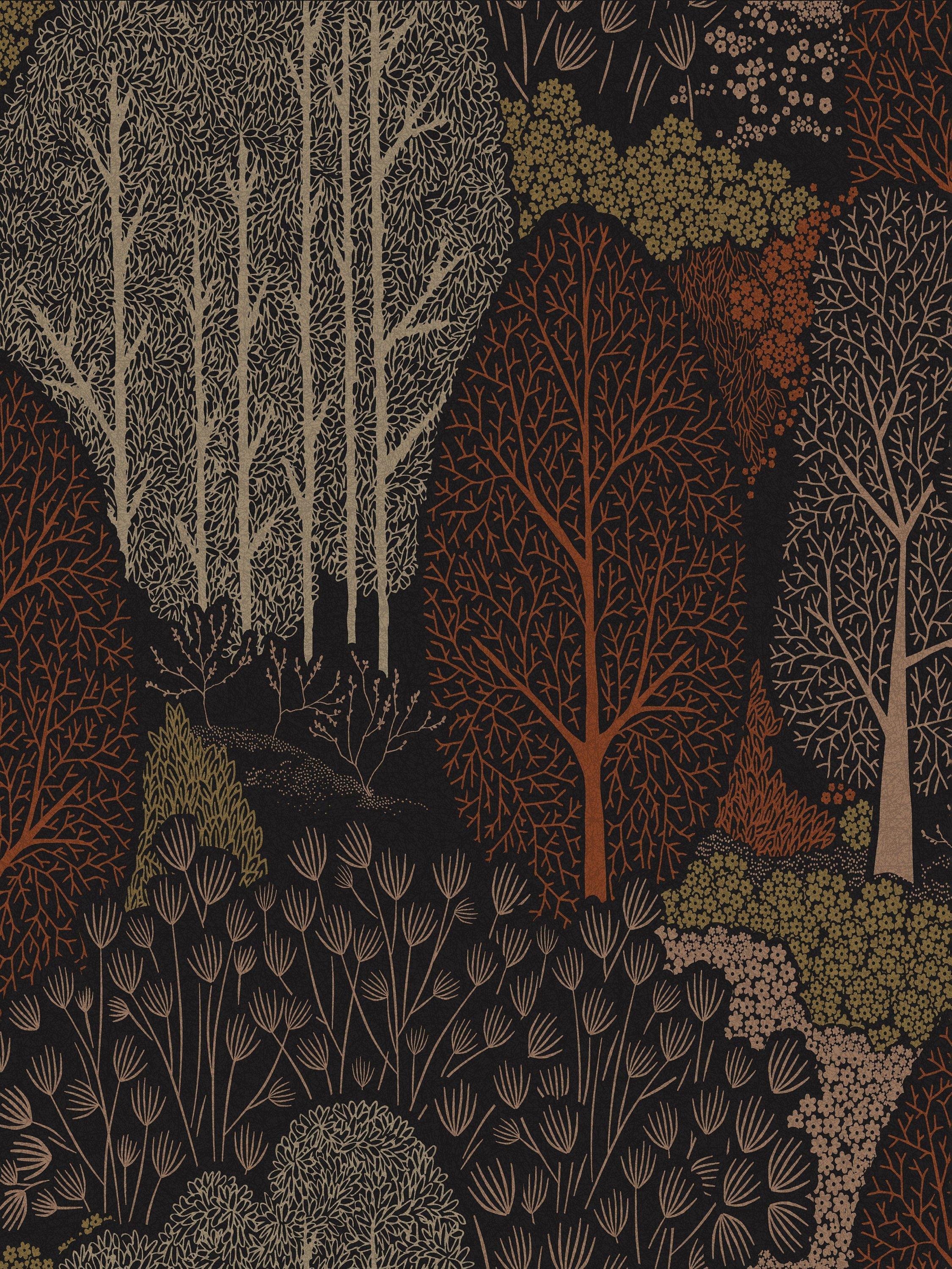 Scandiscape is a truly opulent design, combining a symphony of shades. This twilight forest will bring moody vibrance to your home interiors.