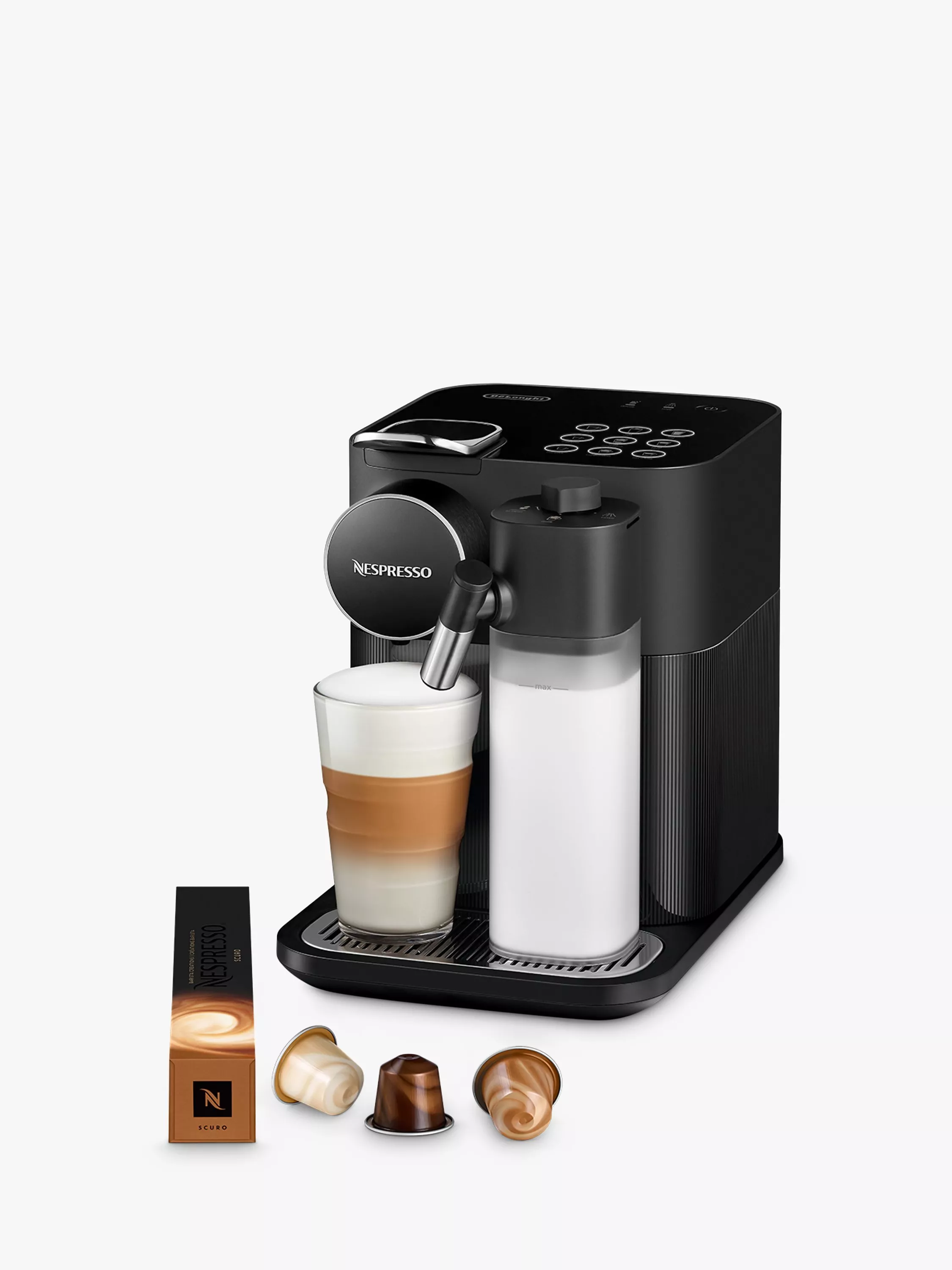 With the Nespresso Gran Latissima coffee machine you can tailor your cup to your personal tastes. Enjoy delicious Cappuccino, Latte Macchiato or flat whites, or create your own milk recipe with the Extra Hot Foam button offering the smoothest and most indulgent coffees at the touch of a button. Choose from 3 coffee sizes: Ristretto, Espresso and Lungo.