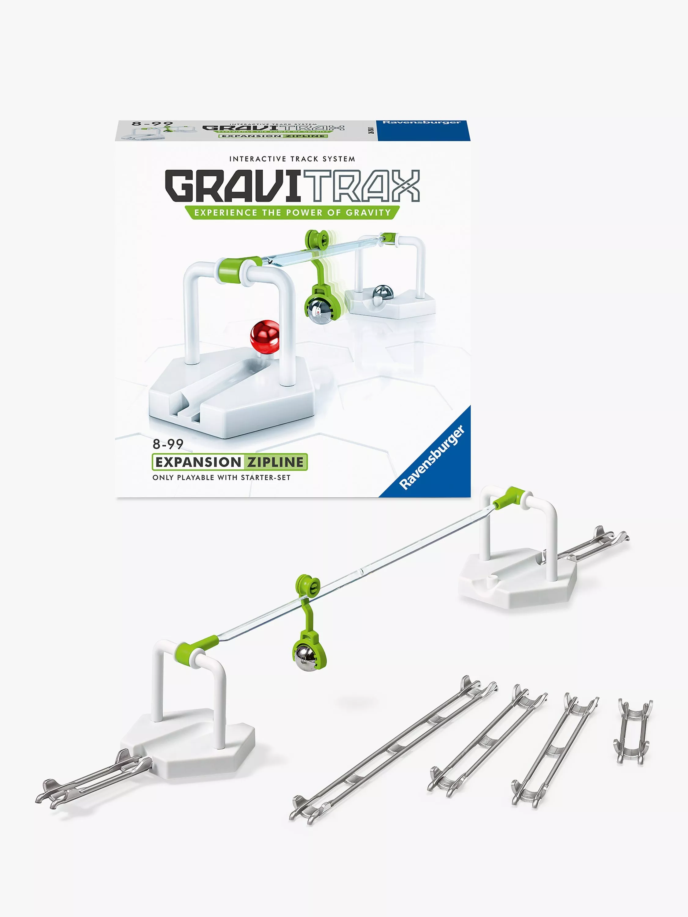 Create the element of surprise and zip along with this expansion set! The Zipline connects track sections to overcome long distances and varying elevations. Combine it with the starter-set and expansion pieces for marble inspired fun!