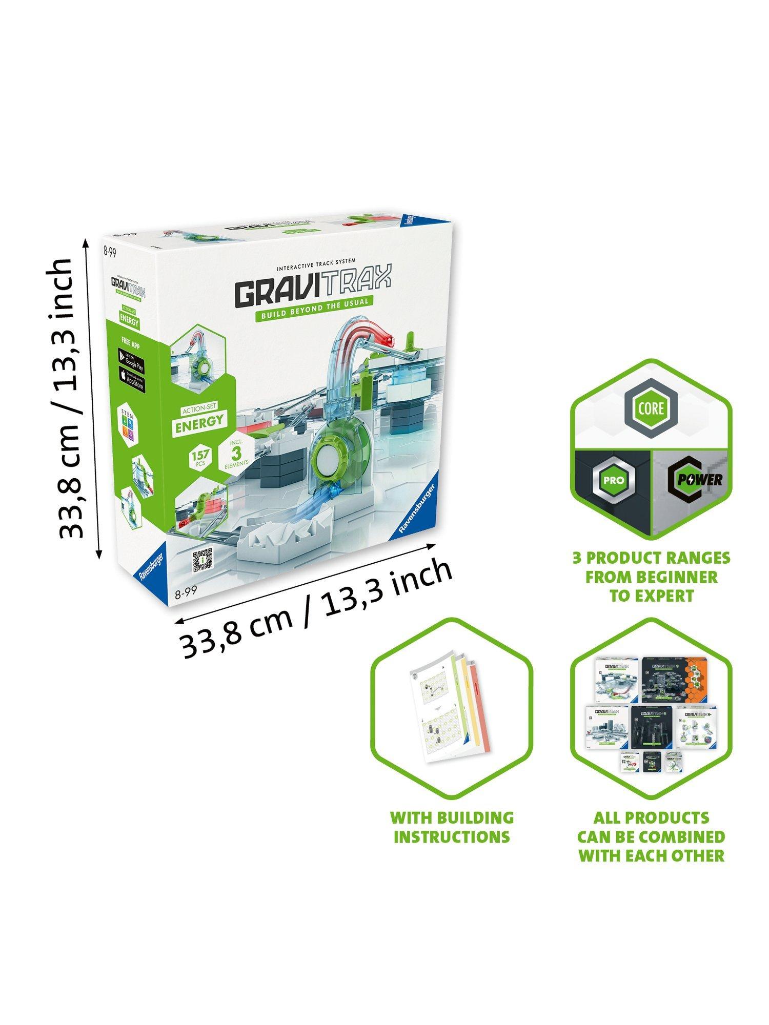 Experience the marble run action of the future today with GraviTrax! This unique, interactive ball track system unlocks infinite possibilities to build entire track worlds packed with jaw-dropping excitement. And the system is endlessly expandable - so just as there are no limits to your creativity, there are no limits to GraviTrax. The GraviTrax universe includes CORE and PRO, and all can be combined with each other enabling GraviTraxers to create a world that is totally individual. Challenge yourself, experiment and take the action further than you thought possible. Build beyond the usual with GraviTrax.