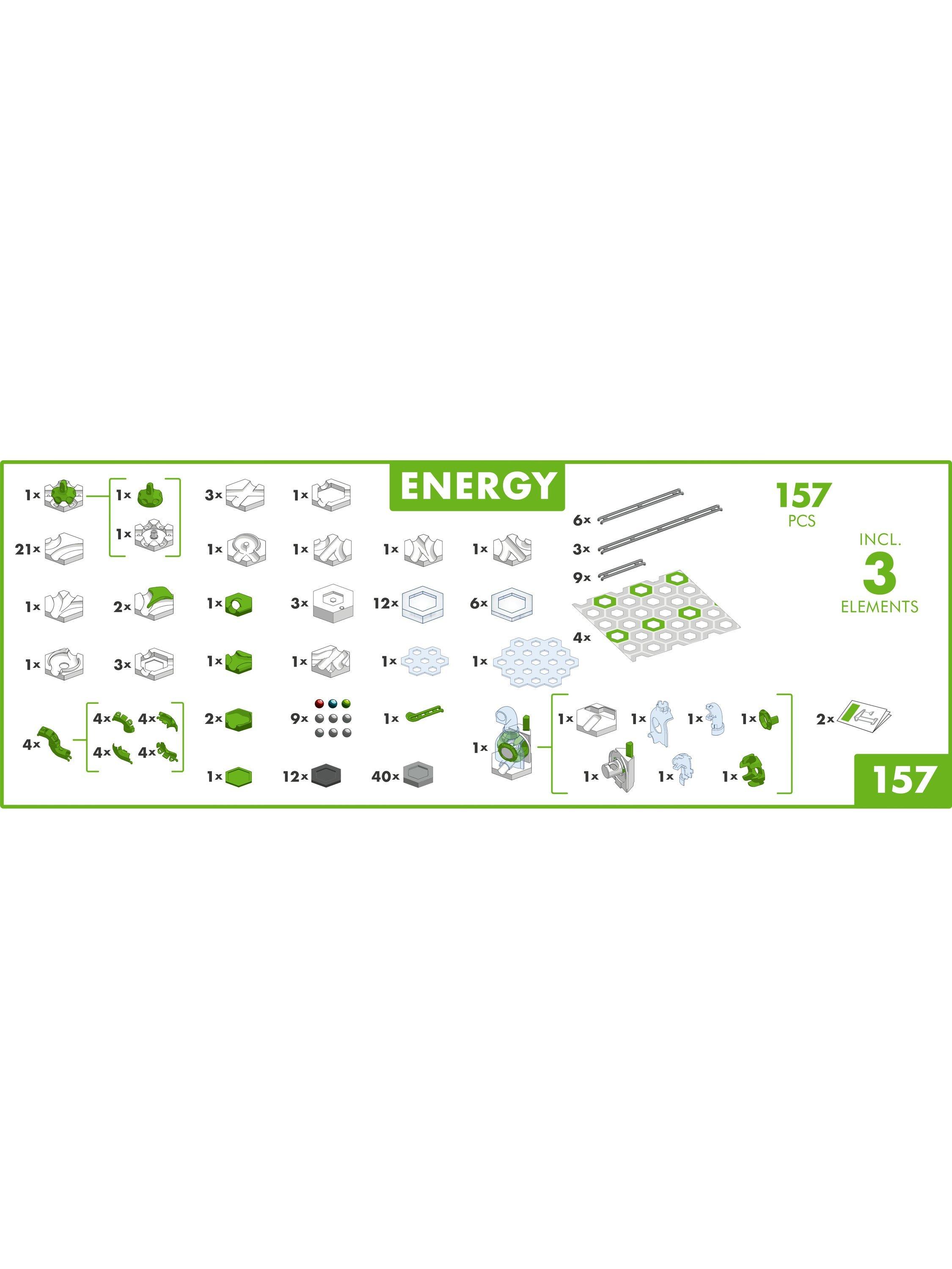 Create jaw-dropping marble run tracks with the GraviTrax Action Set: Energy. Combine over 150 components including the awesome Light element to design tracks with action like never before. Send the marble to new heights with the Vertical Cannon element. Want to challenge your track-building skills? GraviTrax Action Set: Energy is ready for you!