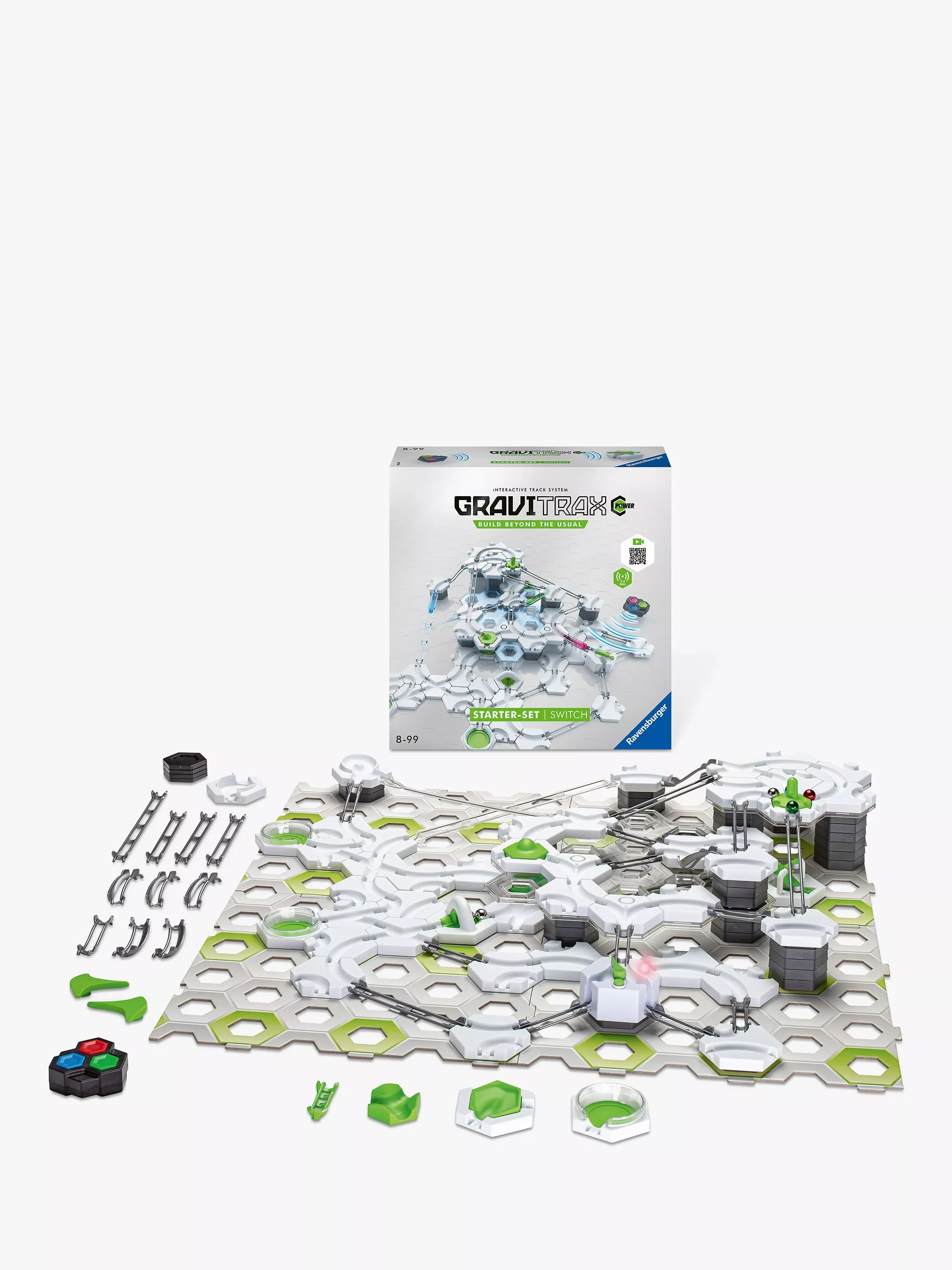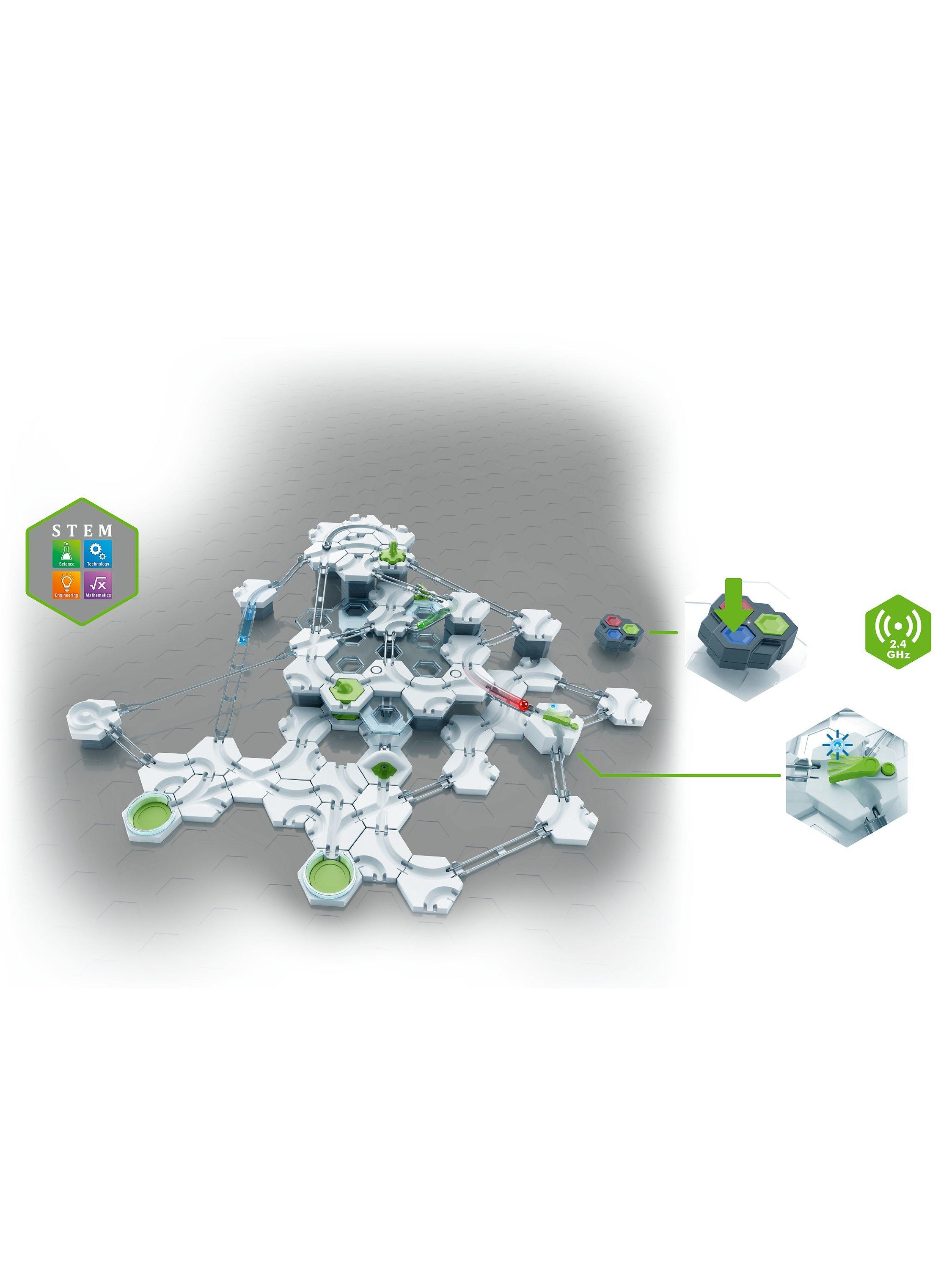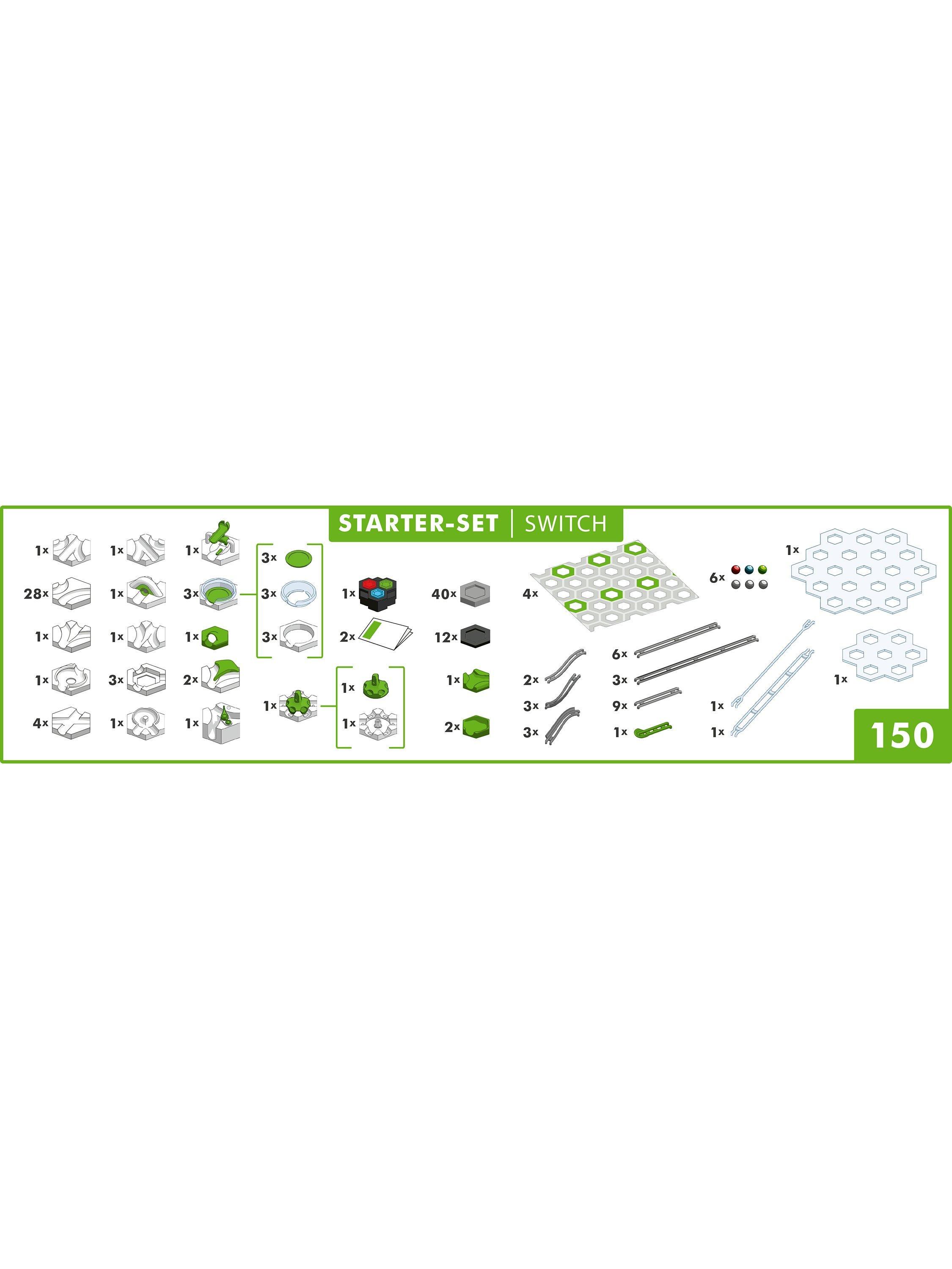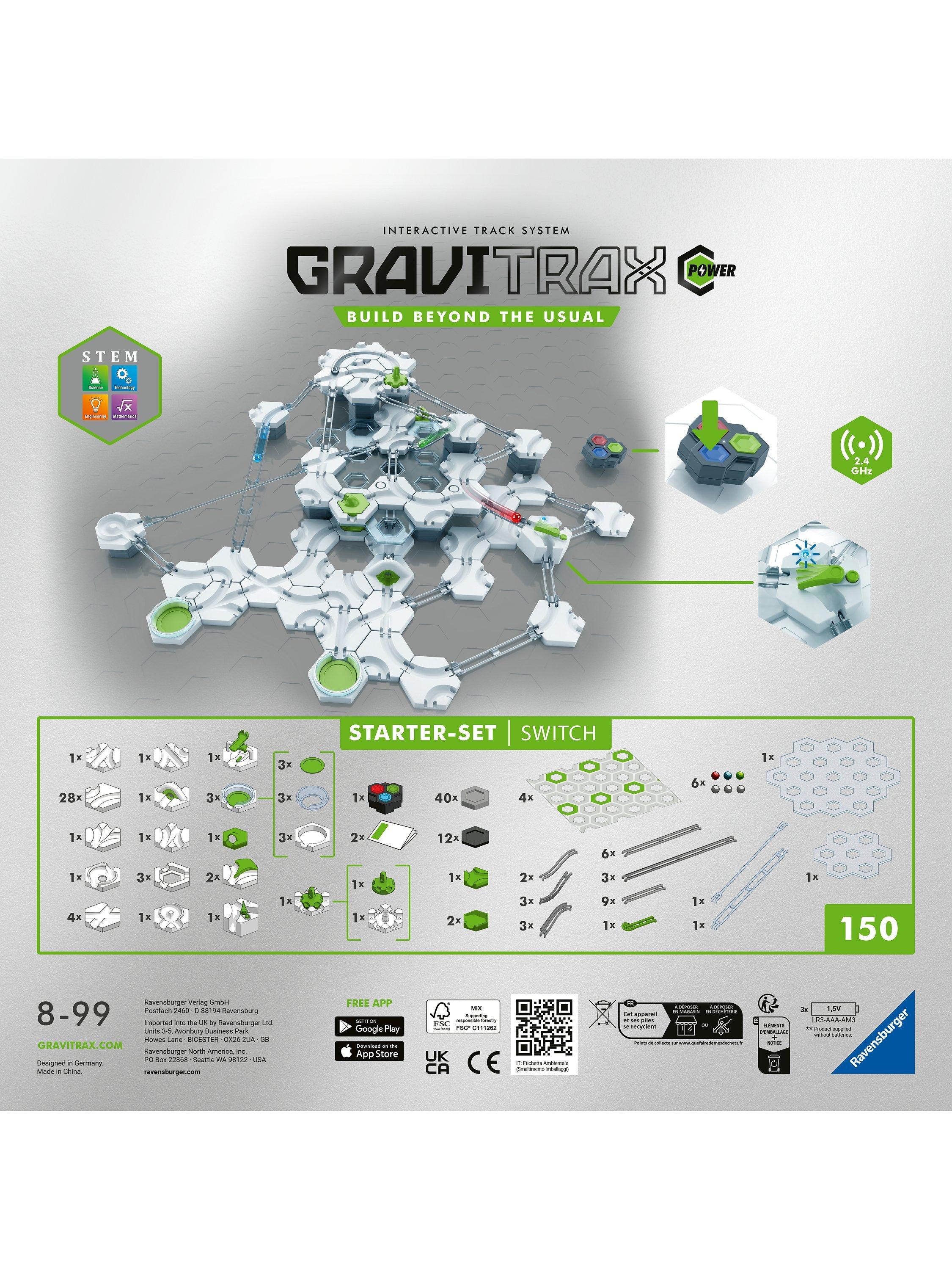 Seize the power and signal your track to control your marble run like never before with the “GraviTrax POWER Switch Starter-Set”! The POWER Finish signals the POWER Switch to shift your marble onto another track. Or, use the POWER Controller and be in charge! Easy to connect and build, the set includes POWER accessories to create buzz-worthy, customized marble runs. Build, experiment and discover the track of your dreams as you race to the finish and experience the power of educational fun!