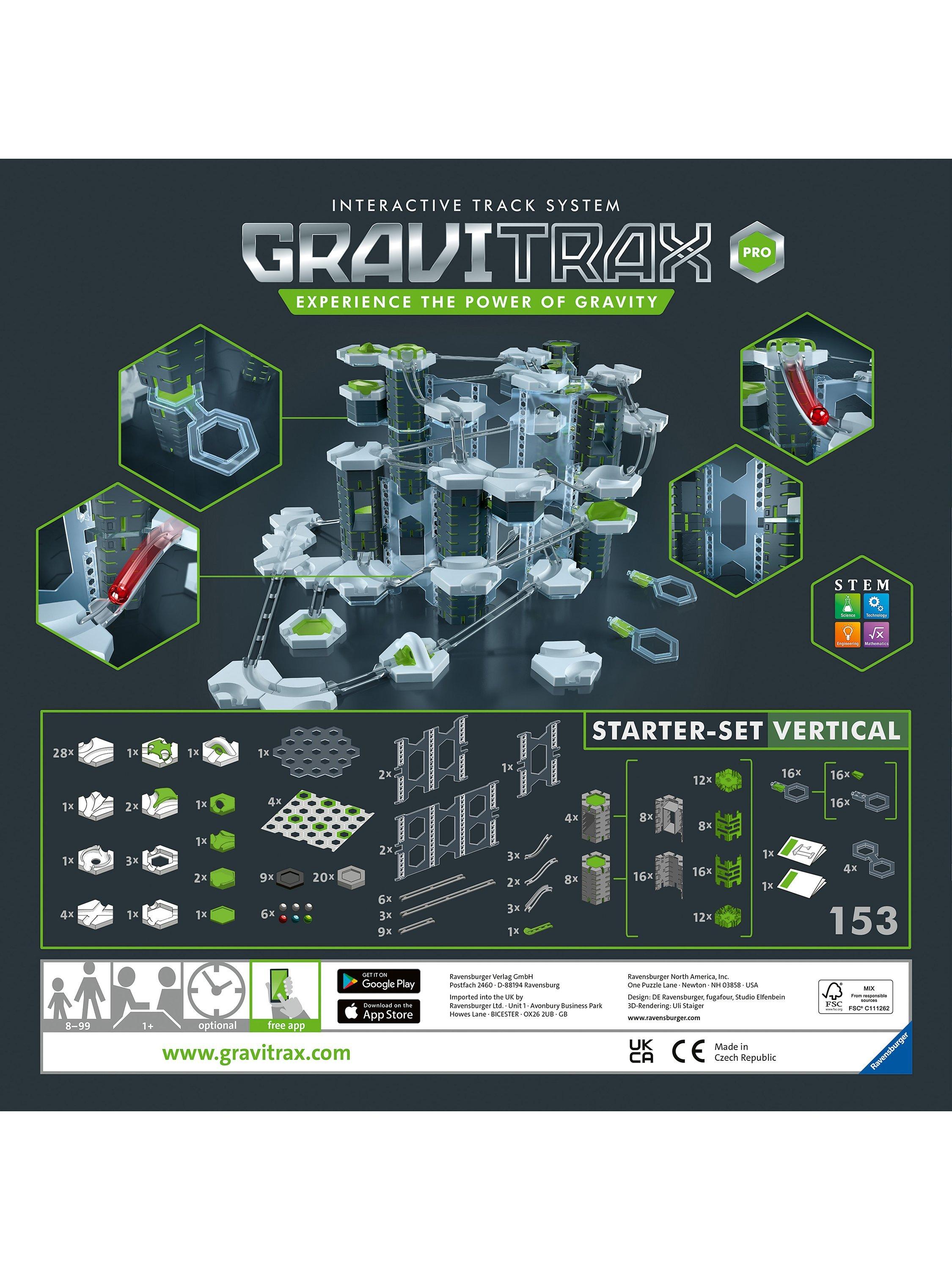 GraviTrax goes vertical with the GraviTrax PRO Starter Set. With 149 elements that include unique components, this set offers everything you need to begin building your own vertical action-packed track systems.