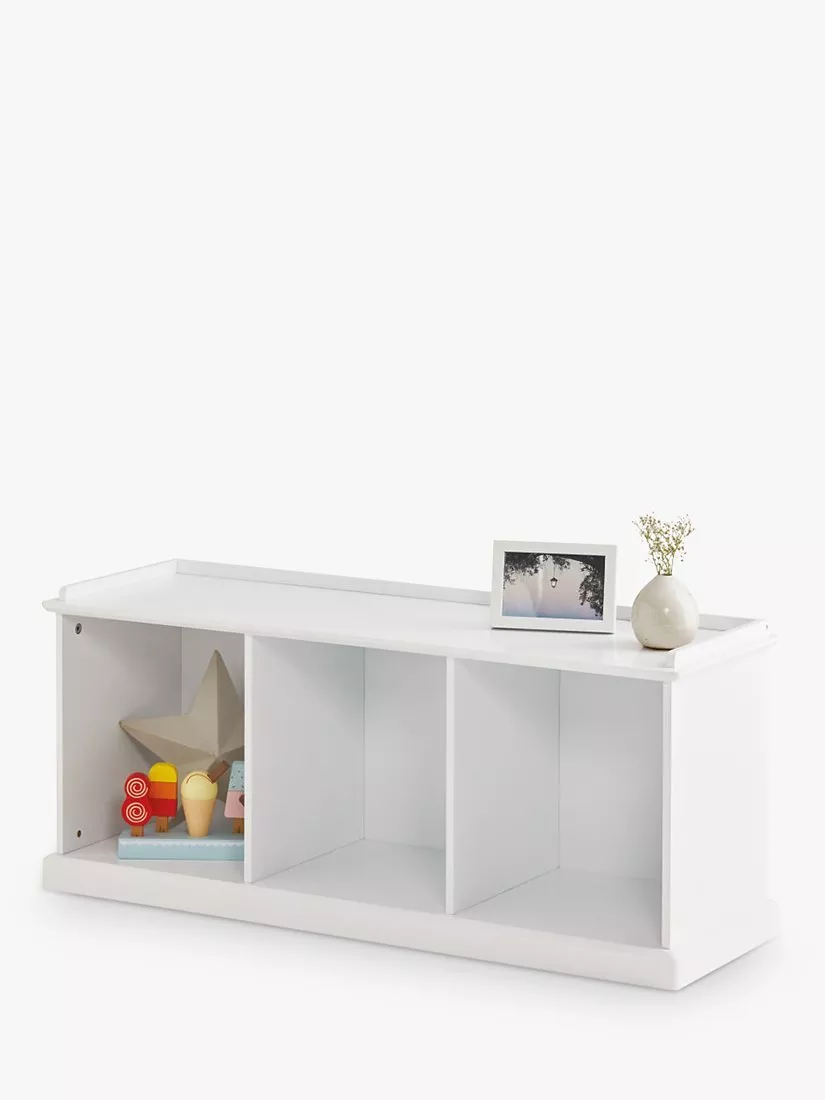 Storage and seating in one. The Abbeville bench from Great Little Trading Co is made from sturdy MDF in a painted finish. A versatile design that can be placed in hallways, family spaces or their bedroom, there are three spacious cubbyholes that you can leave exposed or style with a storage cube or basket. It's been designed with a steadying plinth and robust back panel so you don't have to worry about it wobbling.