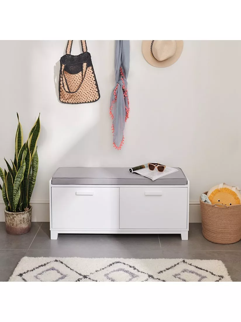 Here's a simple solution for busy hallways; this Blake Hallway Storage Bench and Bench Cushion duo from Great Little Trading Co. is storage and seating in one. Fill the roomy drawers with a school kit and outdoor gear to instantly create a clearer path to the front door.