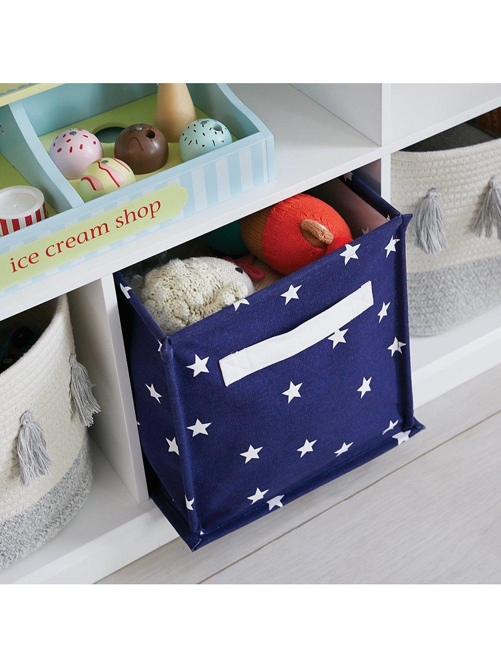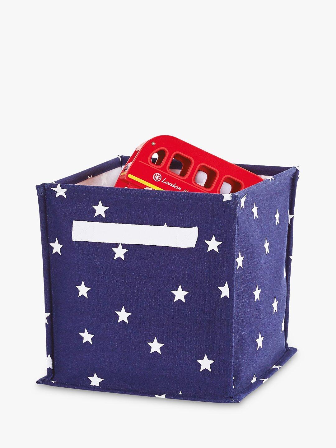 A practical storage solution, this simple canvas storage cube comes in a playful array of designs. Place it on a shelf, in a cupboard or on free flooring space to instantly create a place to stash toys, books and games. The light flexi-frame can be folded down to store the cube easily when not in use, while the pure cotton fabric makes it soft on little hands.
