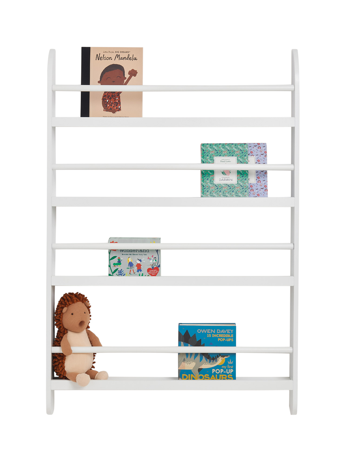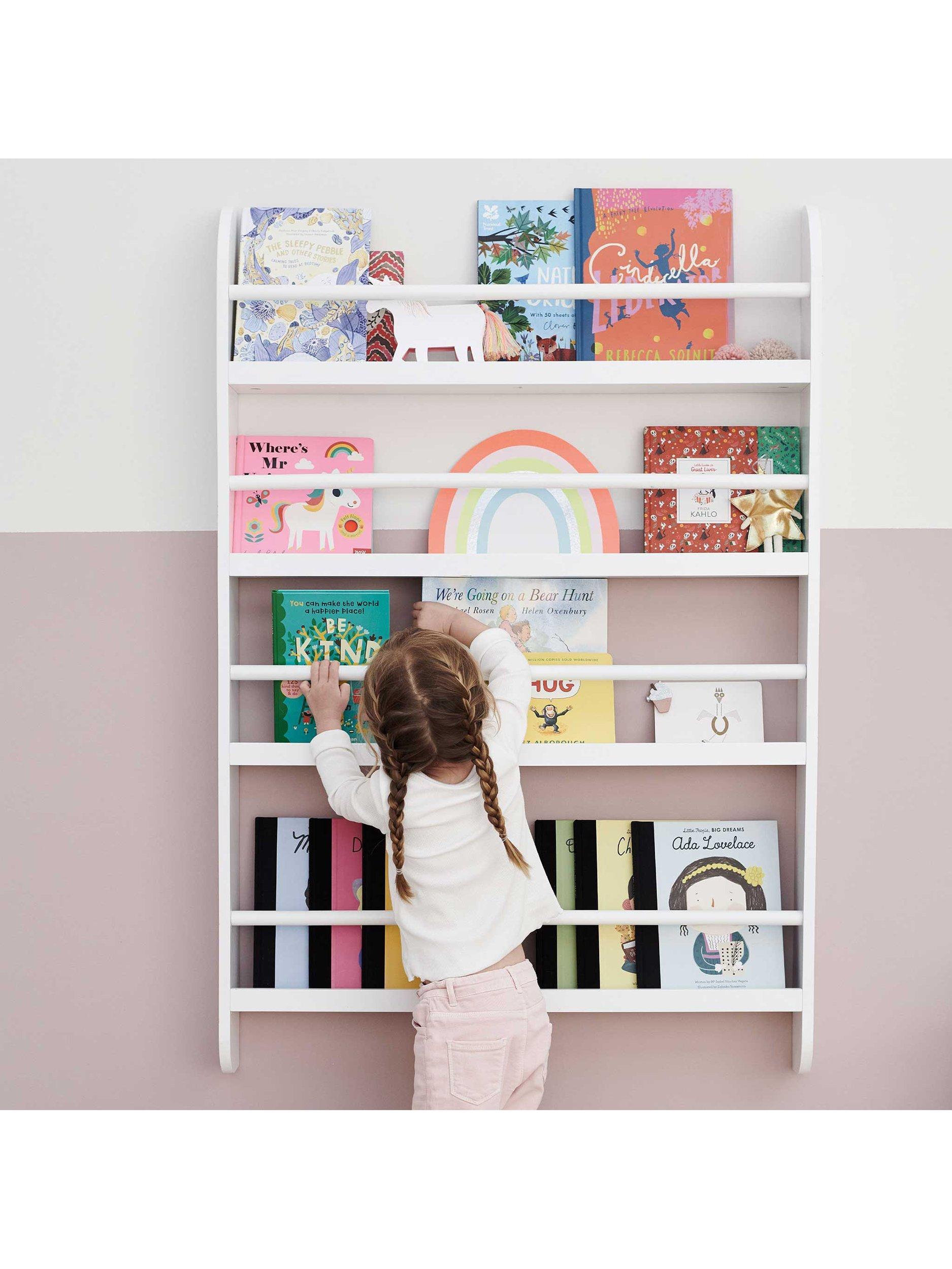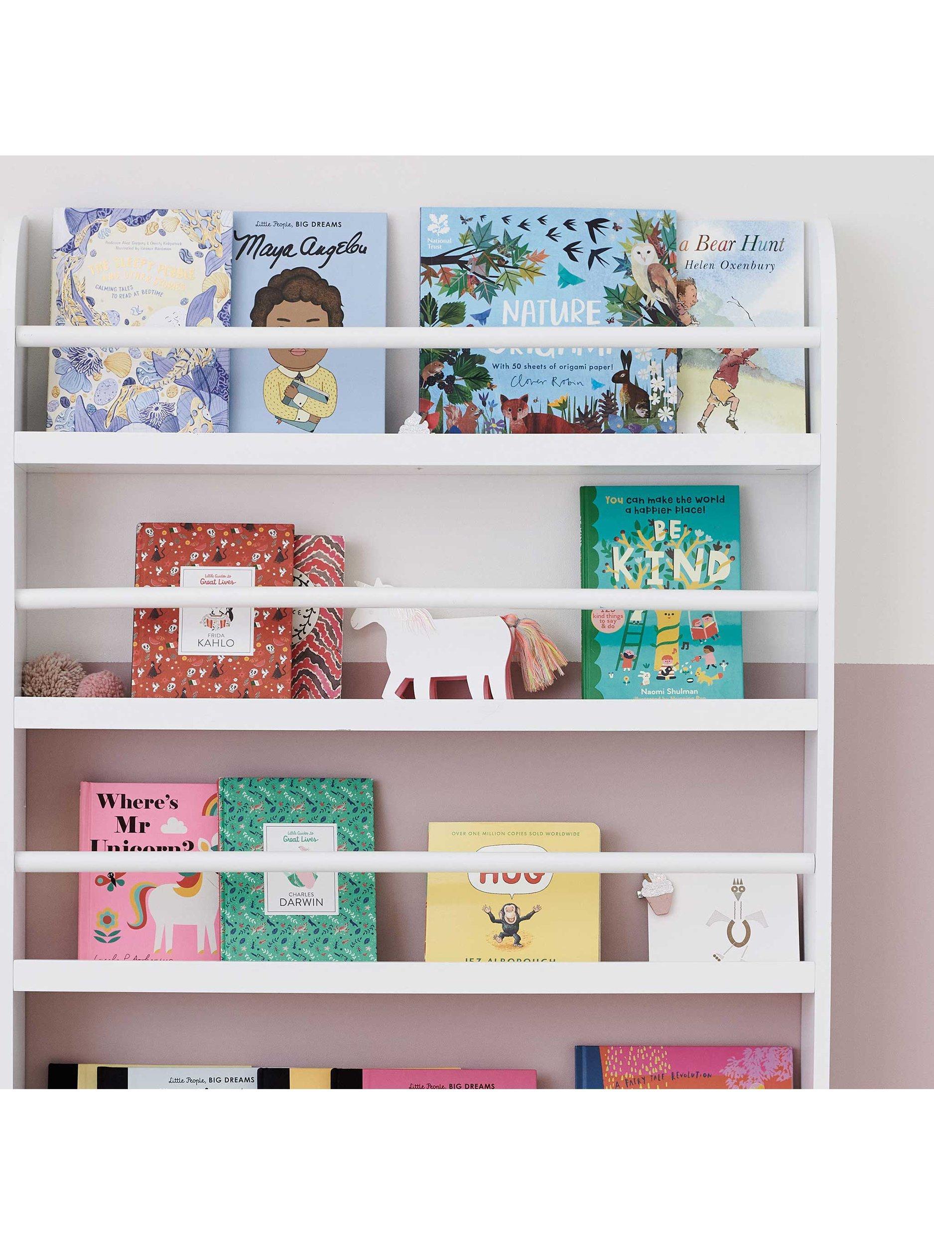 Keep books neatly organised while displaying their covers front-facing, the Greenaway bookcase makes it easy for children to find their favourites. The generously deep shelves hold multiple books with ease, while the lower shelf is perfectly sized for younger children’s picture books. Wall-mounted to save floor space.