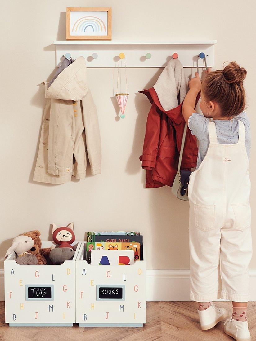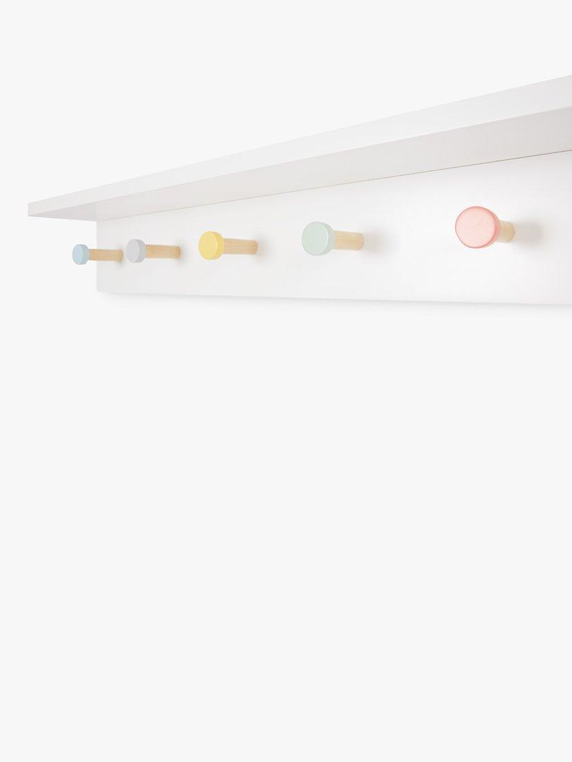 This pretty peg rail adds a splash of colour to bedrooms or playrooms and it's perfect for hanging dressing gowns, jackets or bags. Made from sturdy, painted MDF, its long-lasting and has a useful ledge for bits and pieces so you'll be able to keep their garments and possessions in check for a neat and organised bedroom look that frees up plenty of space to play.