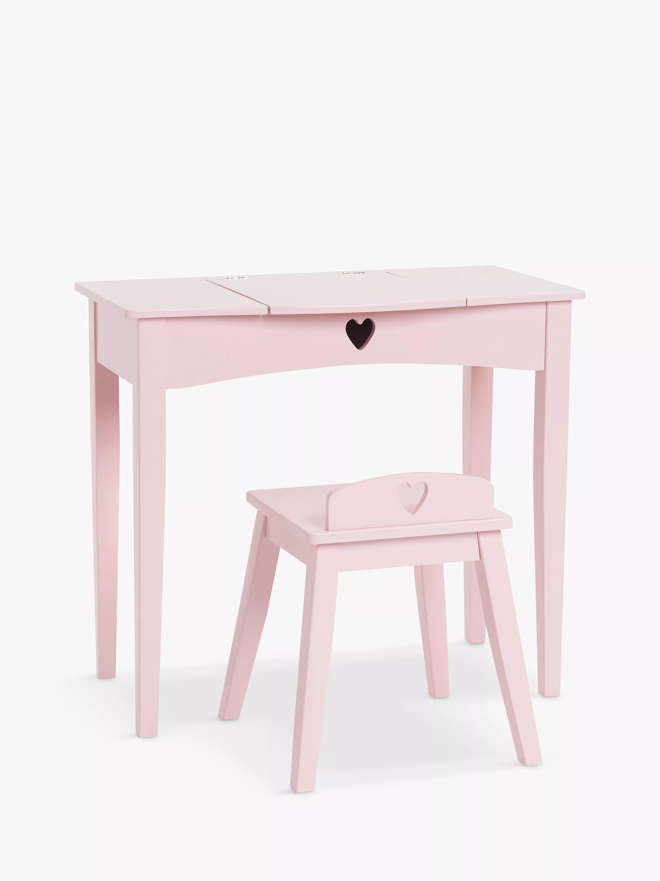 Sitting pretty is this stunning sweetheart dressing table and stool set from Great Little Trading Company. A wonderful gift for roleplay fun, this beautifully designed furniture is crafted from solid wood and features sweet cut-out heart detailing. Lift up the lid to reveal a secret storage drawer - perfect for stowing away accessories and trinkets. A true heirloom to treasure, little ones will love practicing self-care and acting out pretend play scenarios.