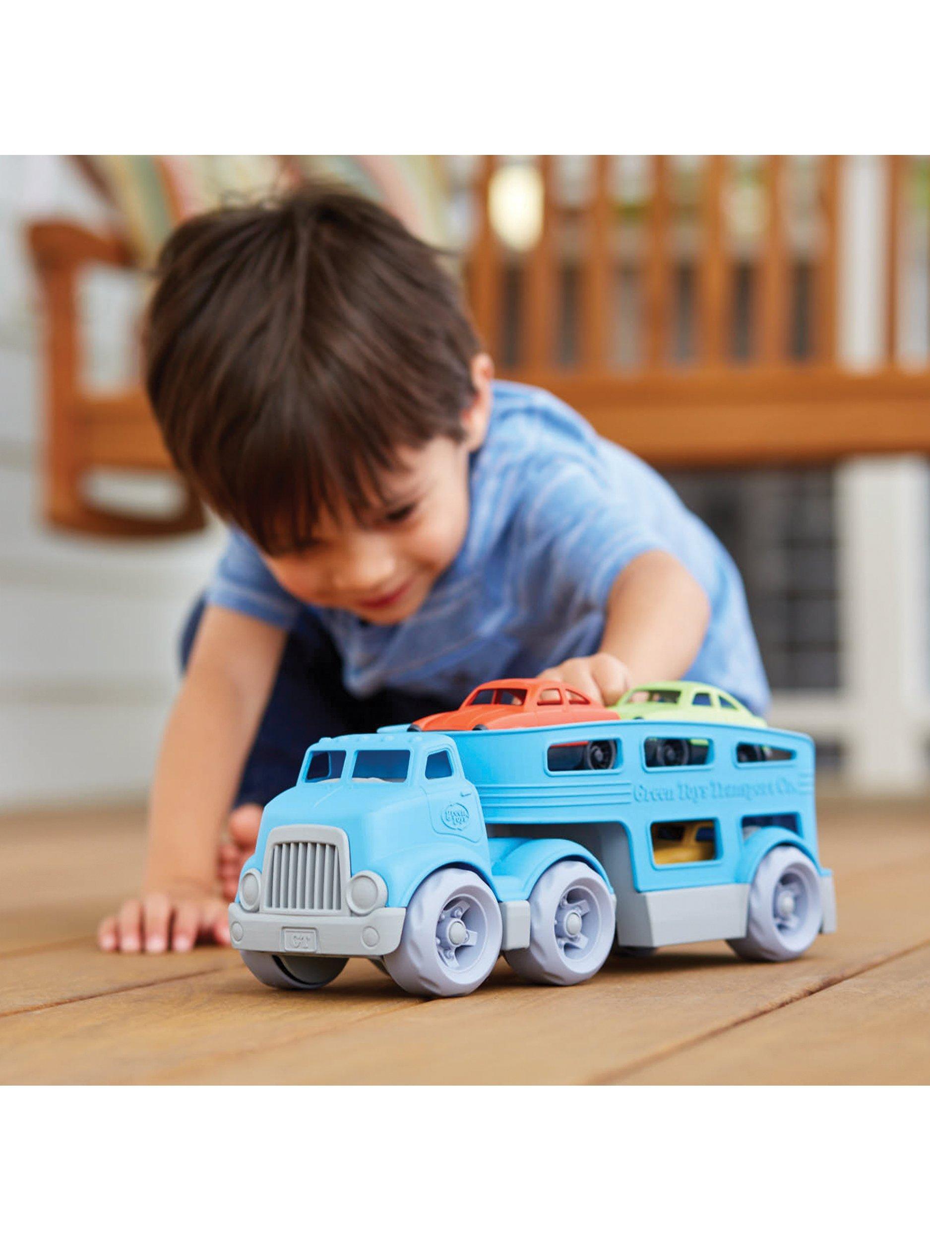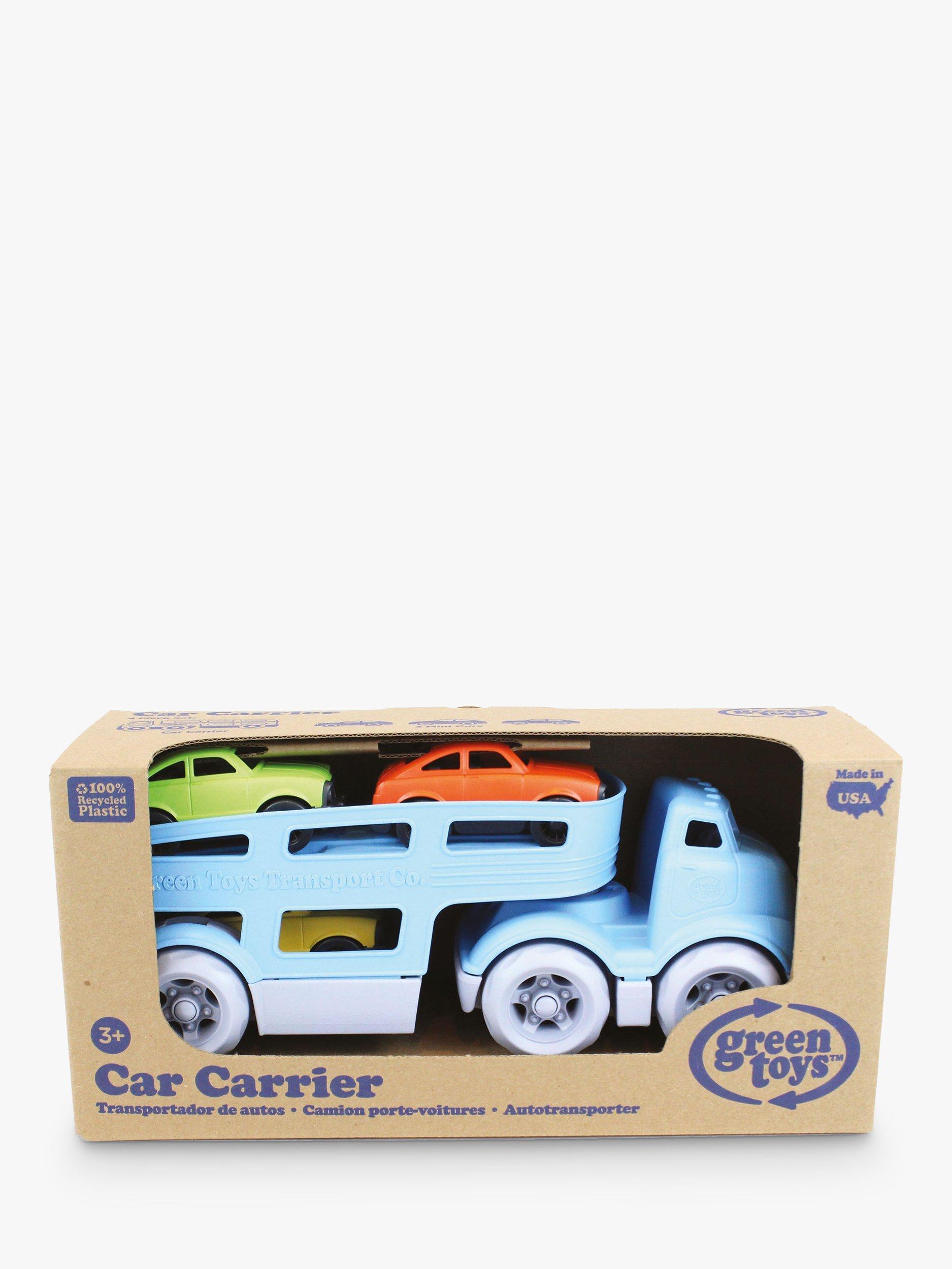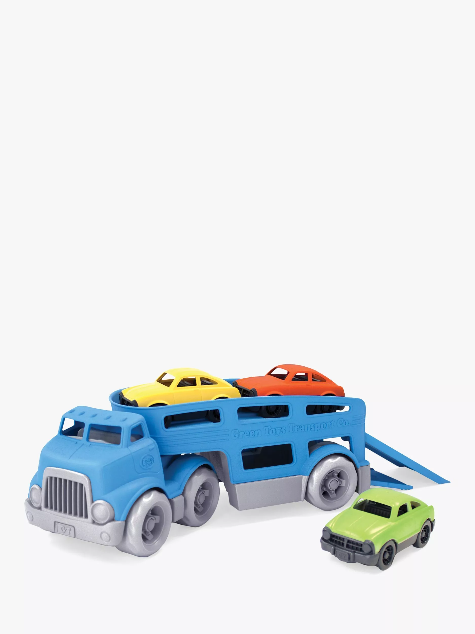 The double-decker Green Toys Car Carrier has two working ramps and space for three Mini Cars.